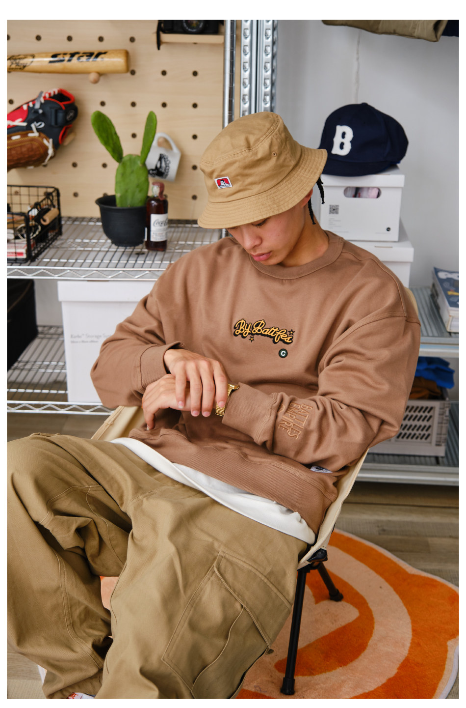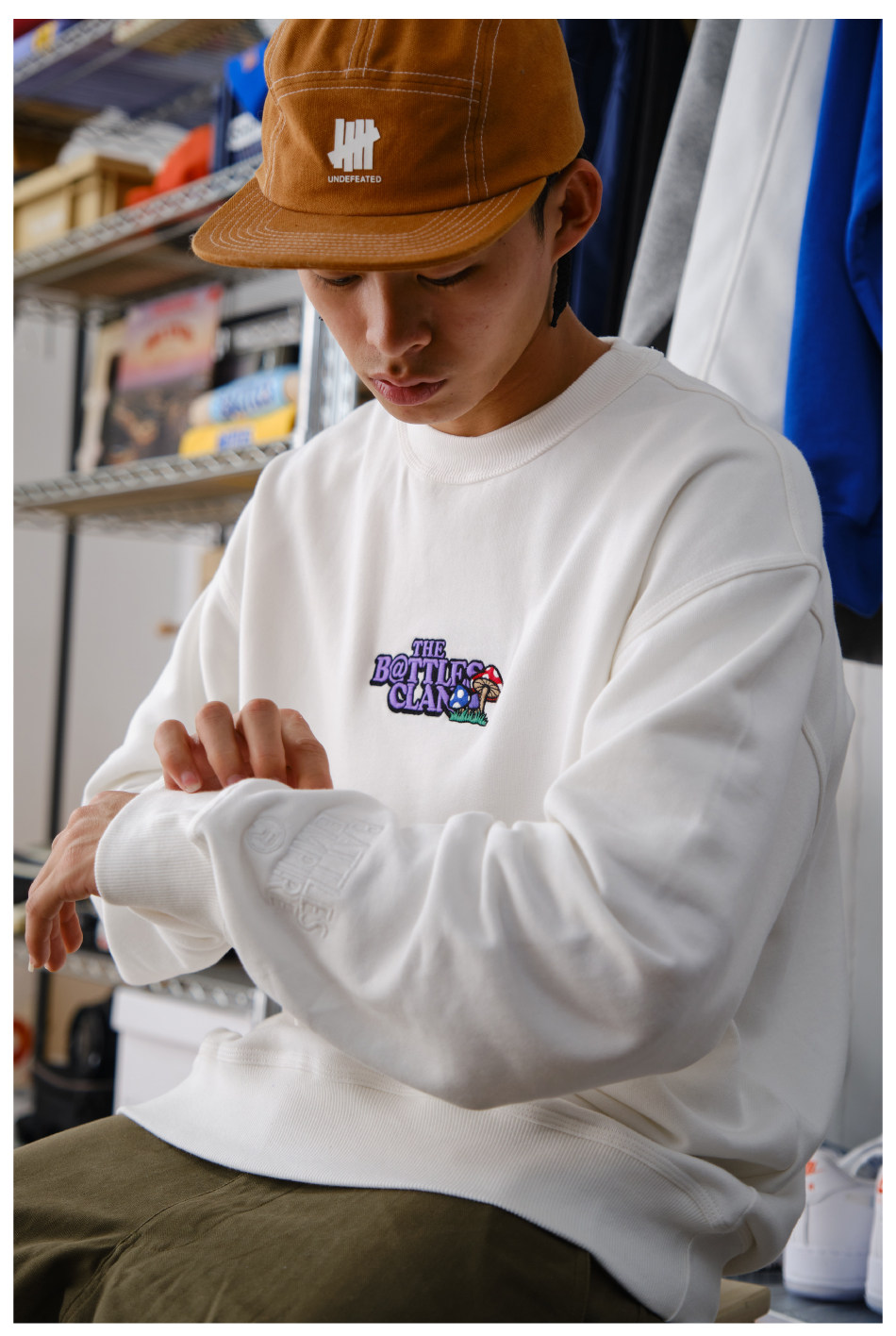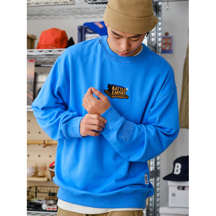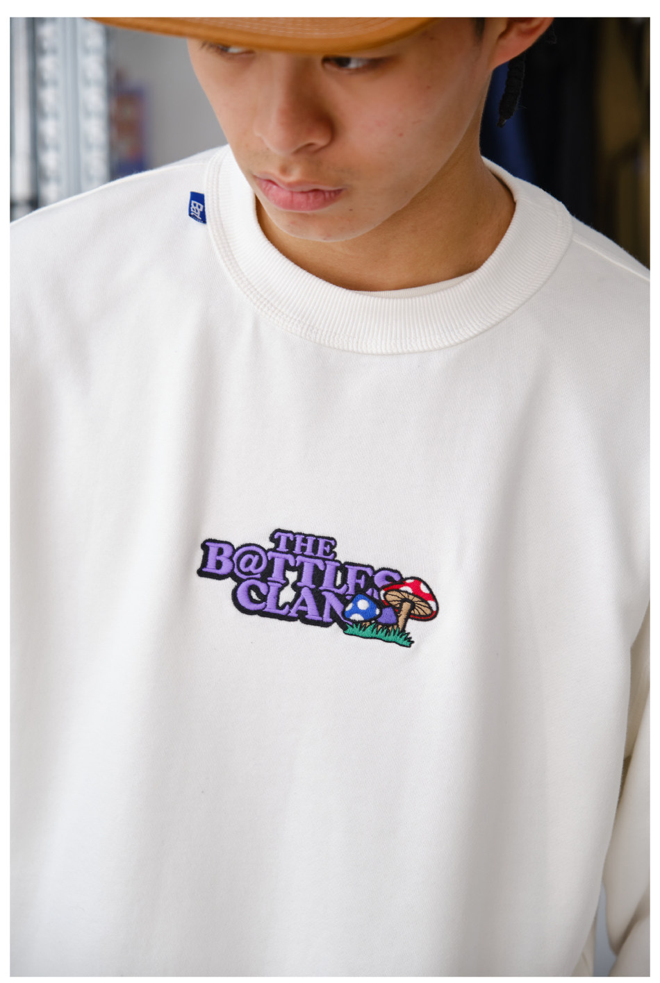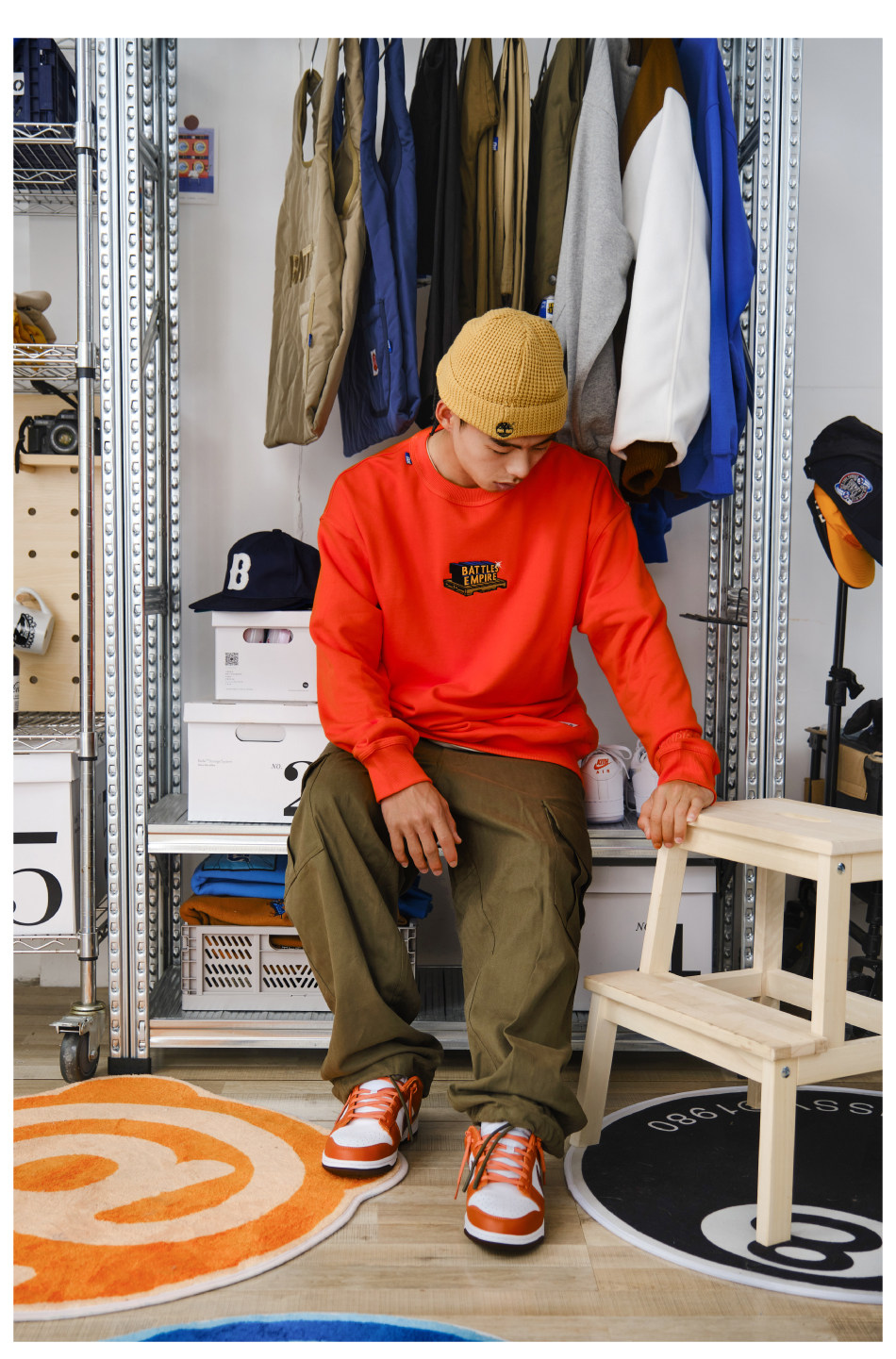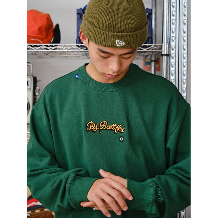 Battles 秋季基礎刺綉重磅毛圈純棉長袖T恤男女薄款衛衣套頭寬鬆
