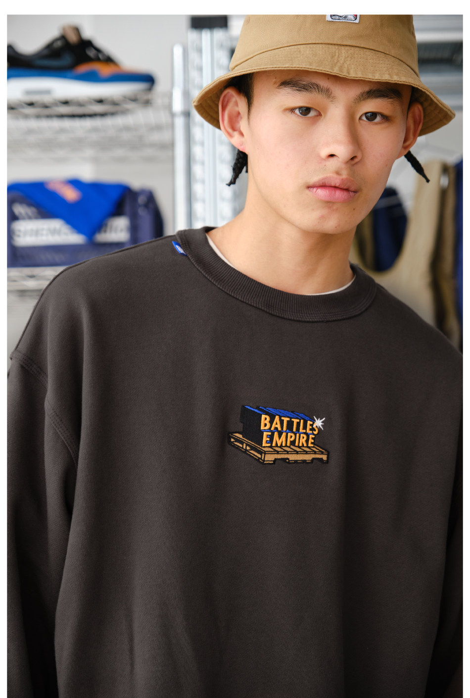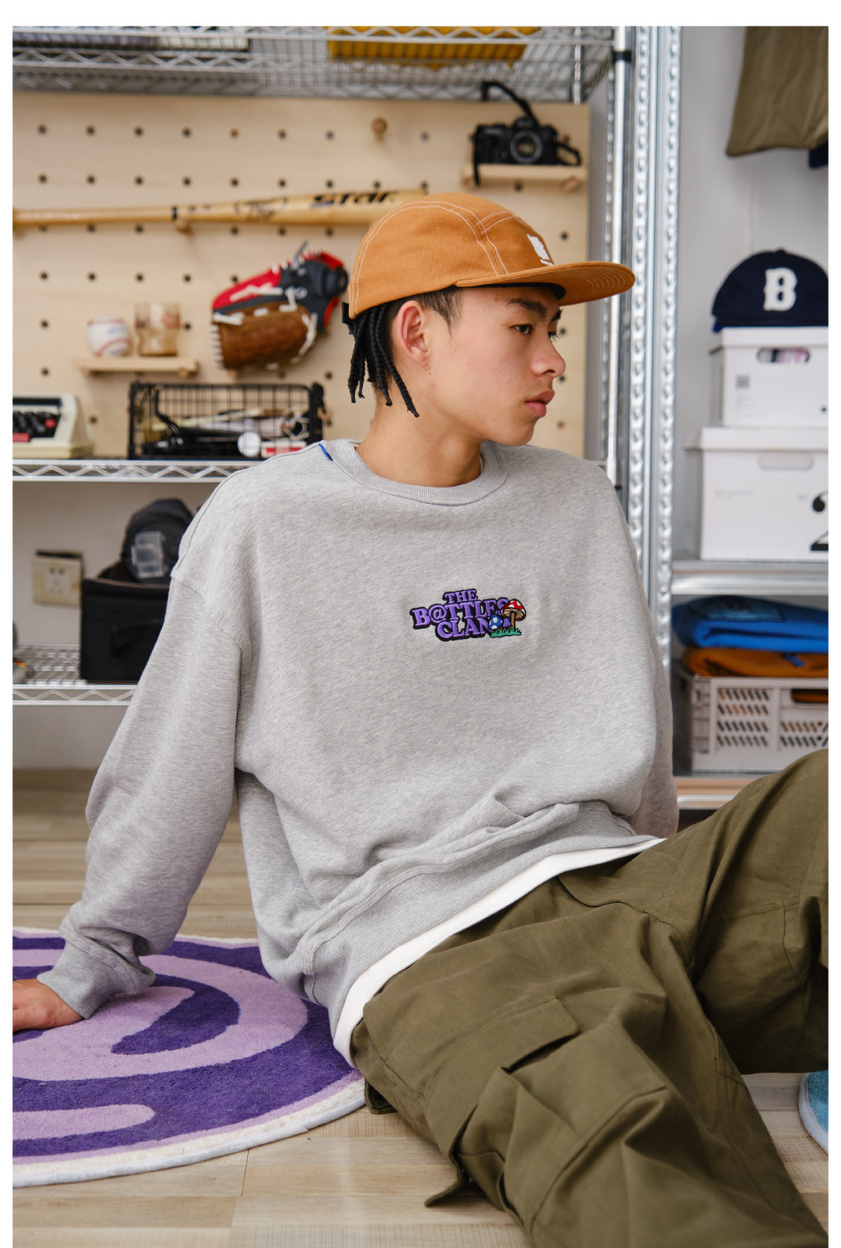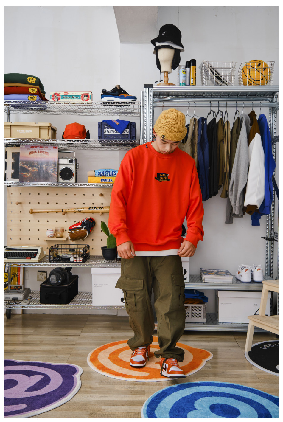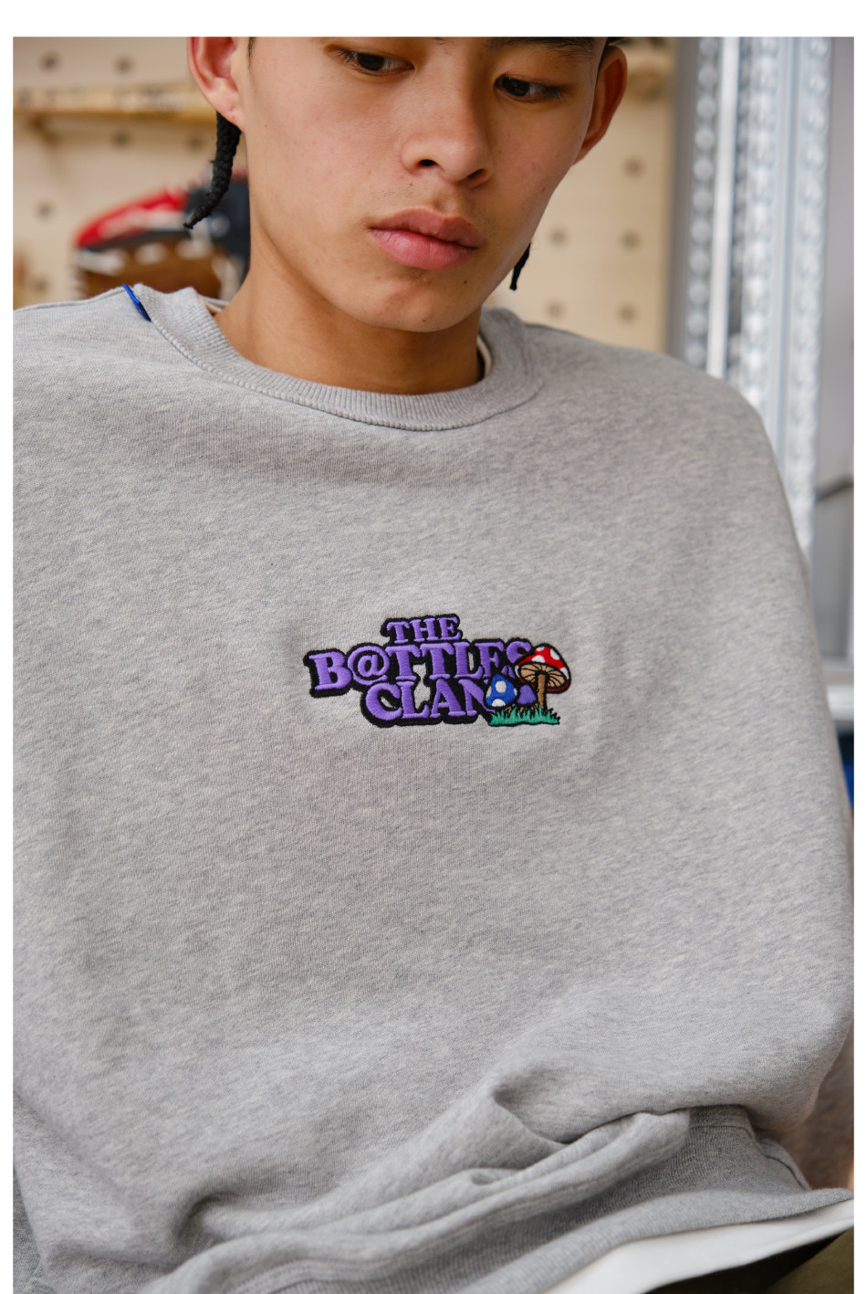Battles 秋季基礎刺綉重磅毛圈純棉長袖T恤男女薄款衛衣套頭寬鬆