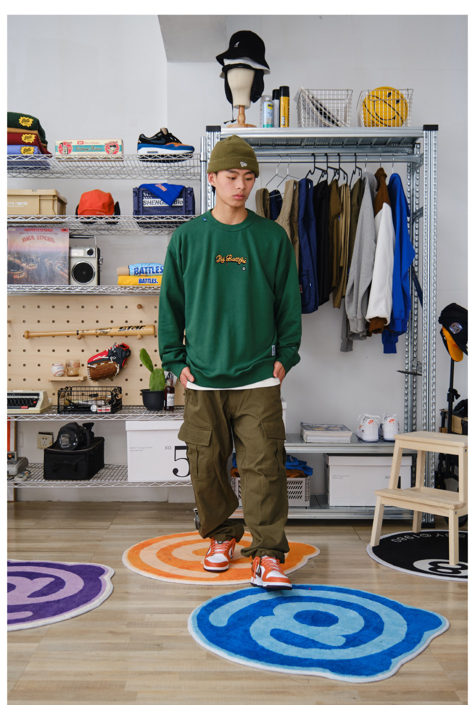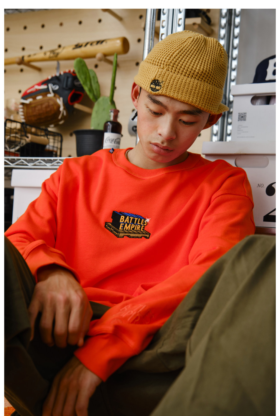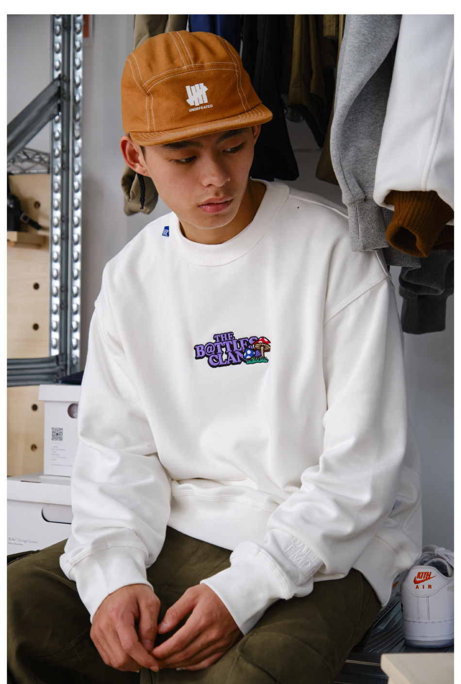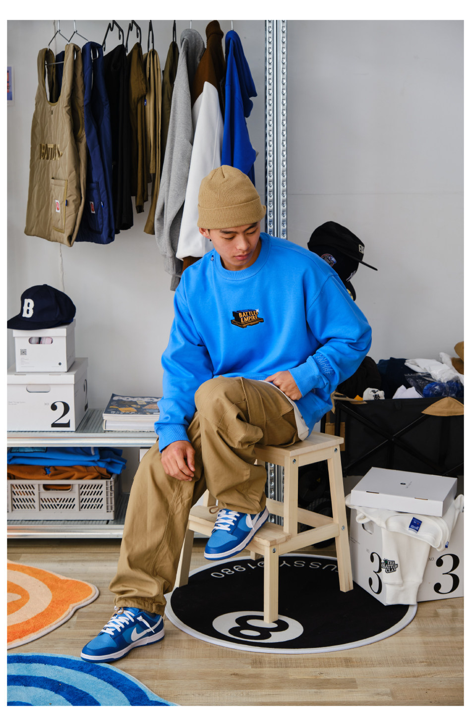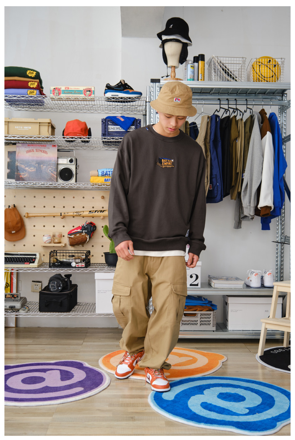 Battles 秋季基礎刺綉重磅毛圈純棉長袖T恤男女薄款衛衣套頭寬鬆