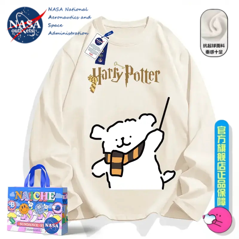 NASA聯名日系可愛卡通長袖t恤男女純棉秋季百搭情侶寬鬆打底上衣