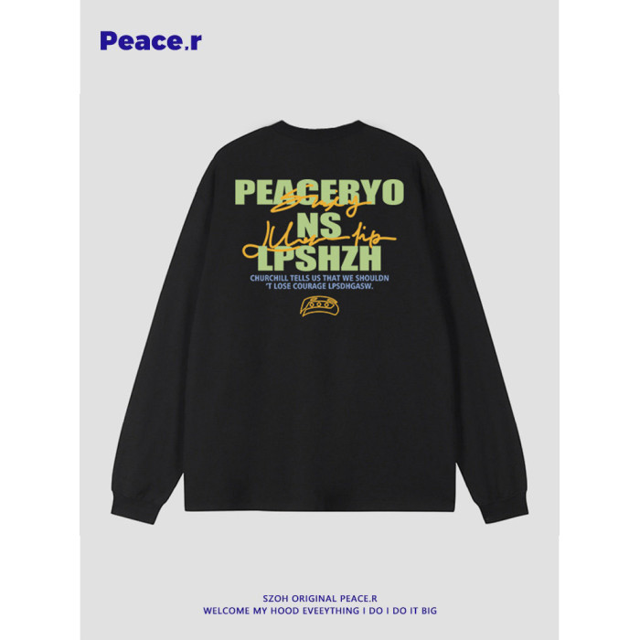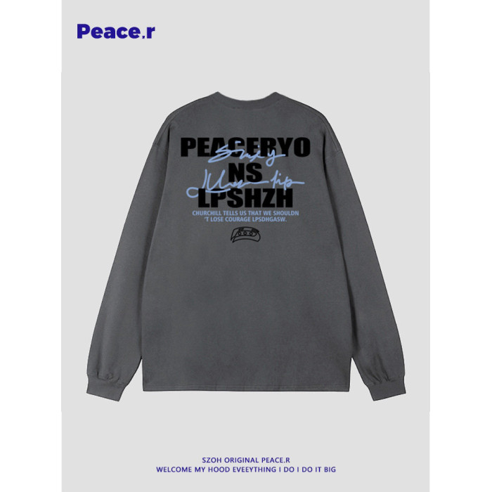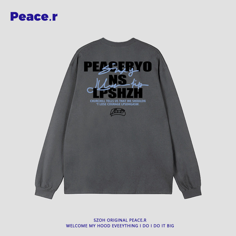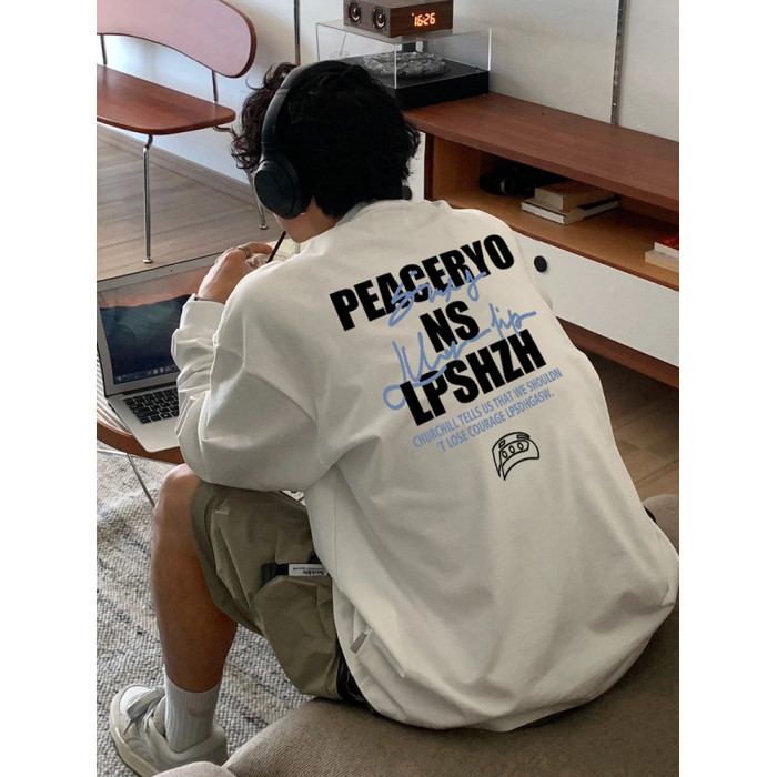 美式高街字母印花秋季270g重磅長袖T恤男ins潮牌設計感寬鬆打底衫