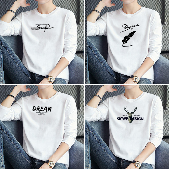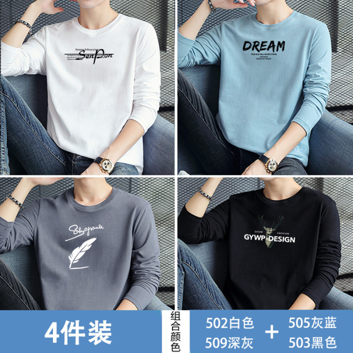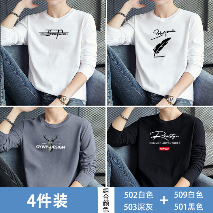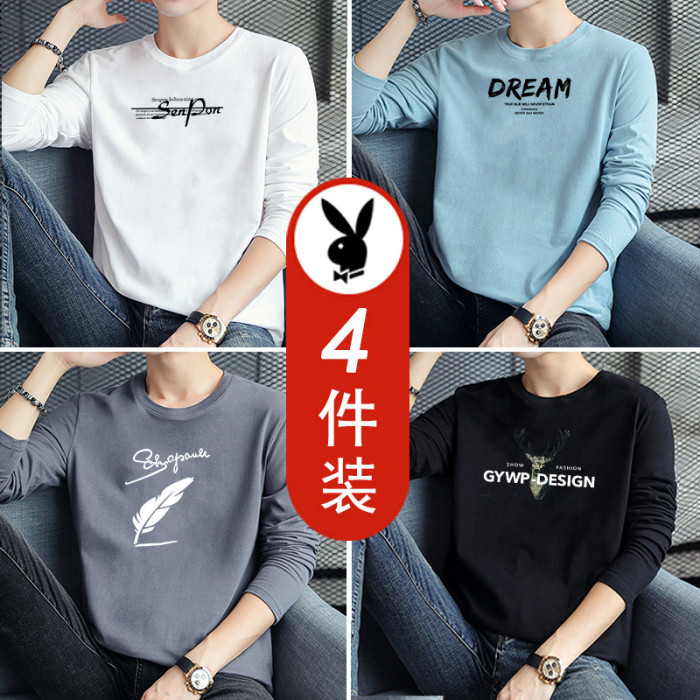 4件花花公子2026男士長袖t恤男裝純棉白色秋季裝上衣服打底衫潮流
