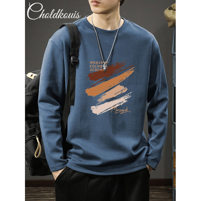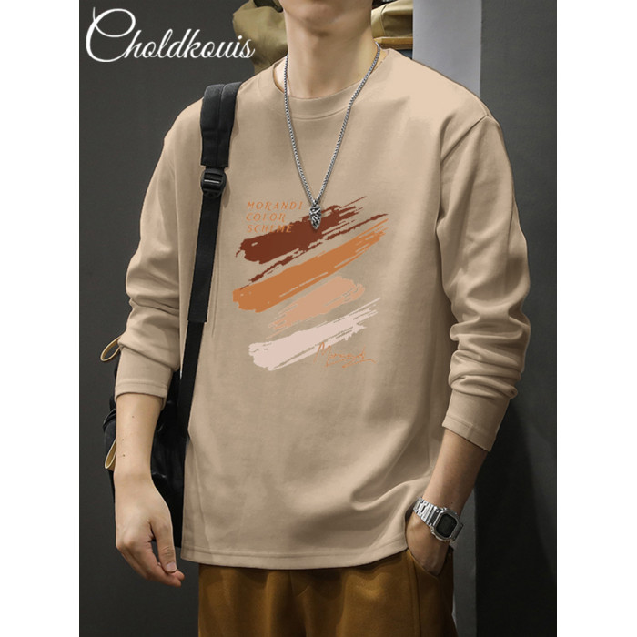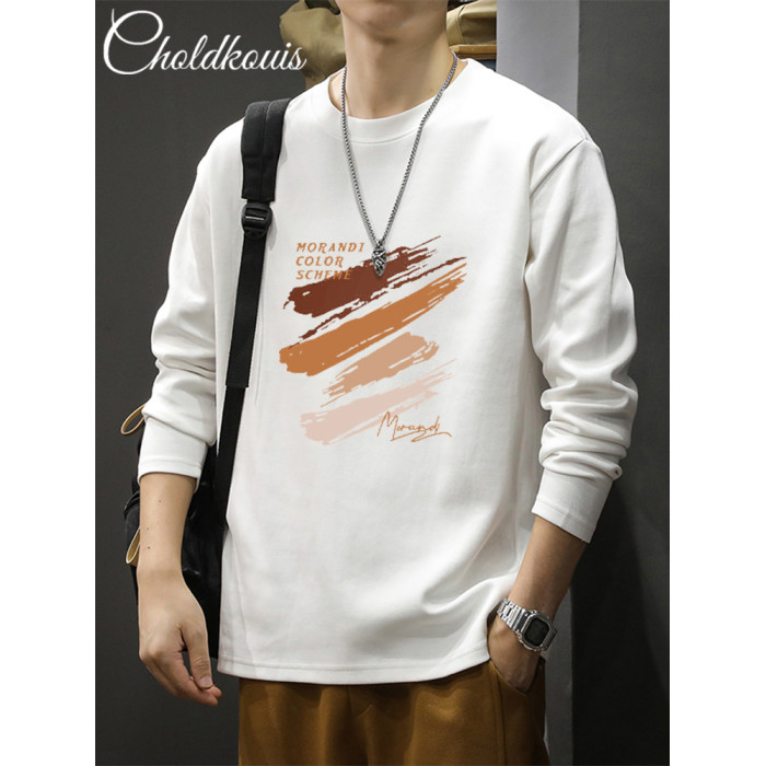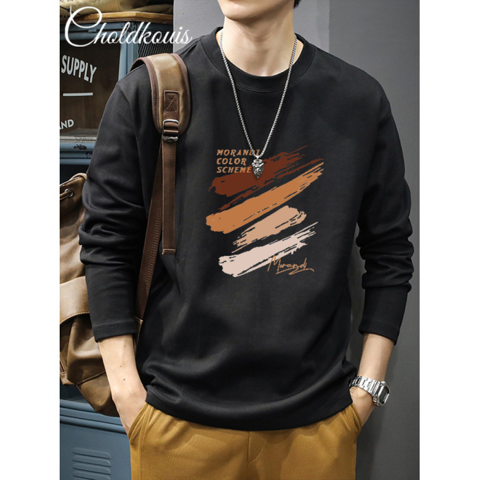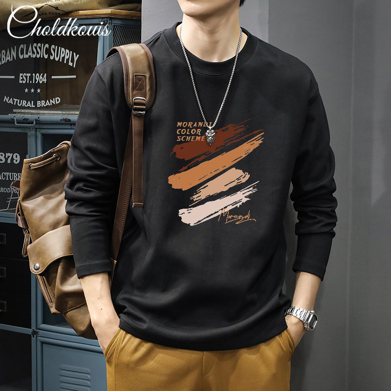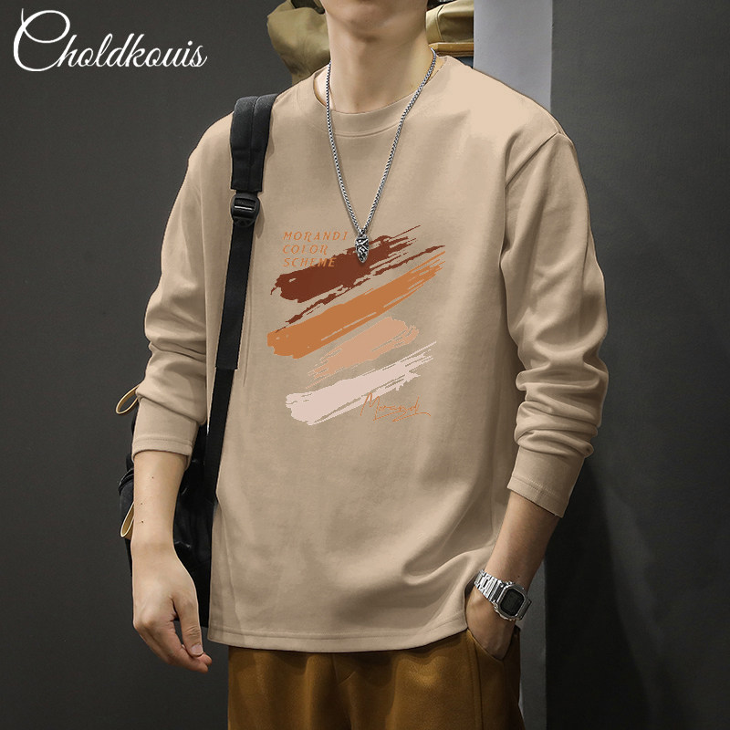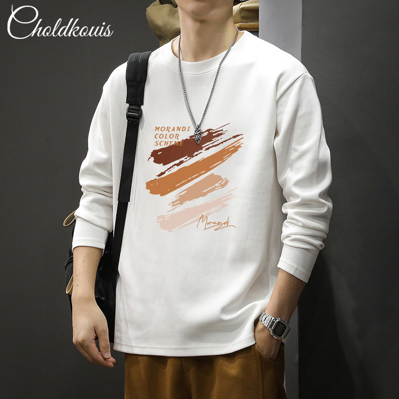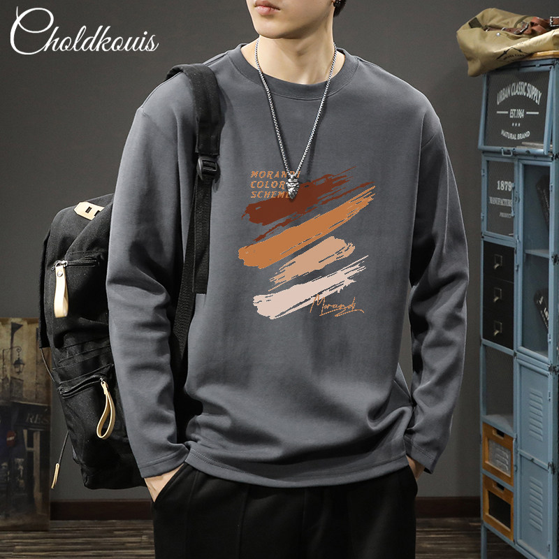 長袖t恤男士秋季純棉潮流寬鬆大碼休閒上衣新款青少年百搭打底衫