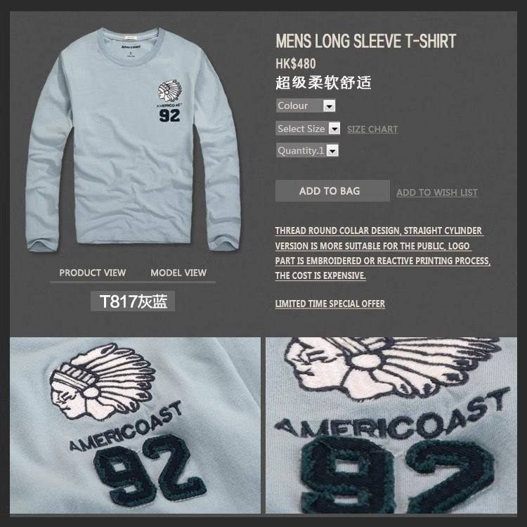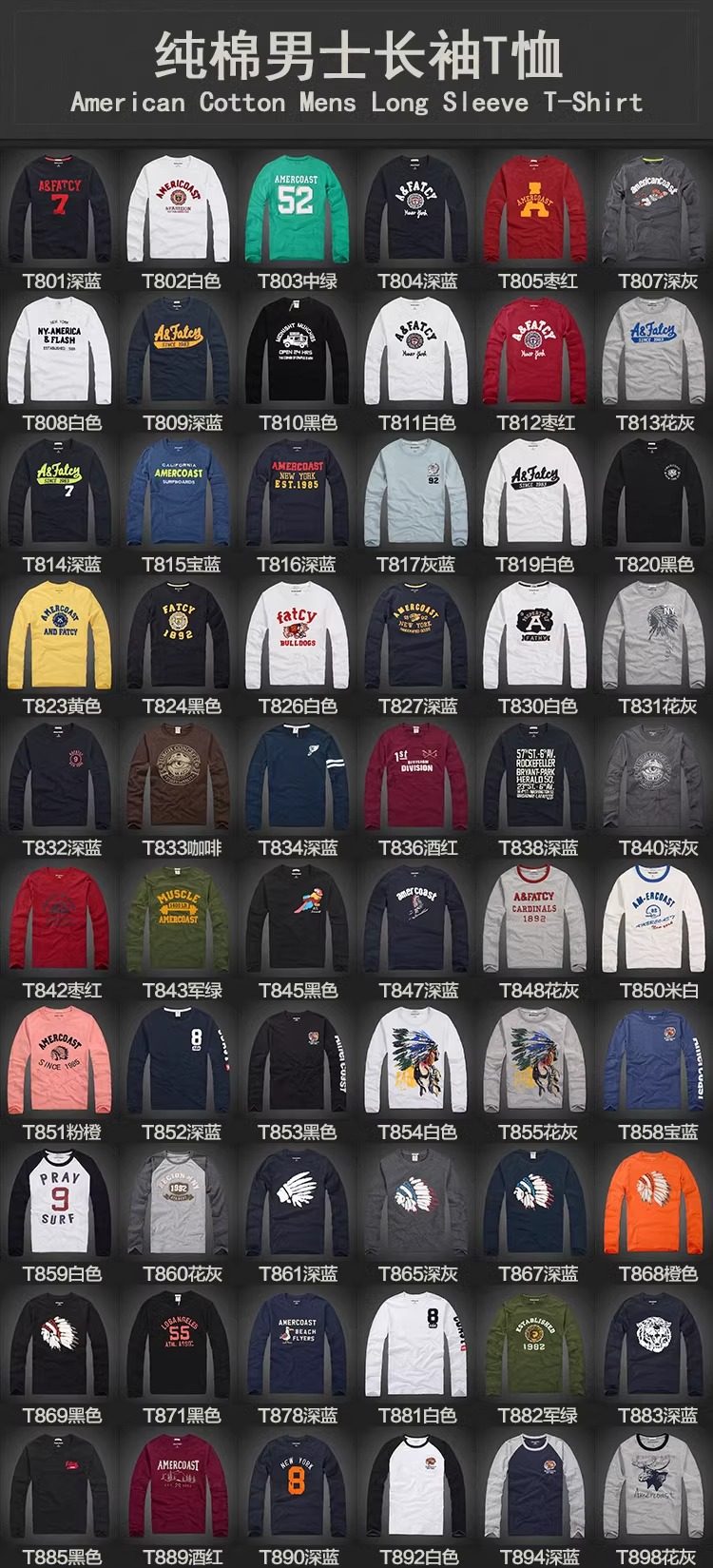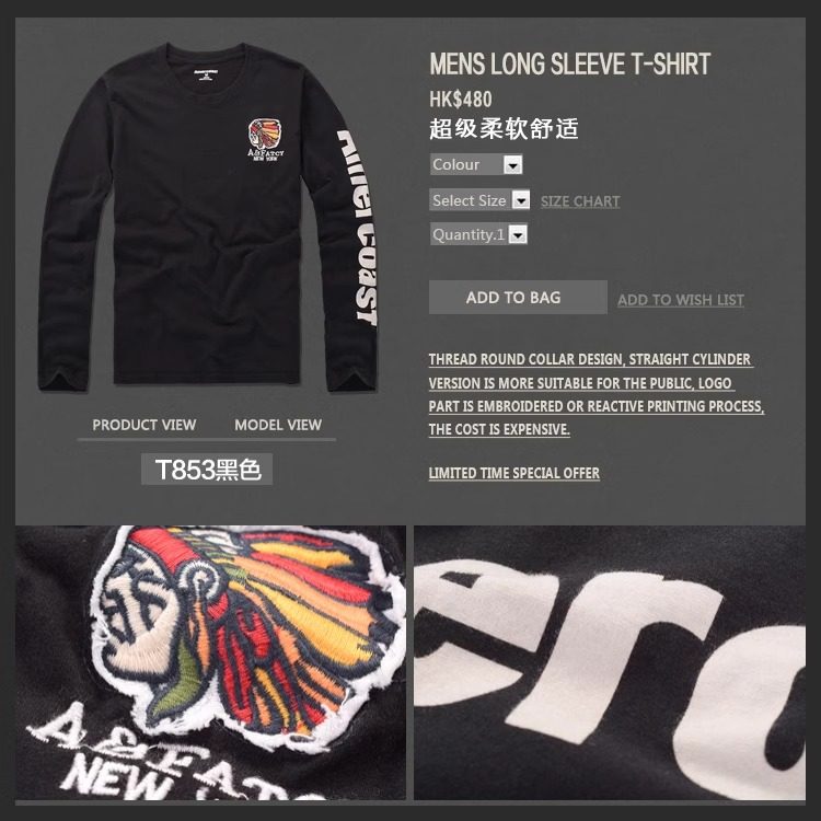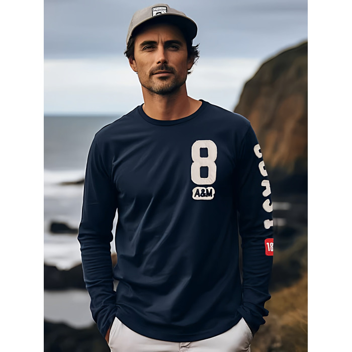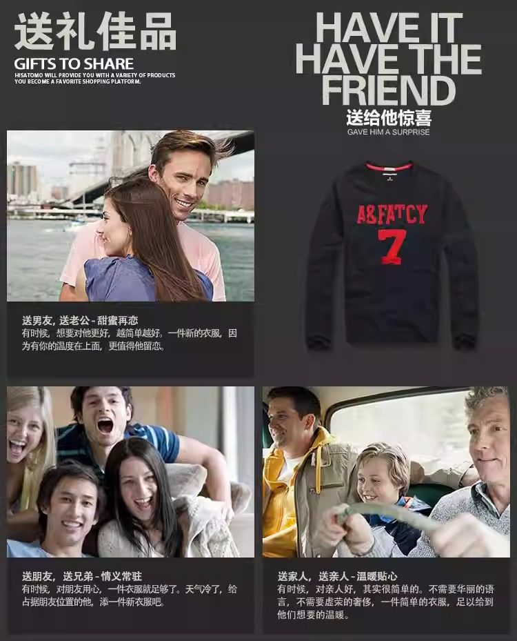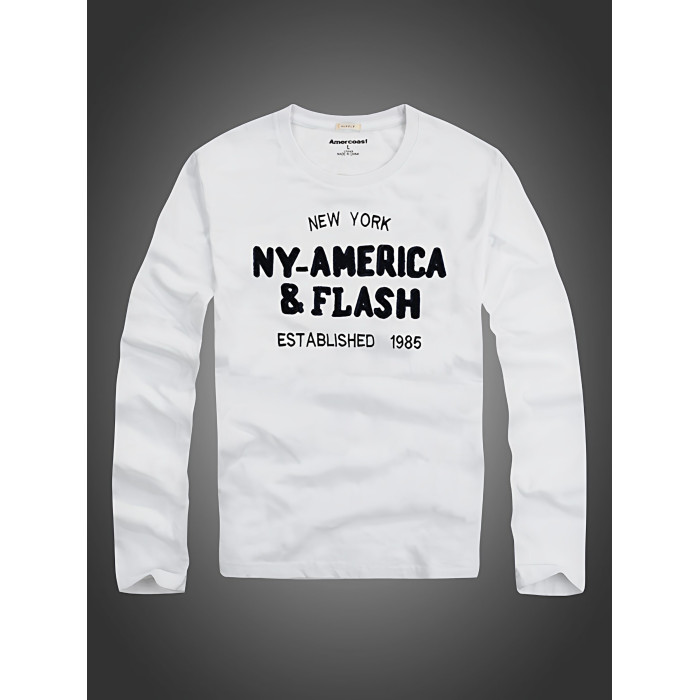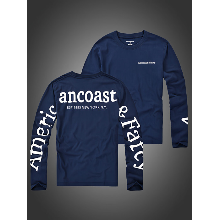 美洲海岸af長袖t恤男潮秋裝衣服純棉圓領寬鬆休閒體恤男士打底衫
