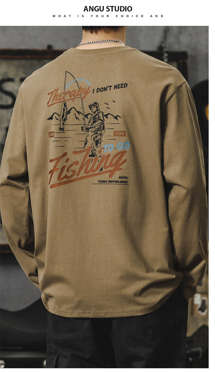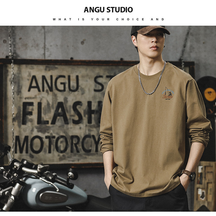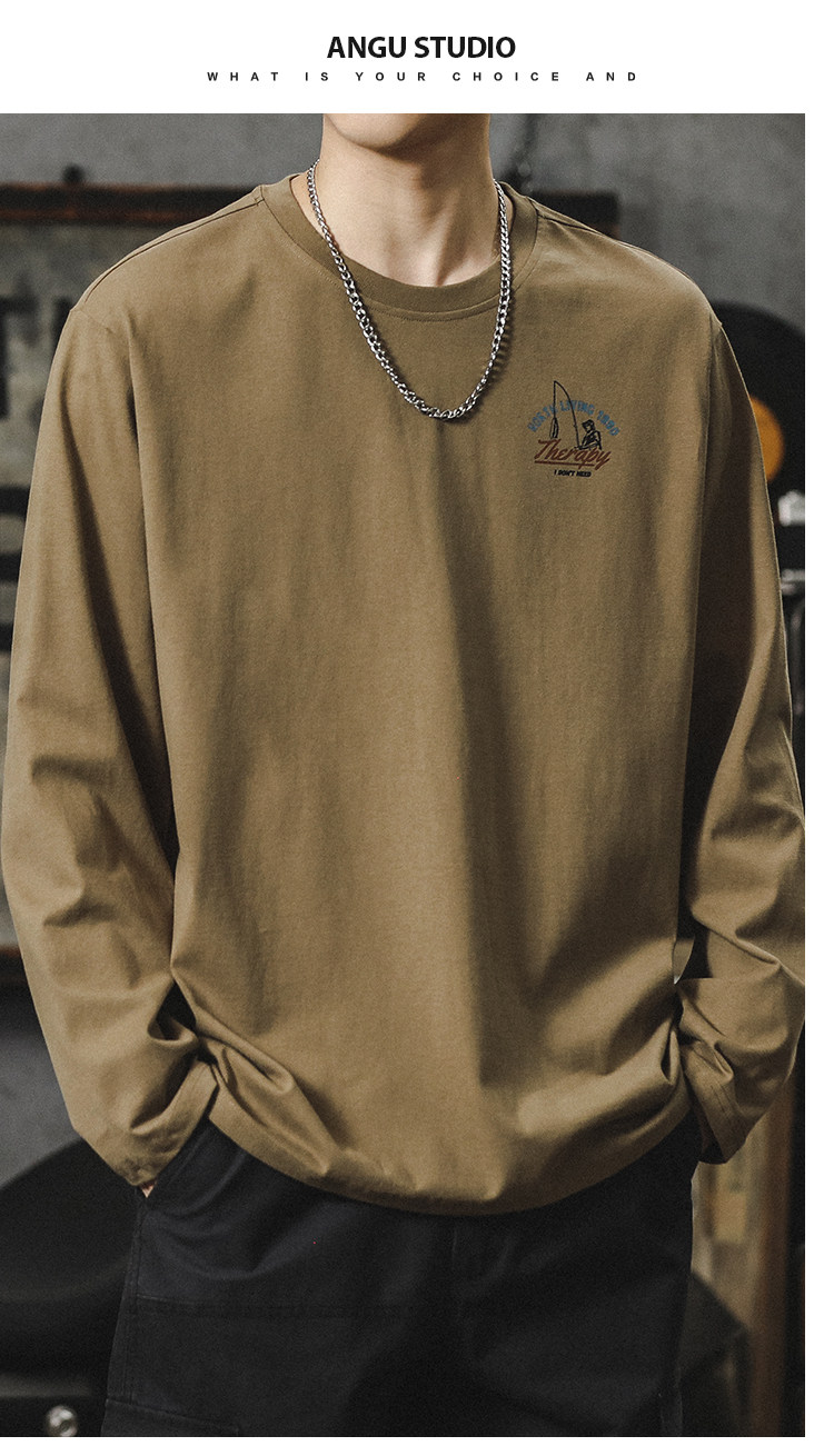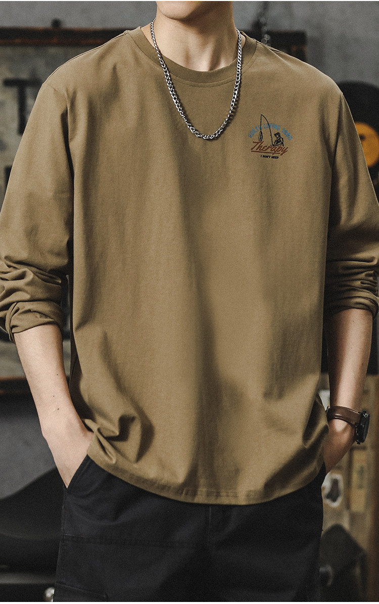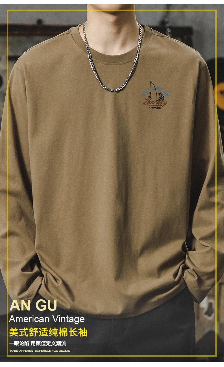 重磅260G圓領長袖打底T恤男內搭純棉男女寬鬆潮牌潮流百搭上衣服