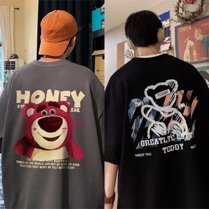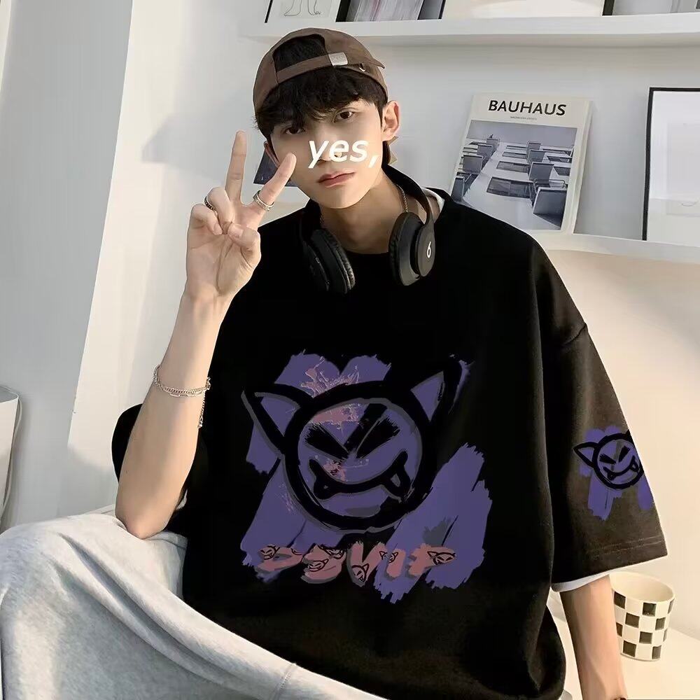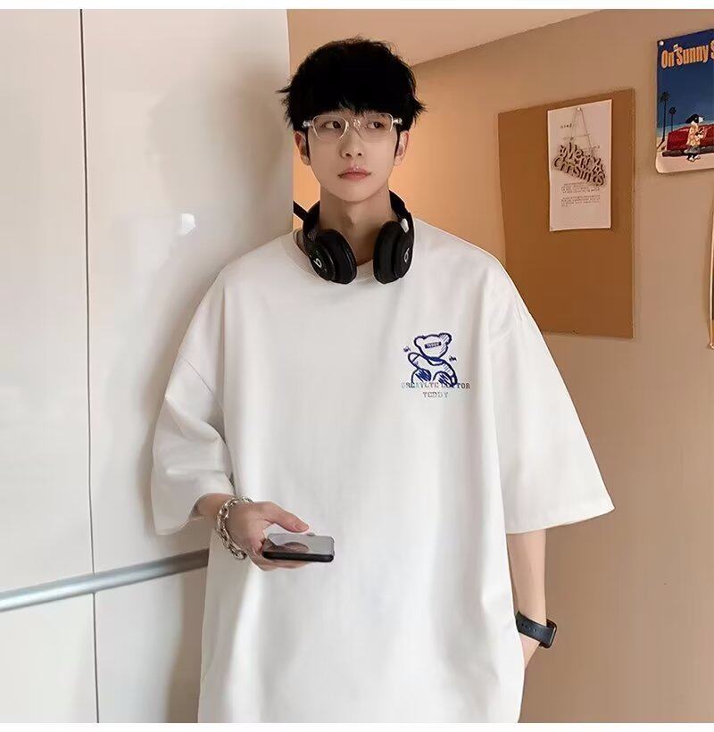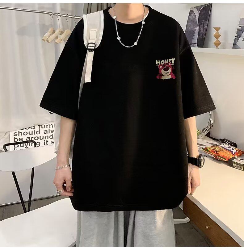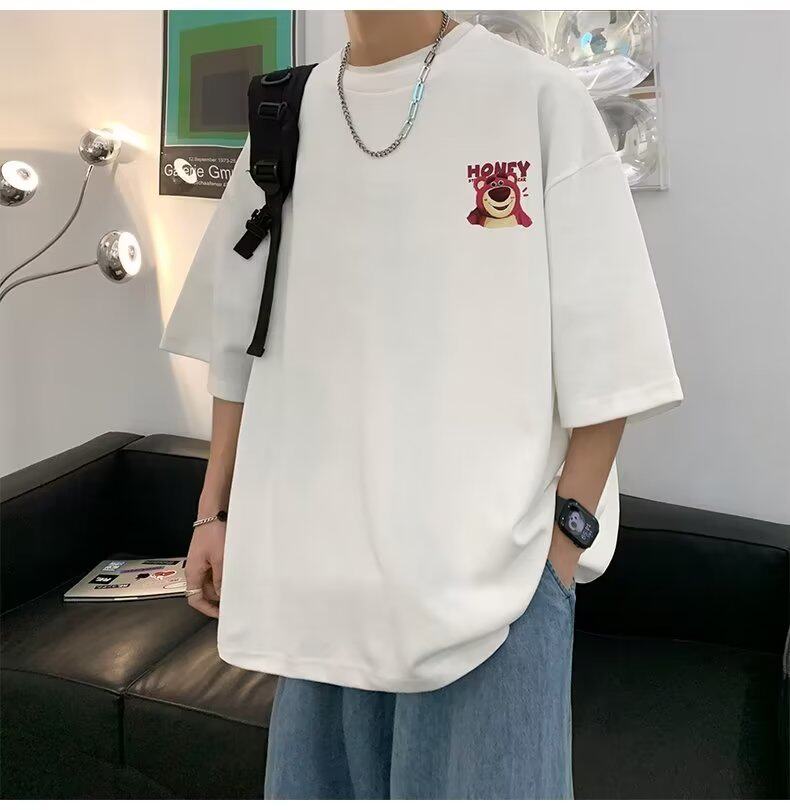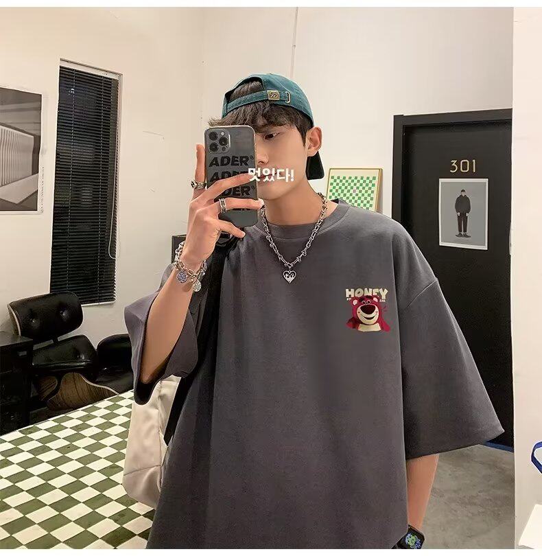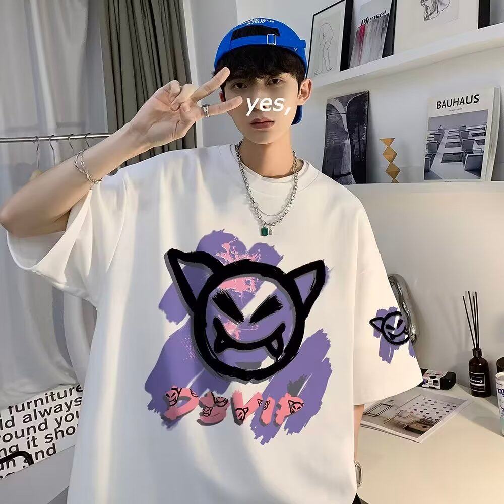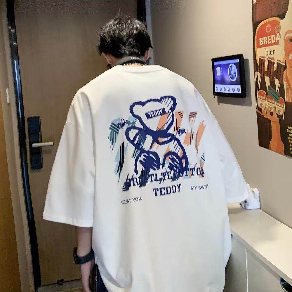 加肥加大碼純棉短袖t恤男士夏季港風重磅寬鬆半袖卡通印花上衣潮