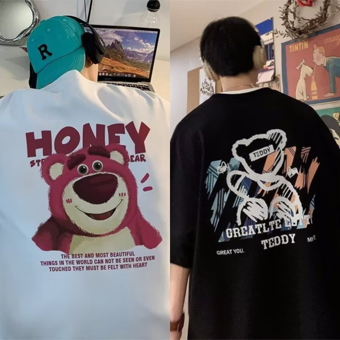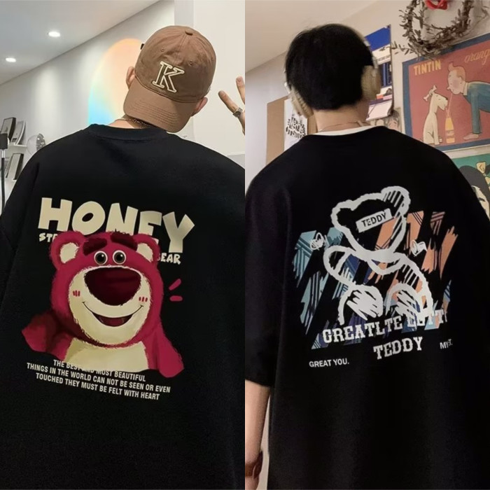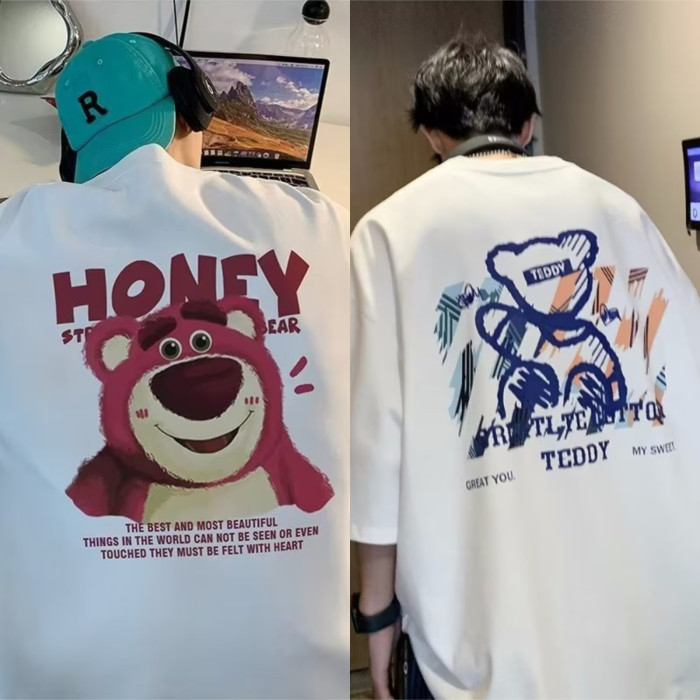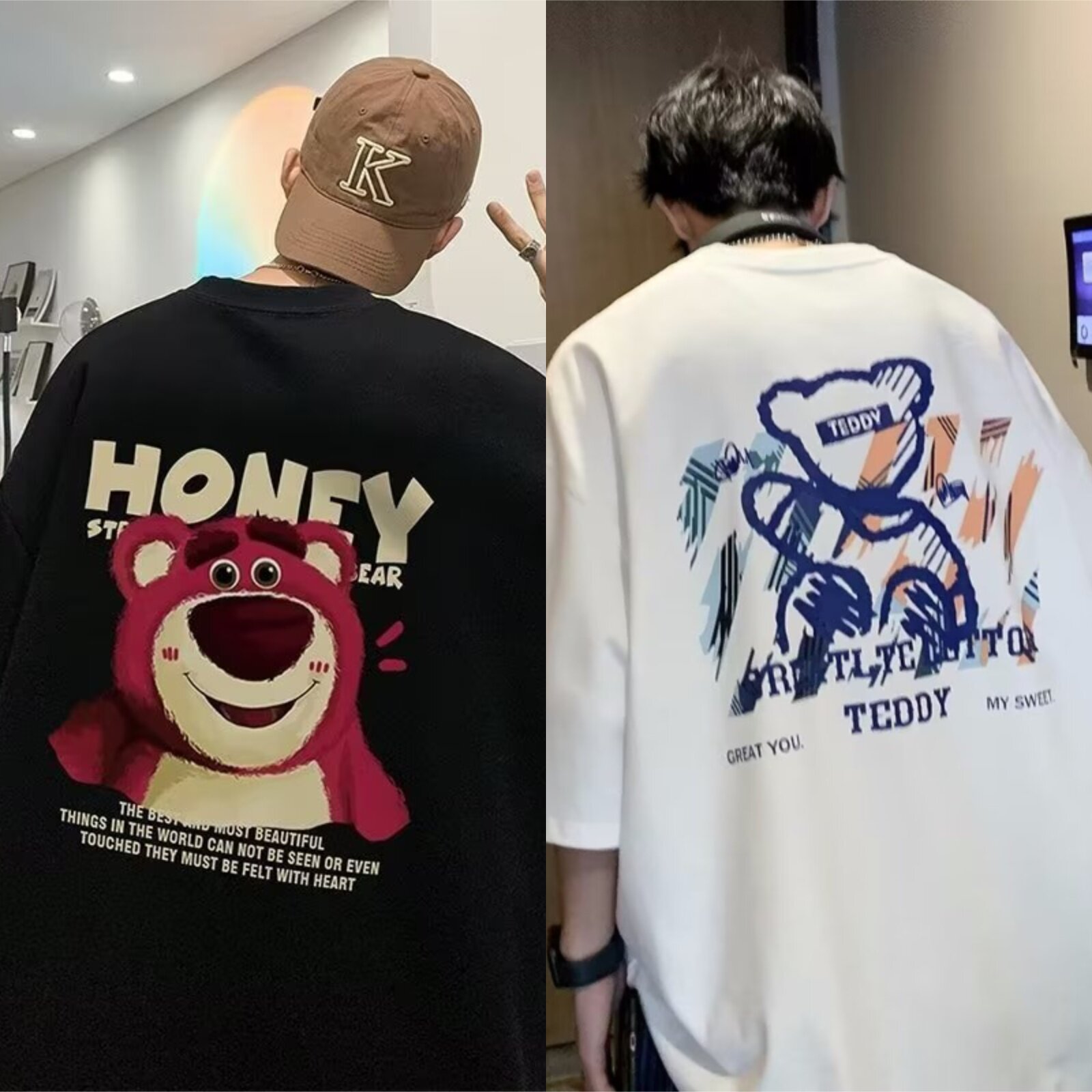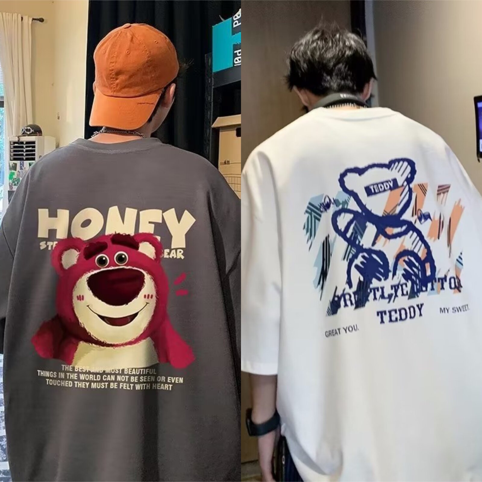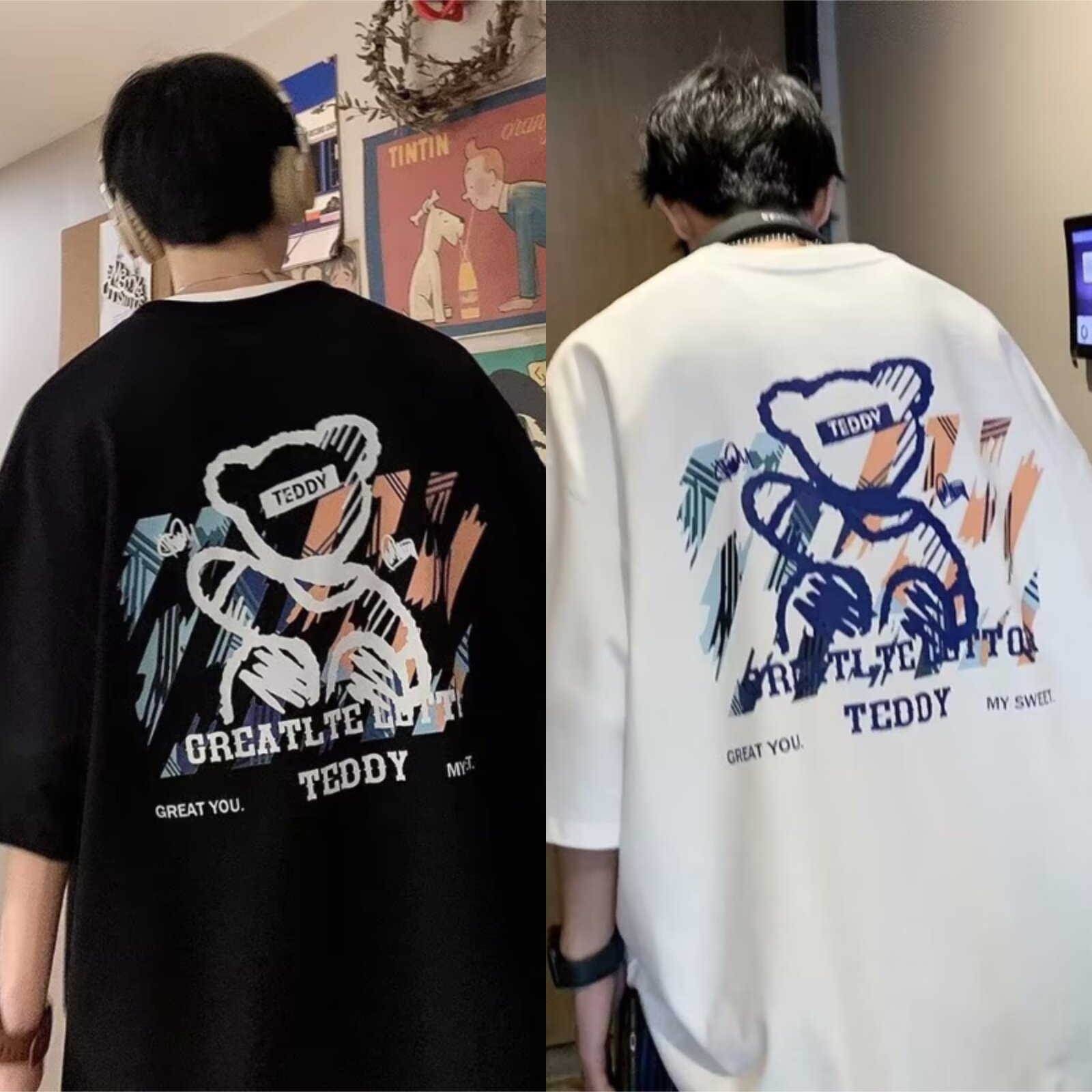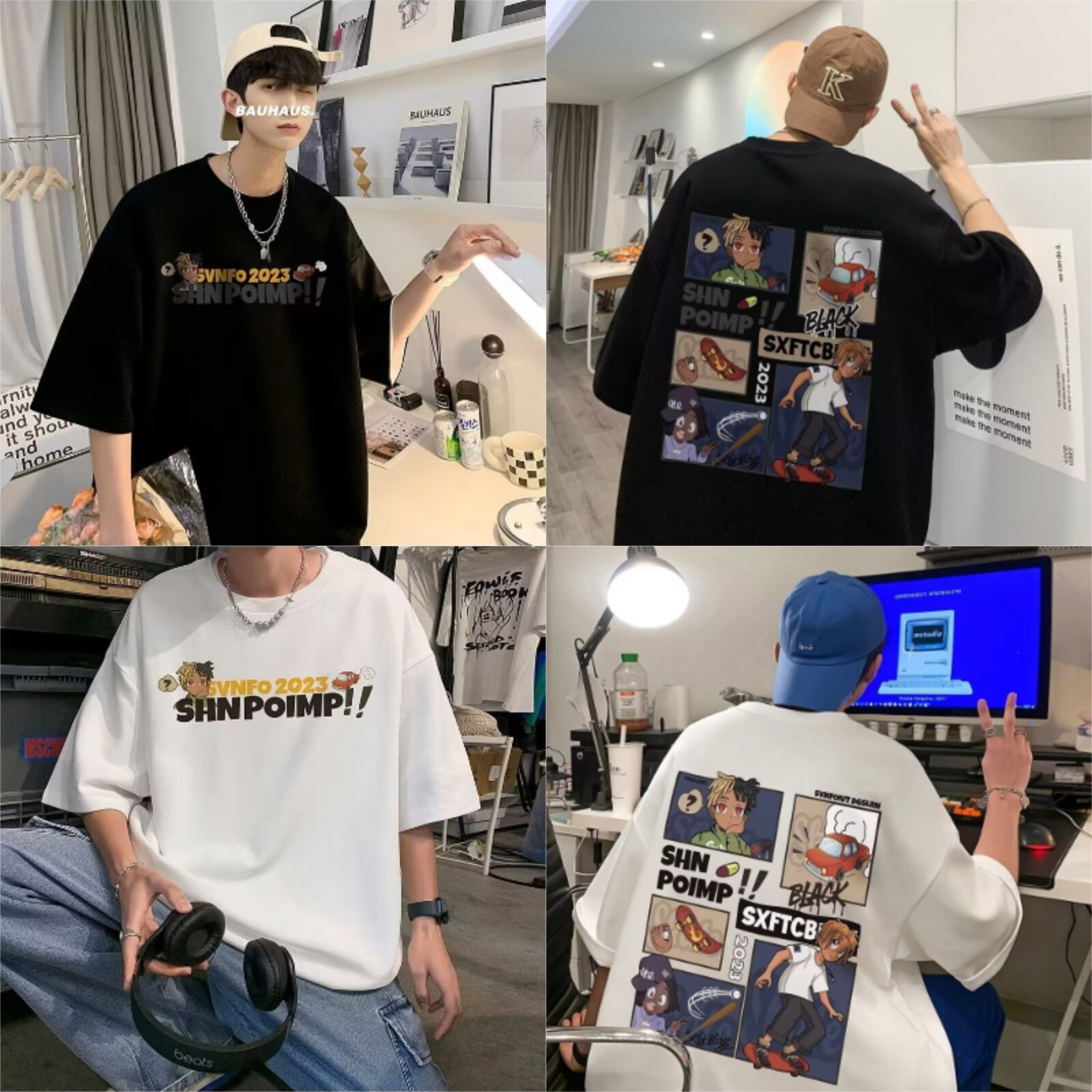 加肥加大碼純棉短袖t恤男士夏季港風重磅寬鬆半袖卡通印花上衣潮