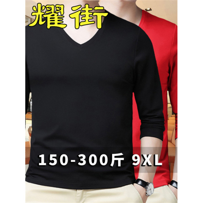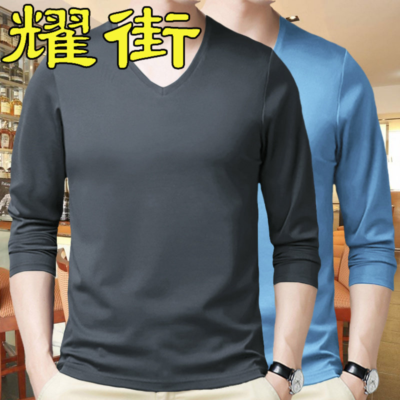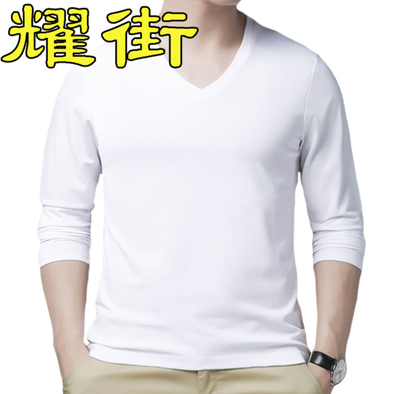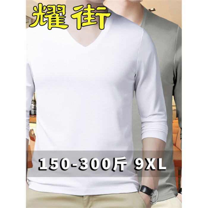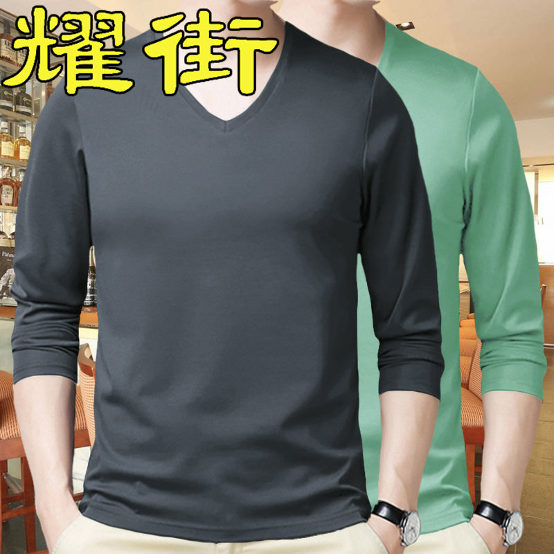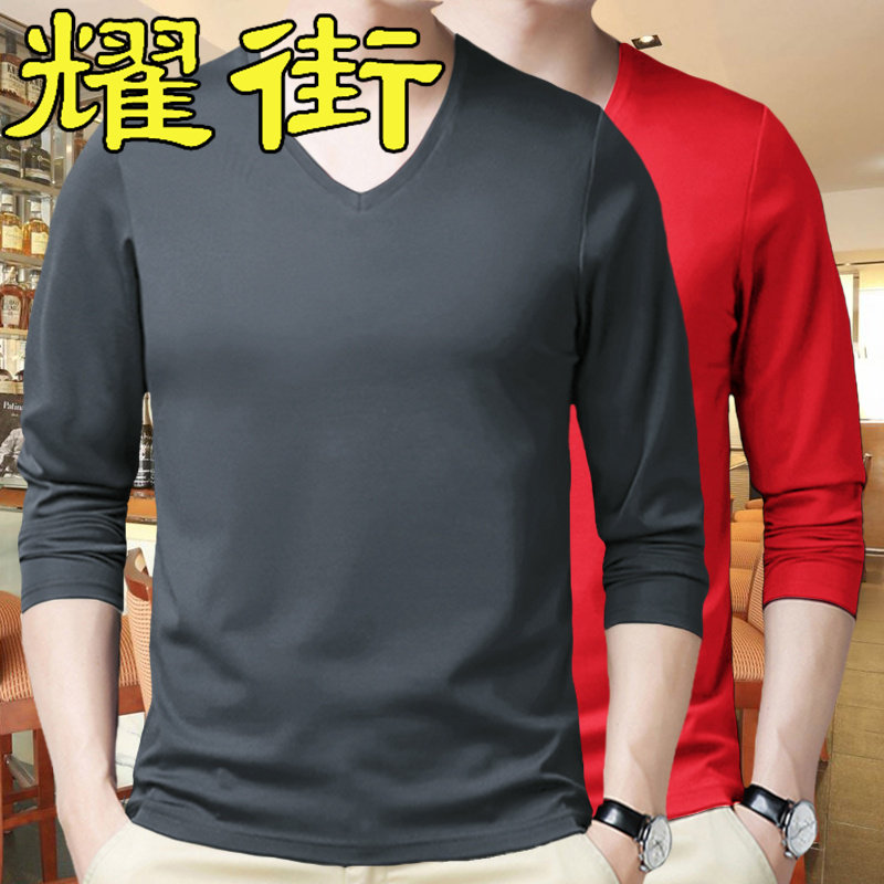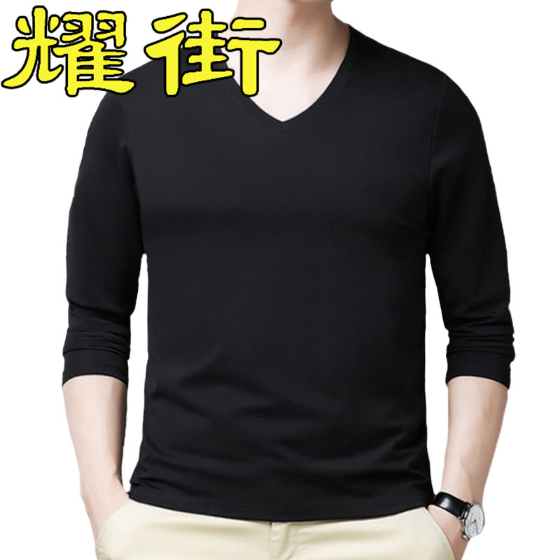 V領長袖T恤男士春秋大碼潮牌胖子男青少年體內搭衣服V領T打底衫