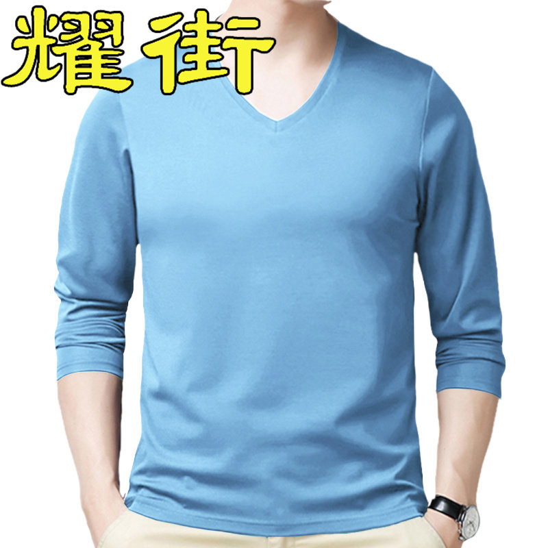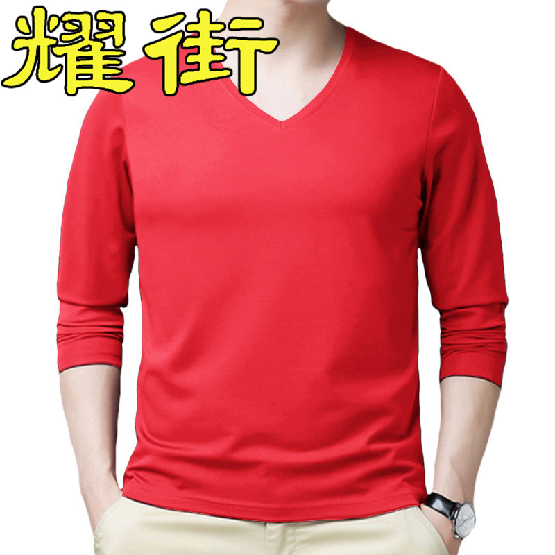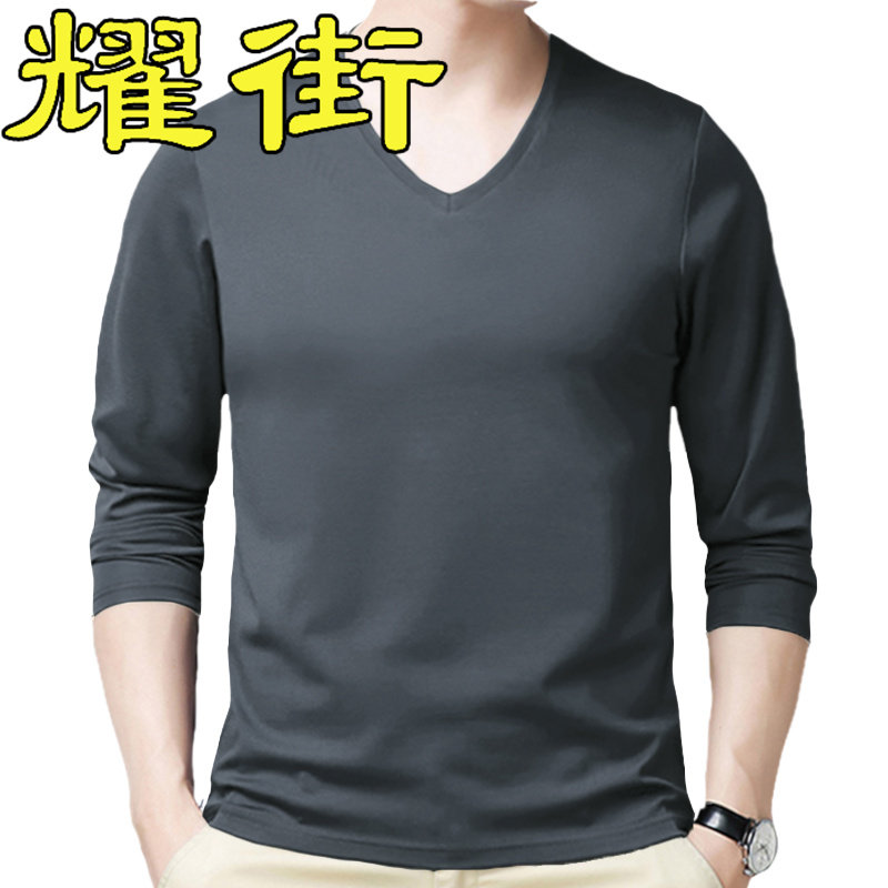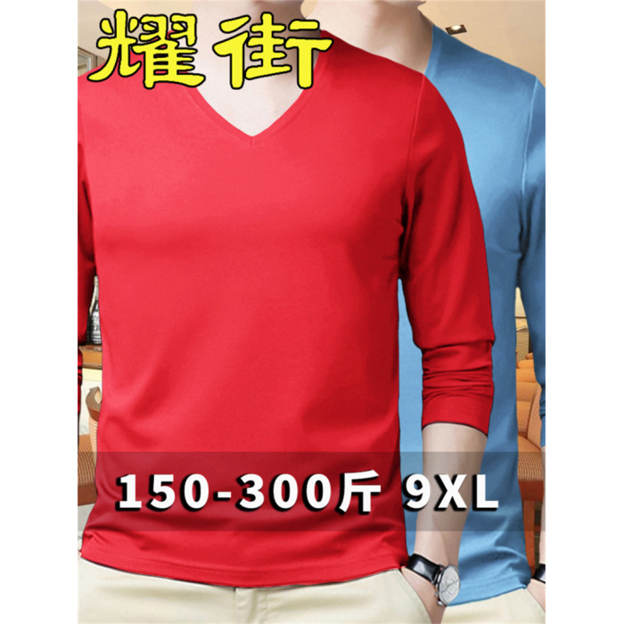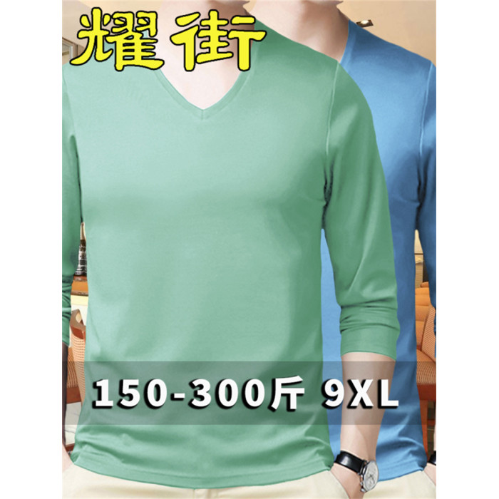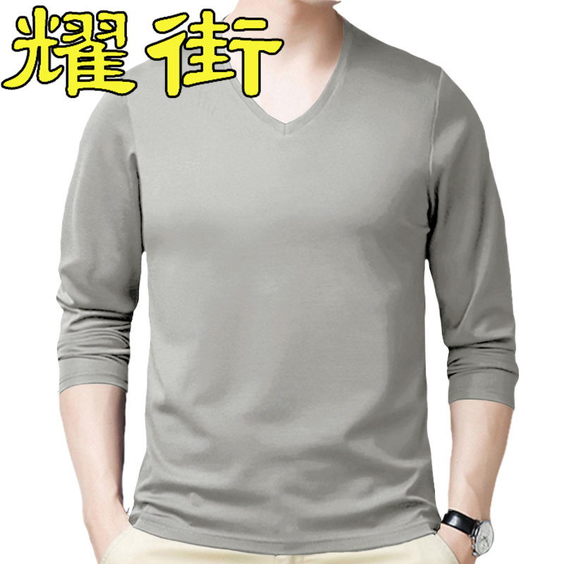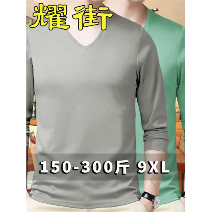 V領長袖T恤男士春秋大碼潮牌胖子男青少年體內搭衣服V領T打底衫