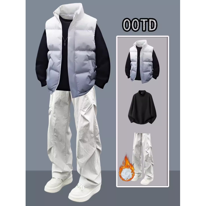 潮流新款冬季棉馬甲男士高級感漸變色痞帥加厚坎肩羽絨棉服外套男