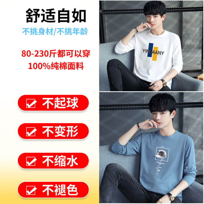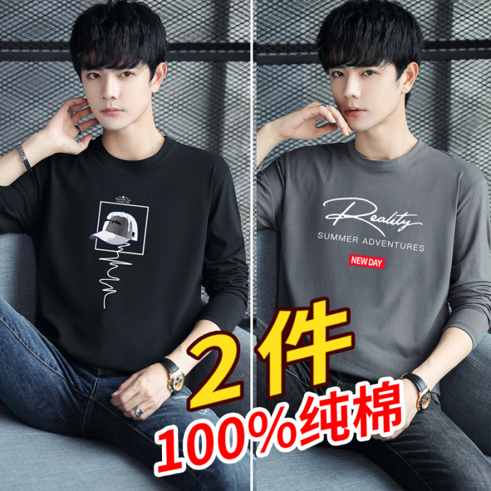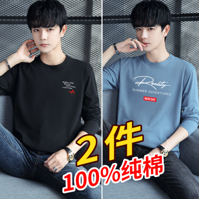 2件長袖t恤男士2026新款純棉寬鬆上衣潮流薄款全棉秋衣男裝打底衫