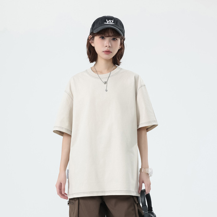 鯤海鵬雲短袖男T恤夏季新款潮牌個性輯明線設計上衣男二開工作服