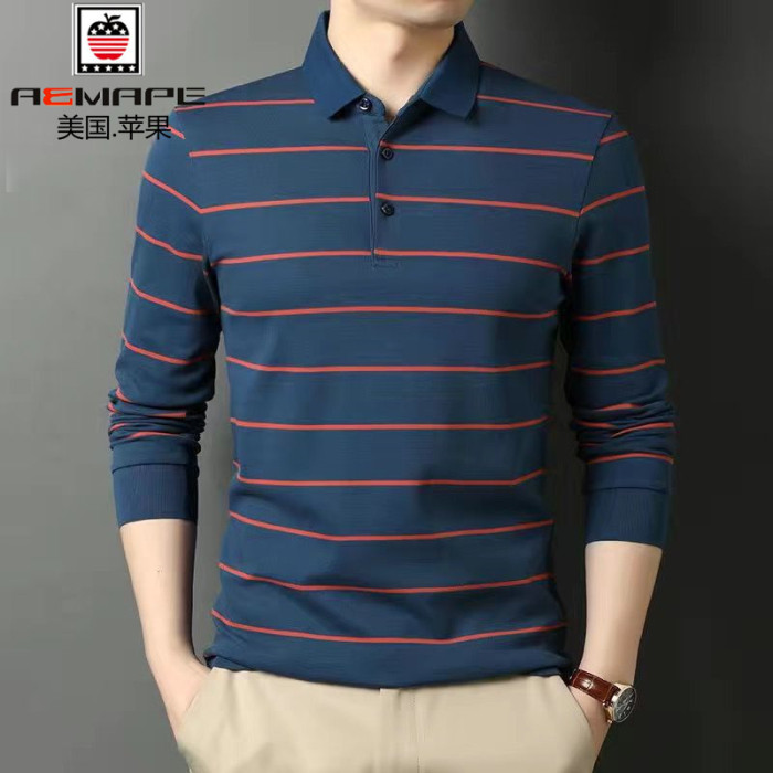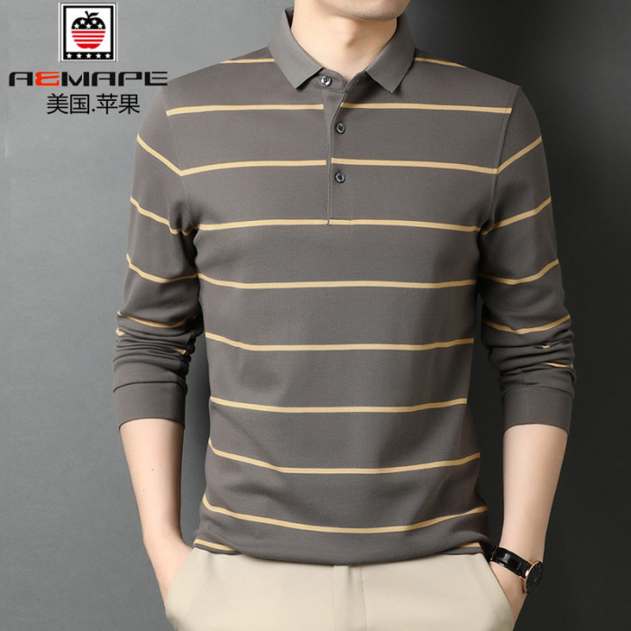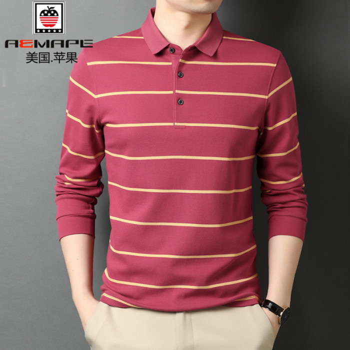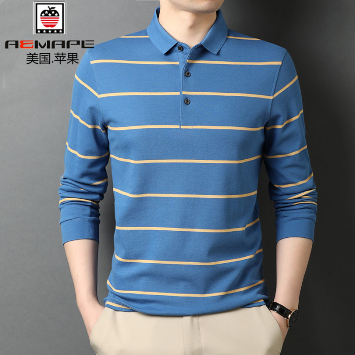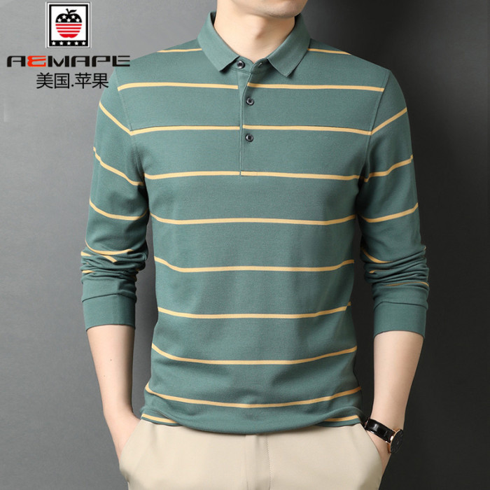 美國蘋果純棉高檔翻領長袖男t恤衫春秋新款打底衫高檔條紋polo衫