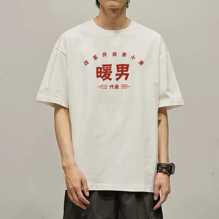 國潮趣味文字渣男T恤暖男直男代表短袖純棉衣服休閒半袖體恤上衣