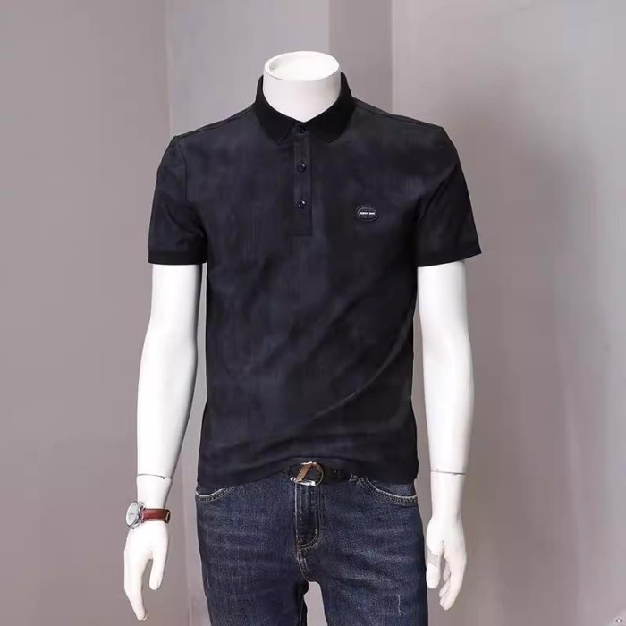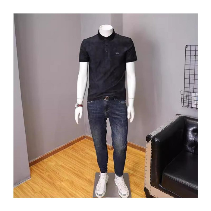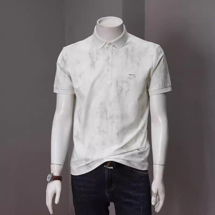 輕奢夏季新款潮流印花男士翻領短袖高級感polo衫商務帥氣男t恤衫