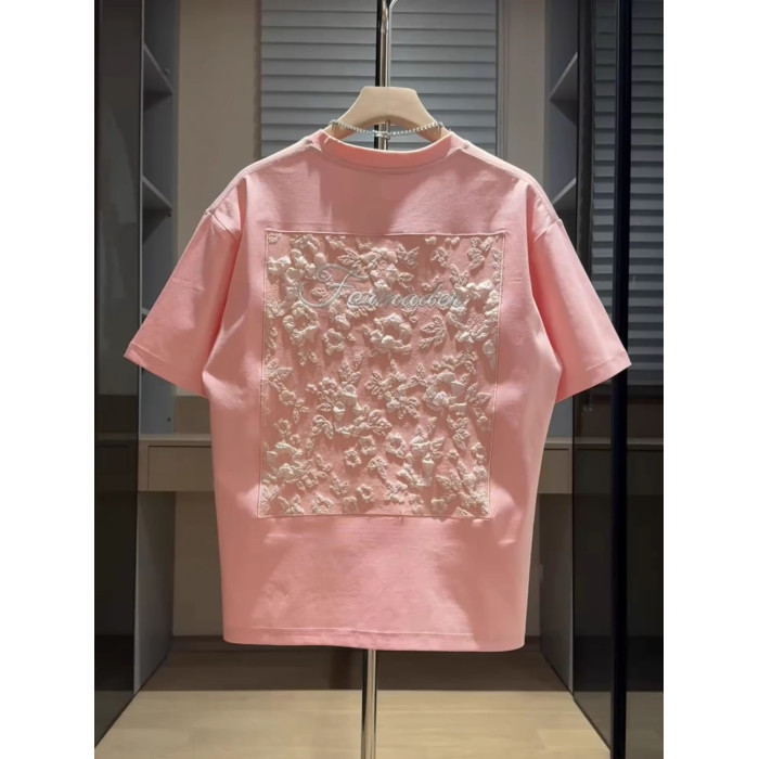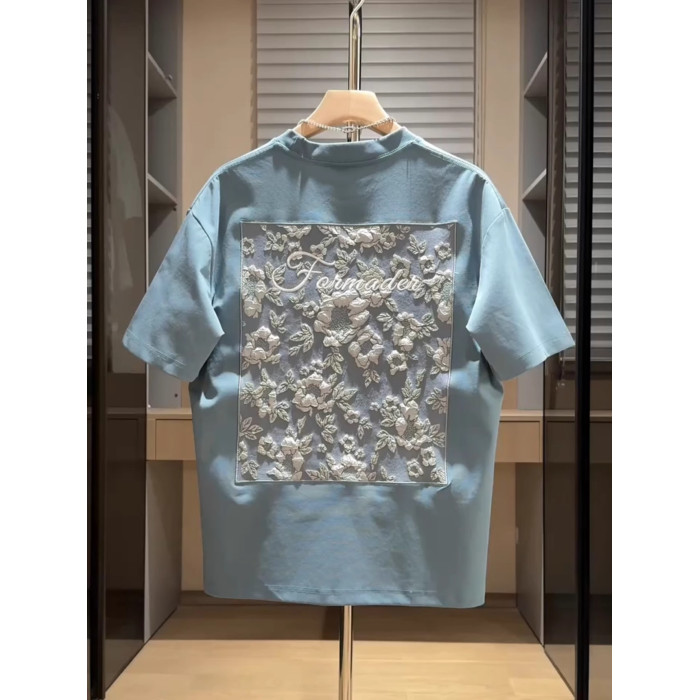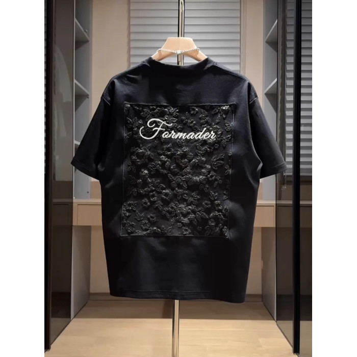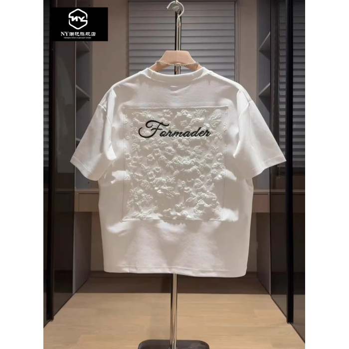 NY潮牌刺綉短袖男t恤2025新款夏季立體提花半袖百搭圓領寬松上衣