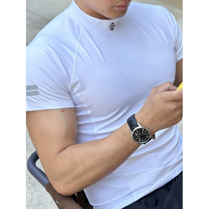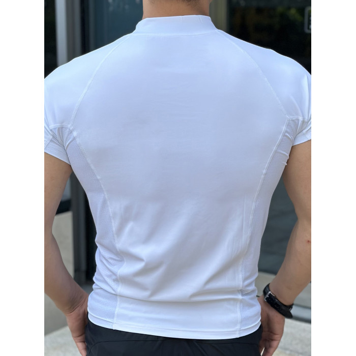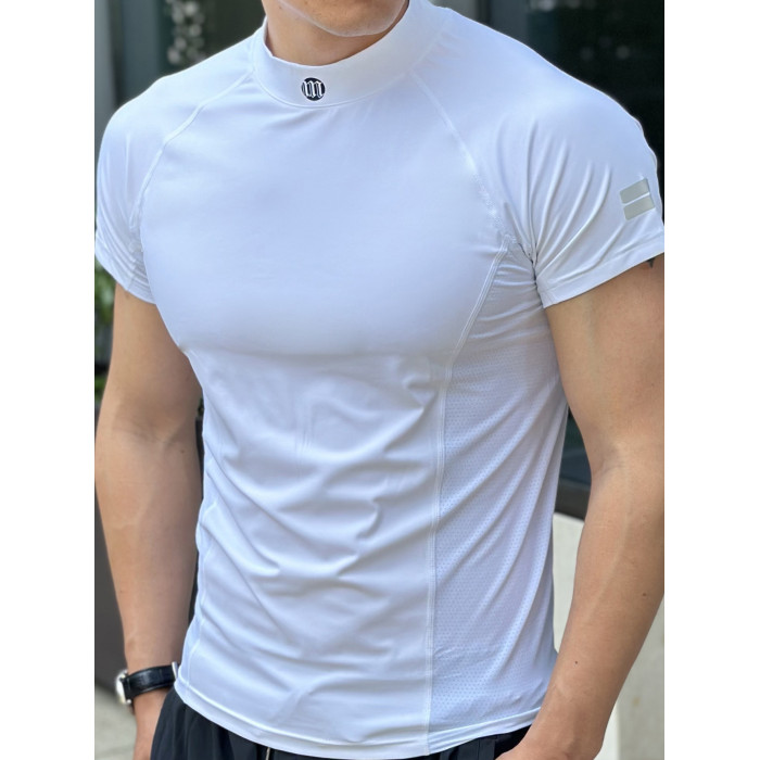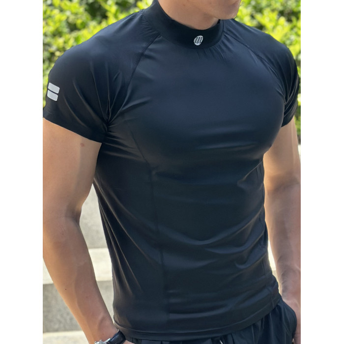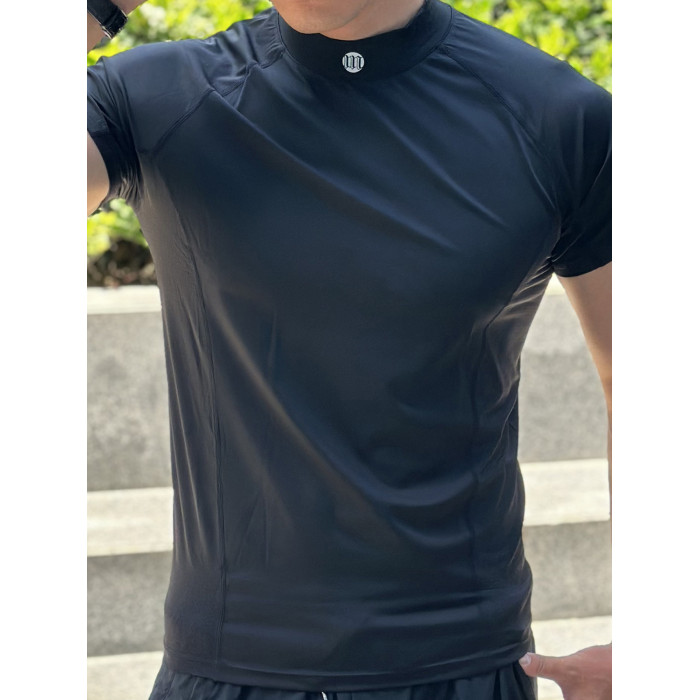 高領運動健身衣短袖男T恤緊身衣立領高彈緊身衣擼鐵跑步訓練t恤男