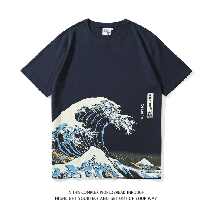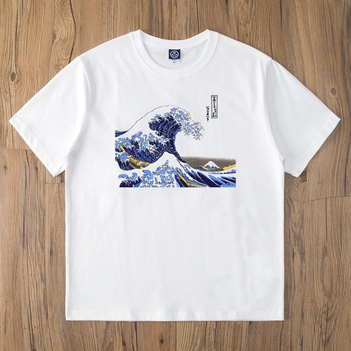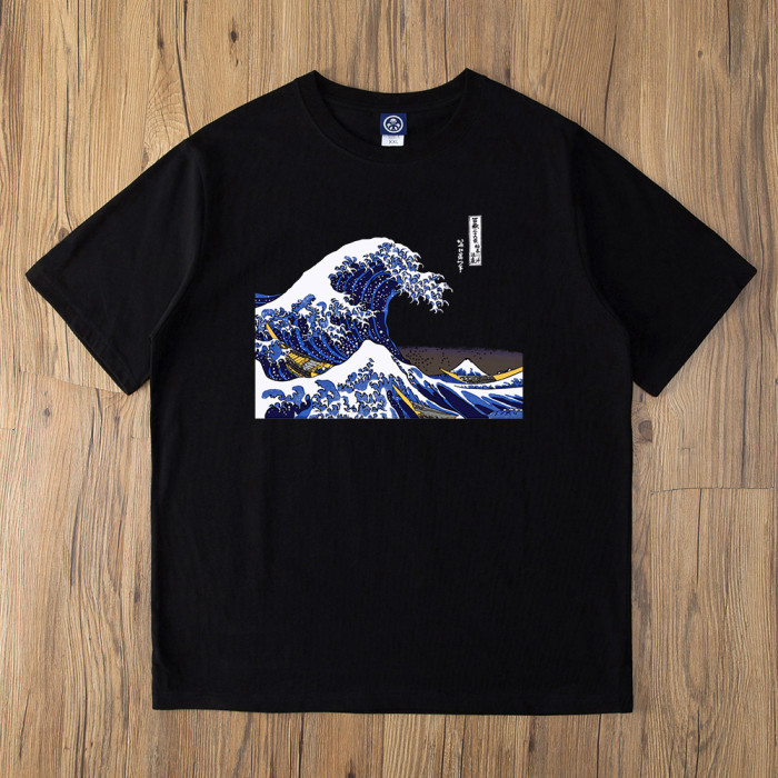 神奈川海浪日系潮牌男T恤250g重磅浮世繪個性印花復古情侶短袖夏