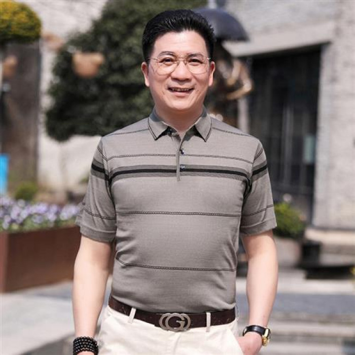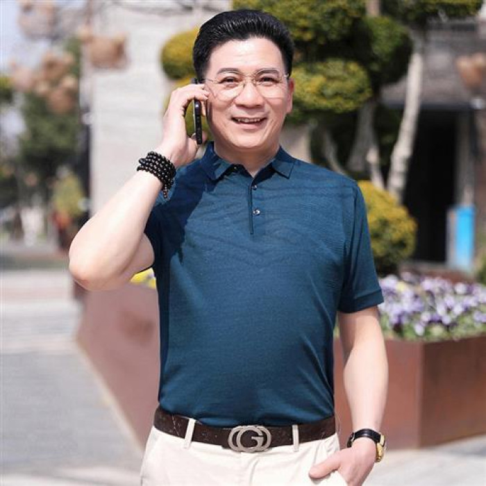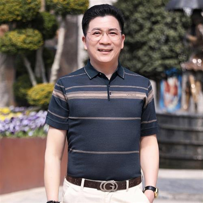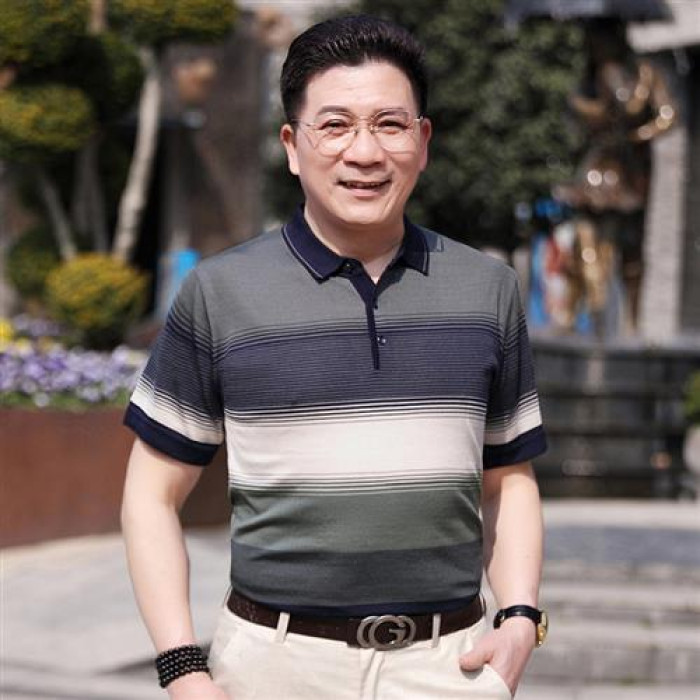 中老年男裝爸爸t恤夏季半袖翻領冰絲男士T恤寬松短袖體恤男t恤