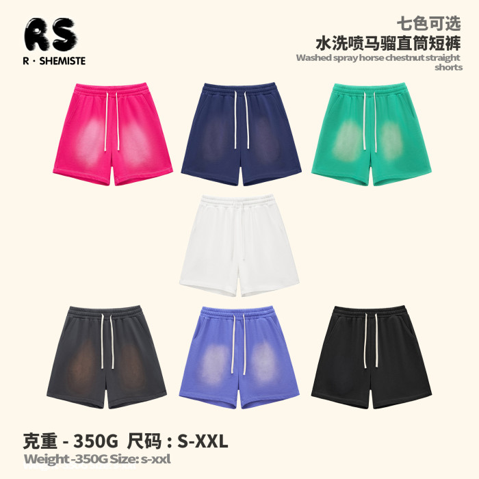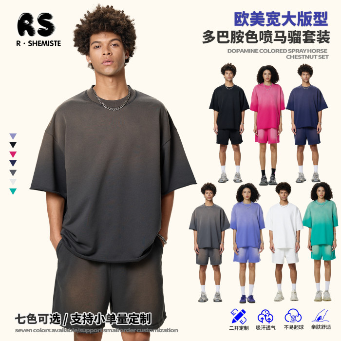 RS男裝|水洗噴馬騮短袖短褲套裝歐美多巴胺短袖t恤水洗套裝男T恤