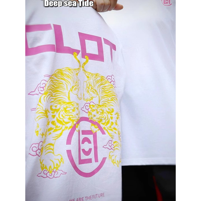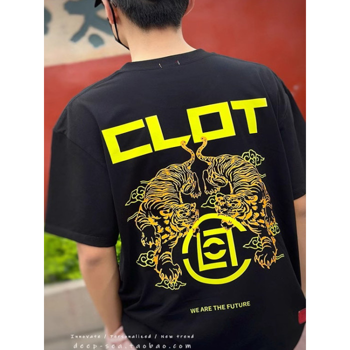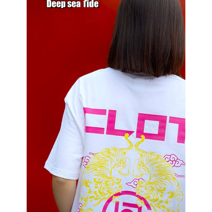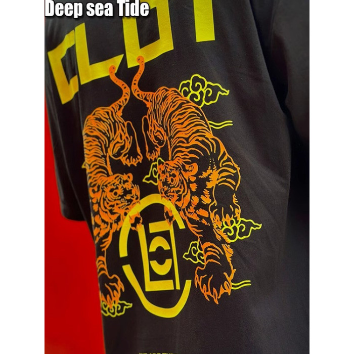 clot潮牌陳冠希夏季新款老虎印花寬松休閒半袖情侶純棉男t恤短袖