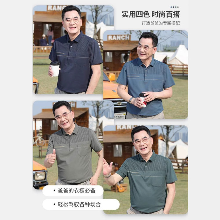 啄木鳥冰爽涼感抗菌透氣珠地網眼男T恤POLO衫男士短袖夏季爸爸裝