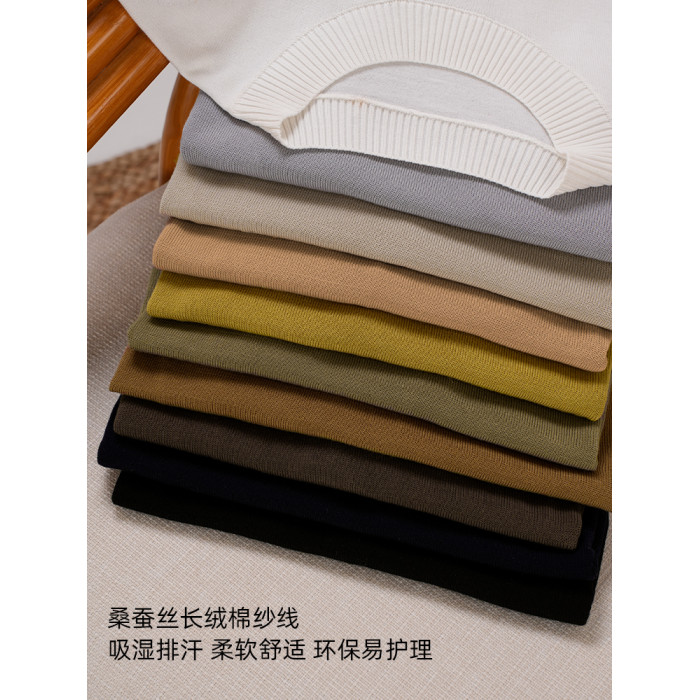 【桑蠶絲長絨棉】CULTUM輕薄透氣休閒針織衫百搭圓領短袖男T恤