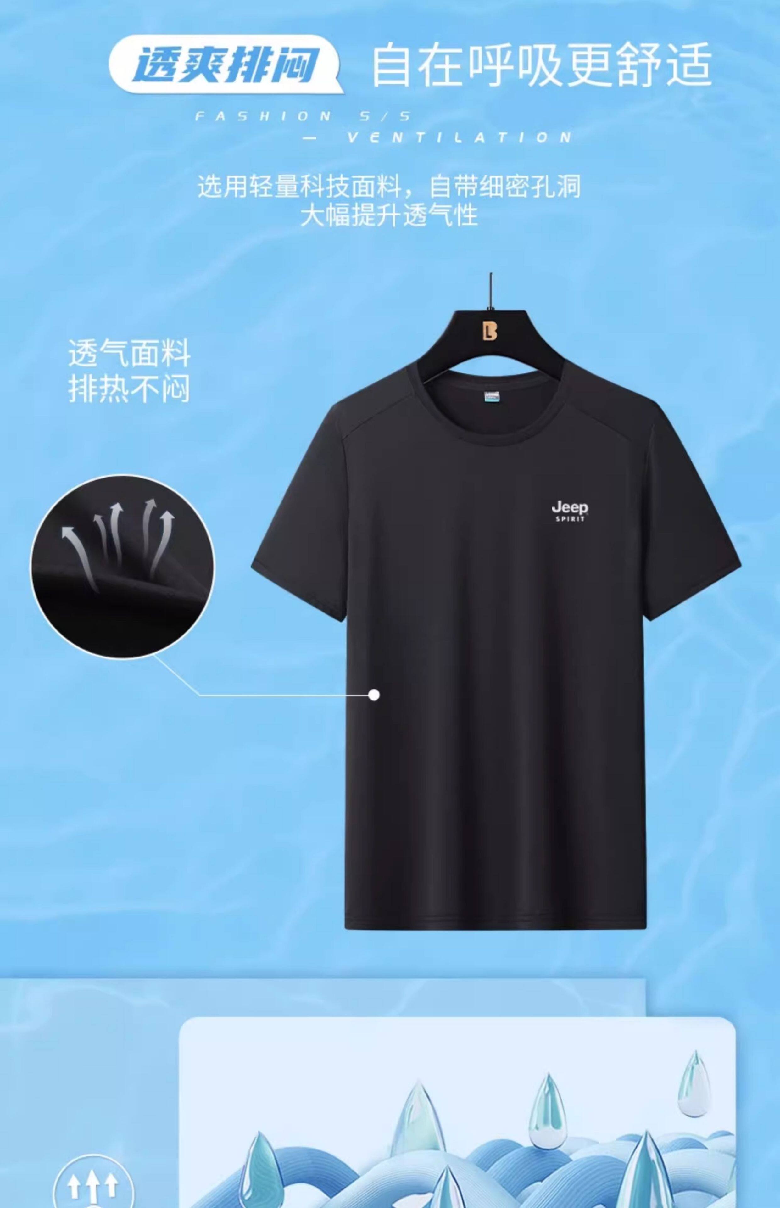 JEEP SPIRIT男士速乾男t恤短袖夏季運動上衣新款大碼冰絲男裝衣服
