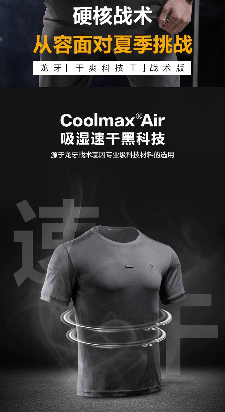 【2件更優惠】龍牙T恤七代B2短袖戰術圓領衫純色速乾透氣黑色男