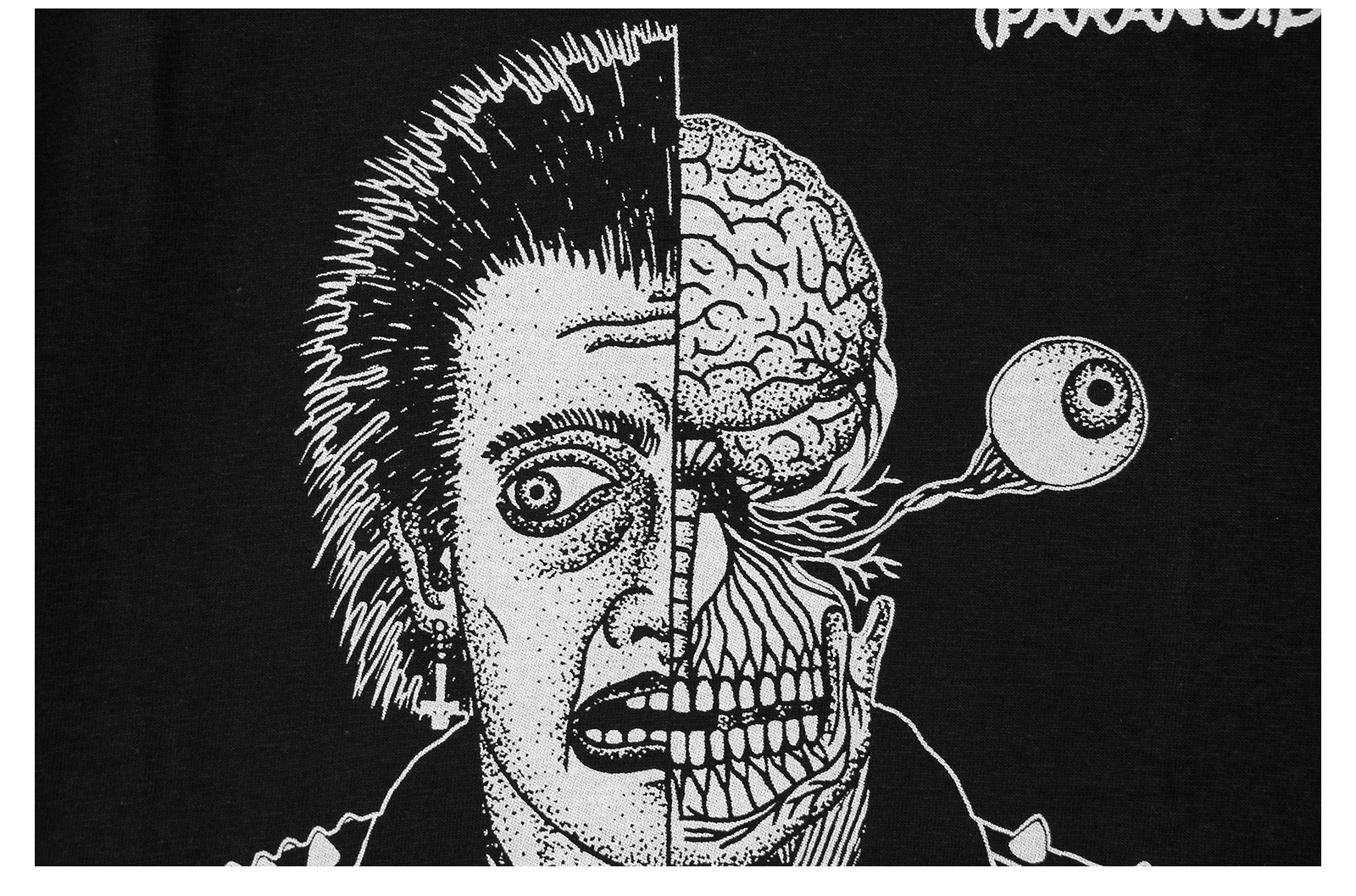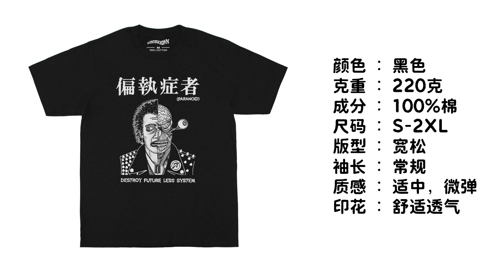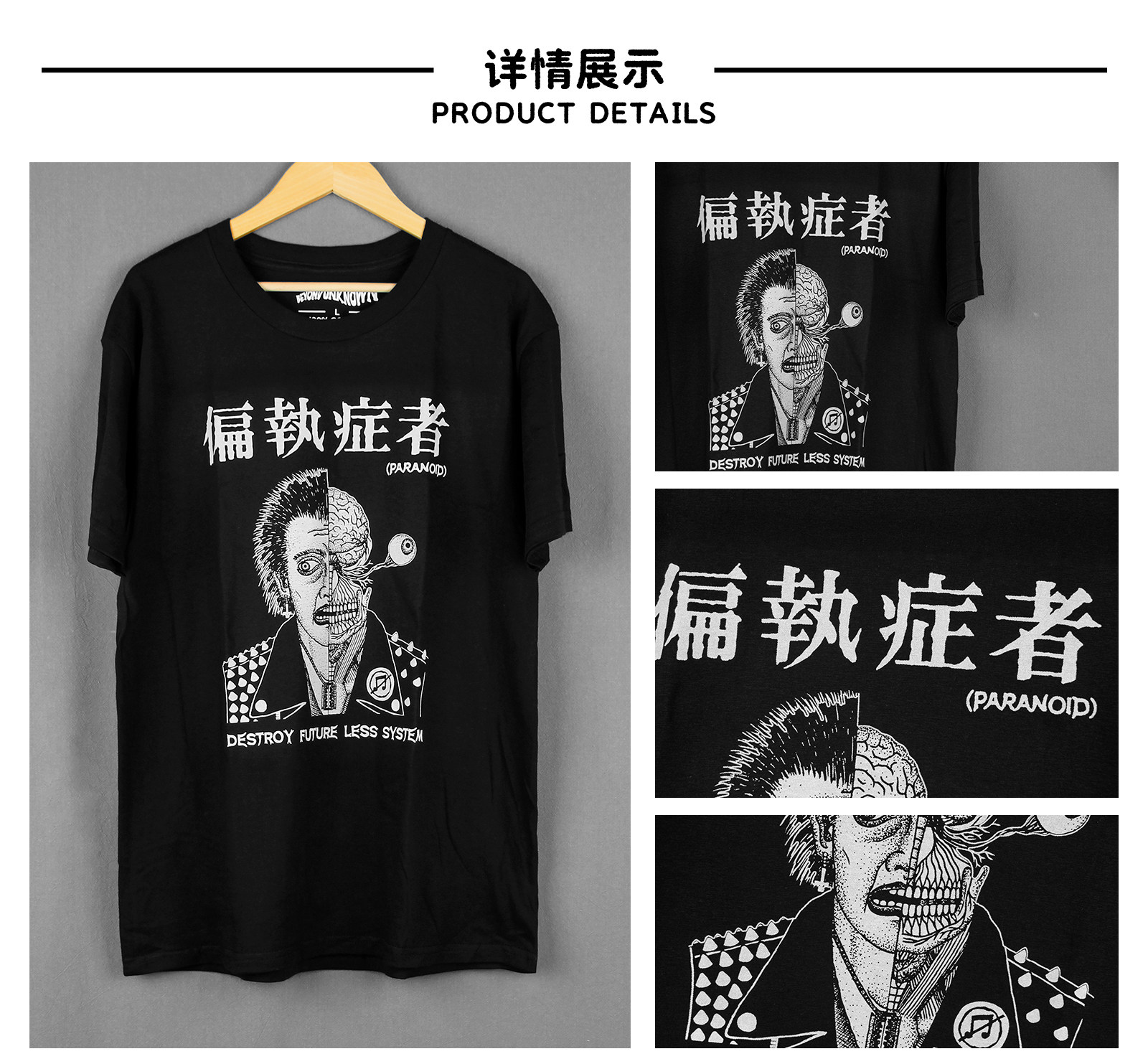 偏執症者Paranoid硬核龐克樂隊短袖黑白純棉小衆正肩印花男T恤