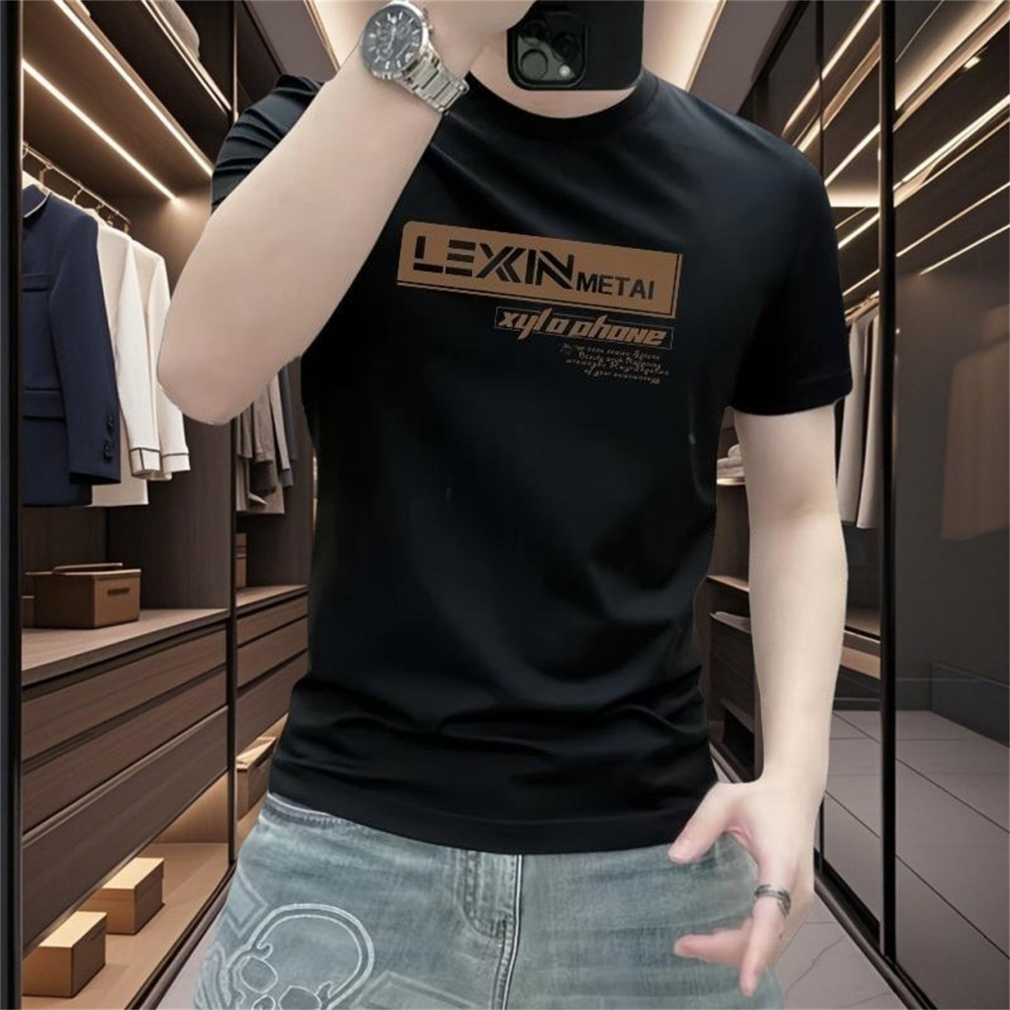 美式復古字母印花短袖男t恤夏季ins潮牌輕奢半袖痞帥修身純棉上衣