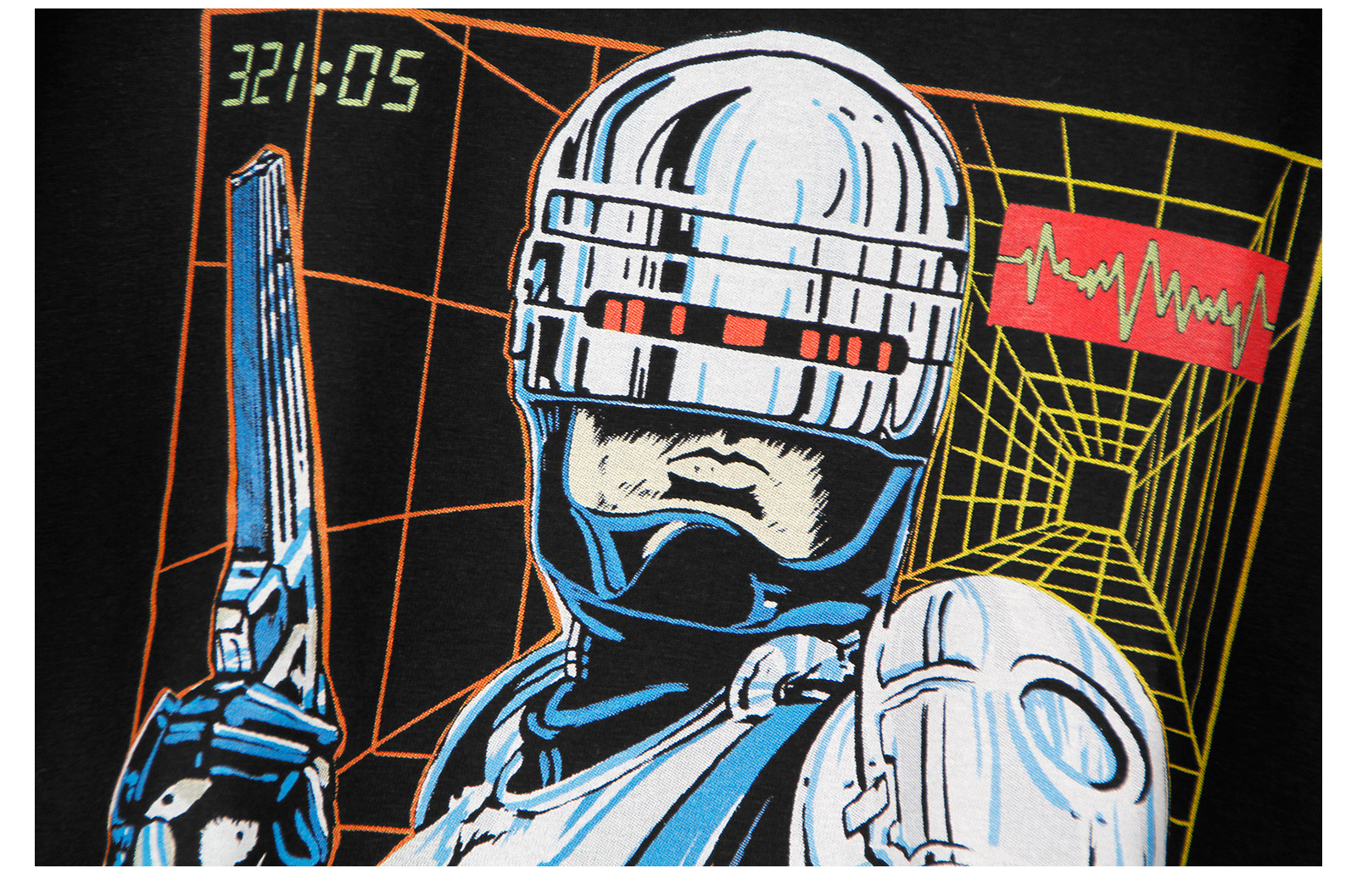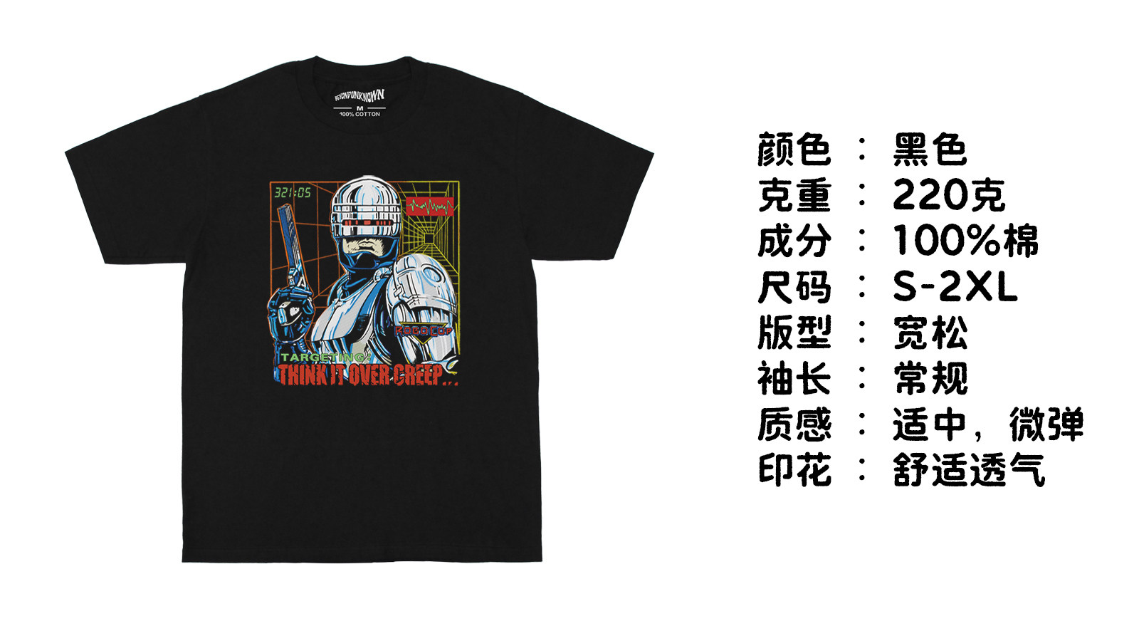 機械戰警機器戰警鐵甲威龍墨菲終結者短袖純棉卡通復古印花男T恤