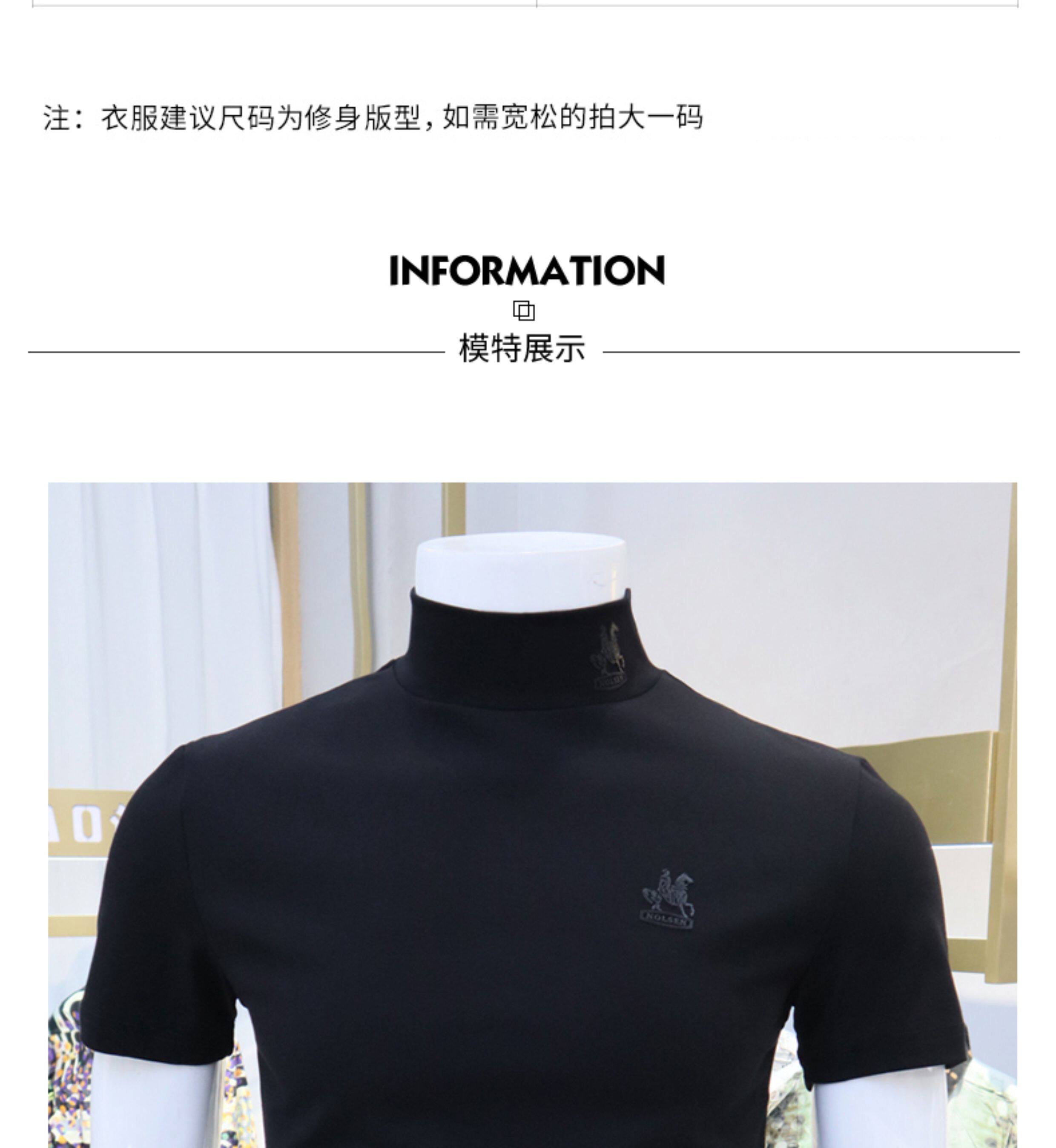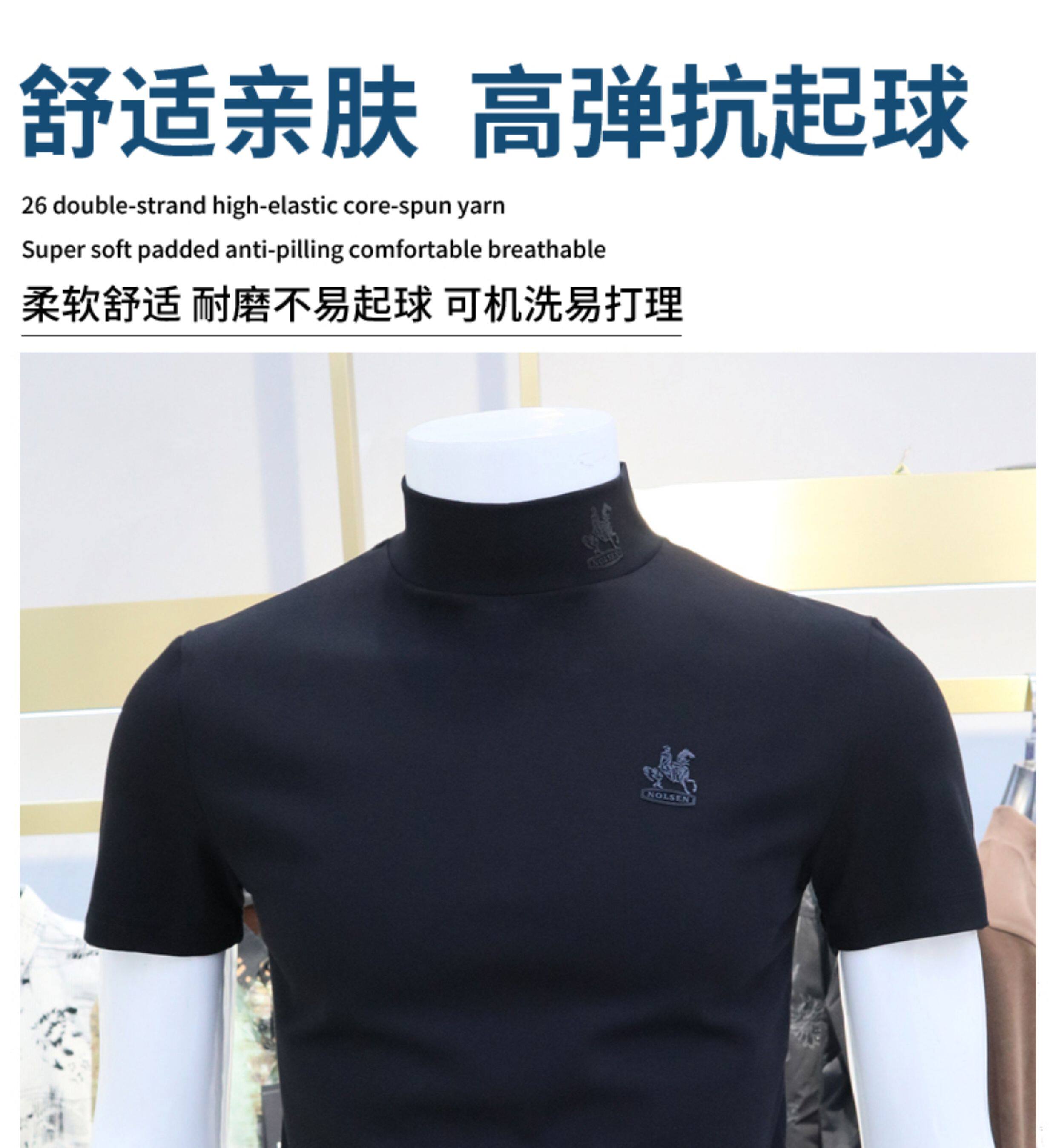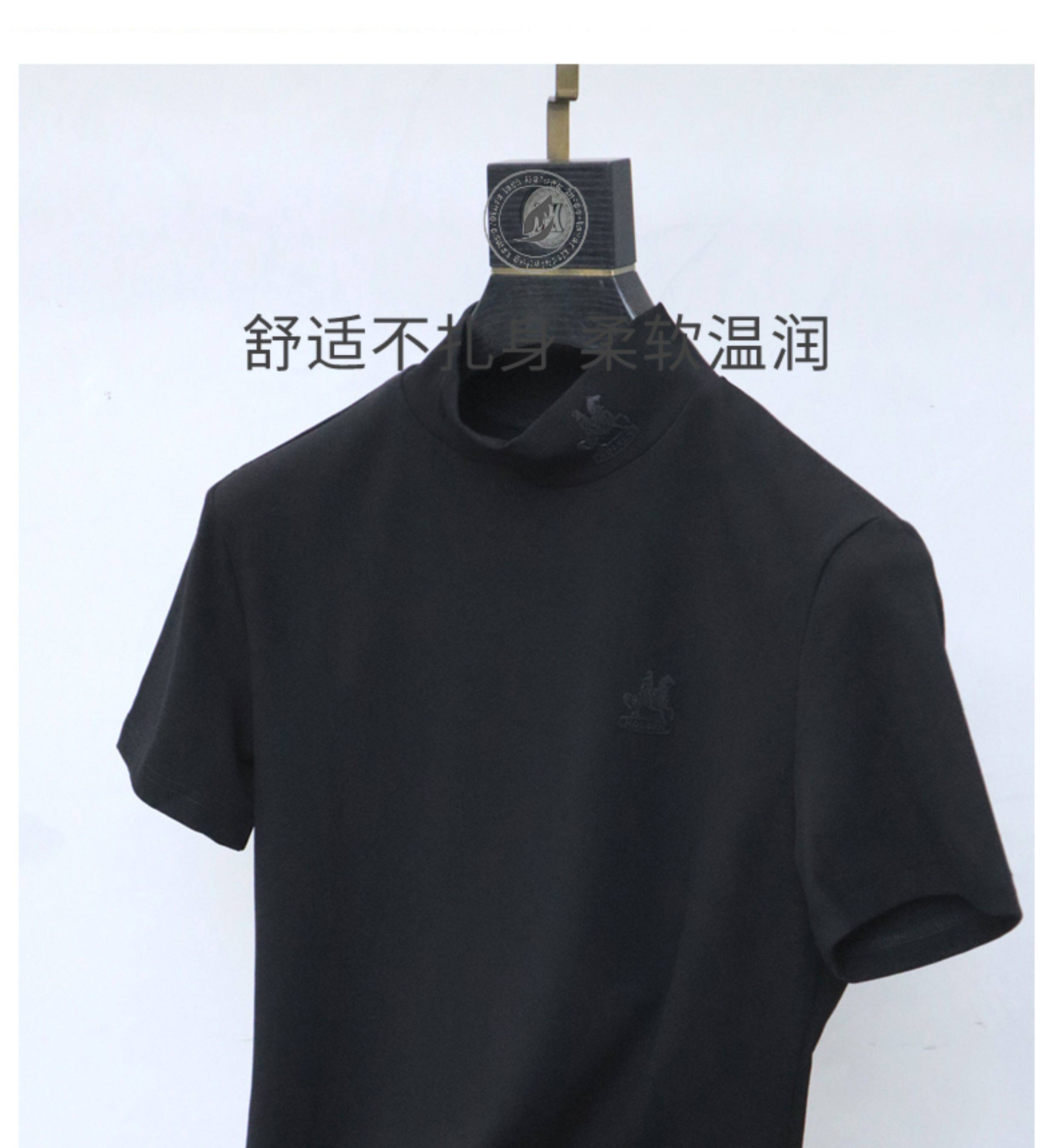 2026夏季新款重磅半高領短袖男t恤上衣韓版修身黑色中領半袖潮牌