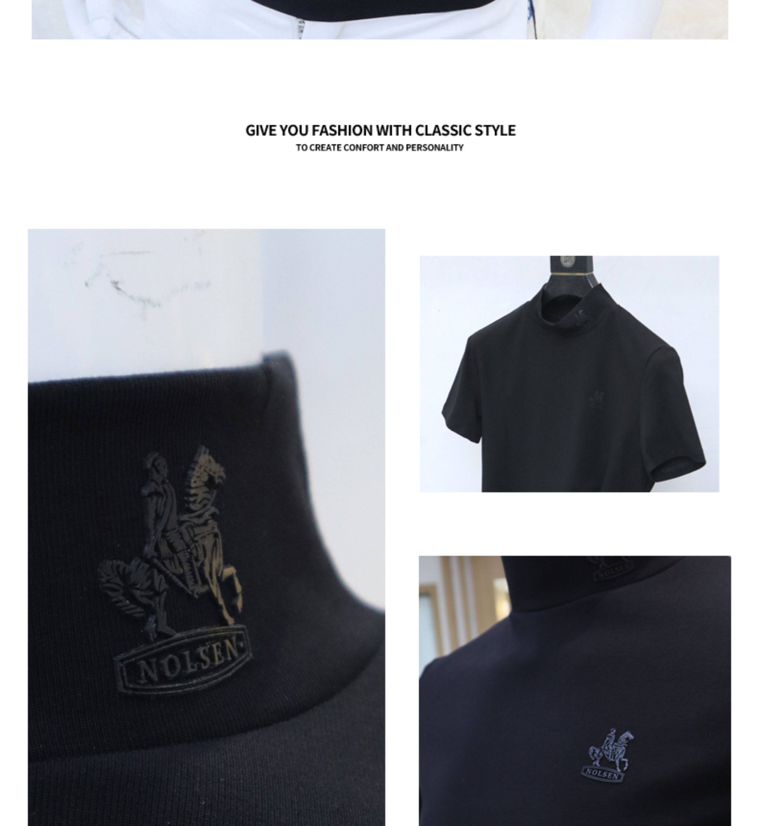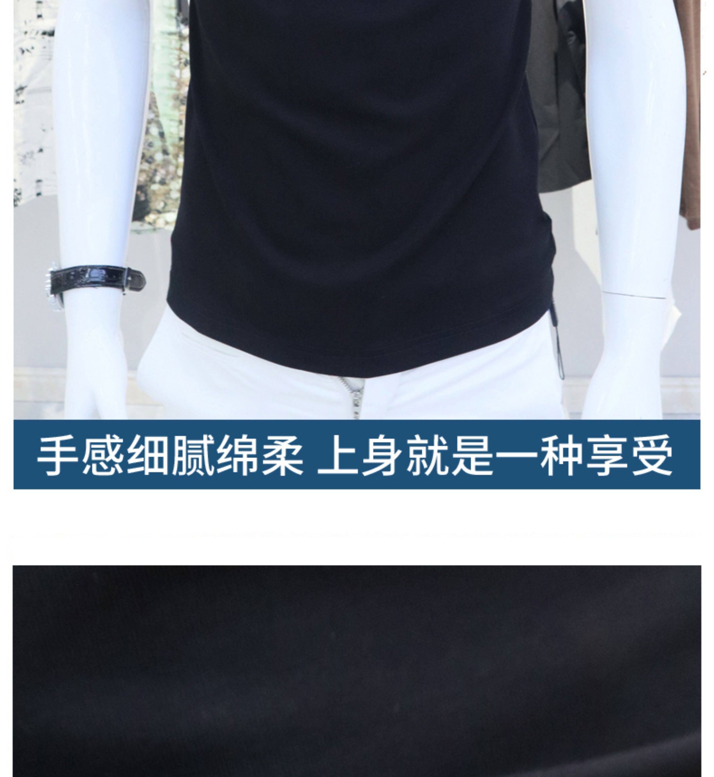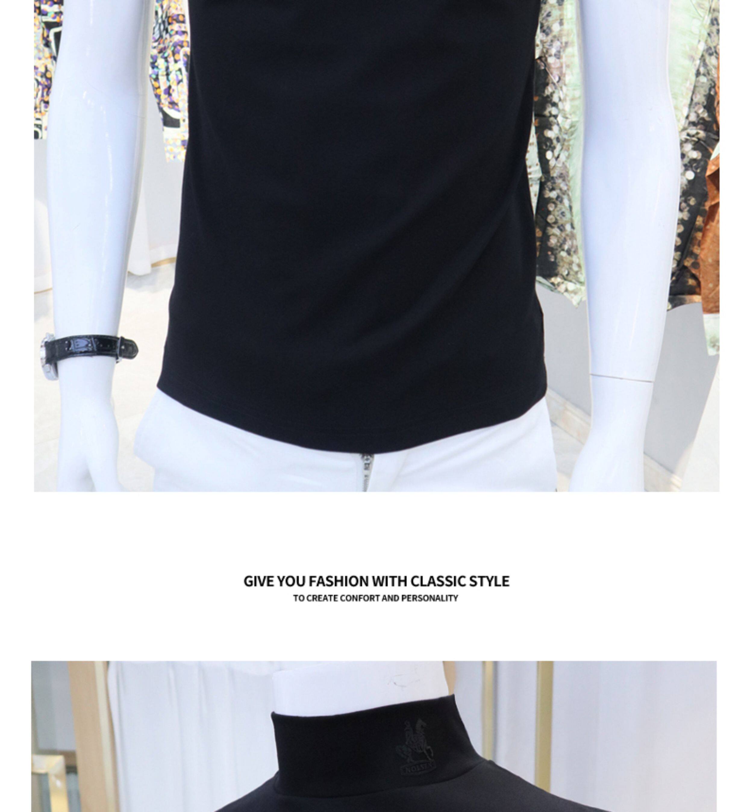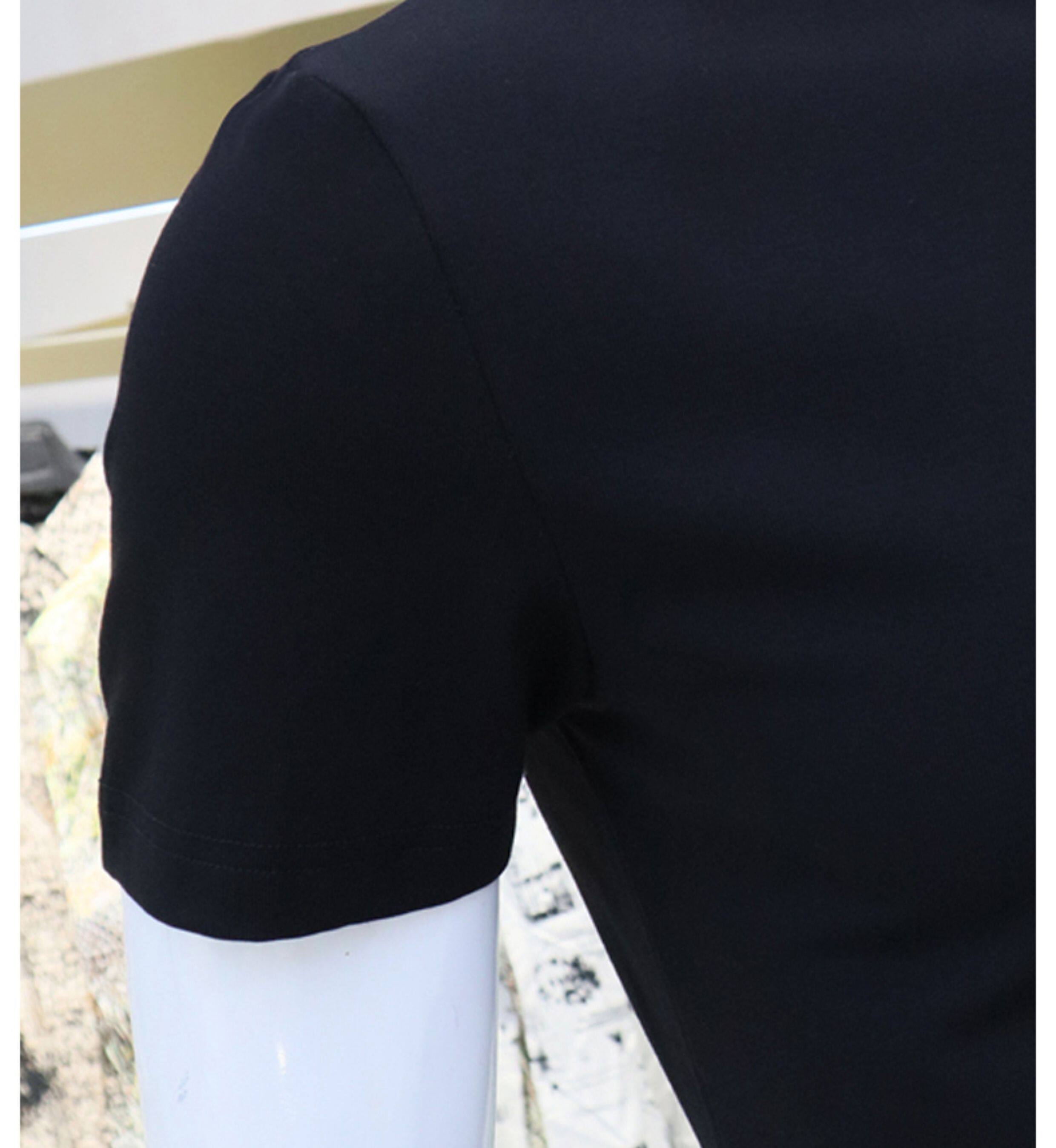 2026夏季新款重磅半高領短袖男t恤上衣韓版修身黑色中領半袖潮牌