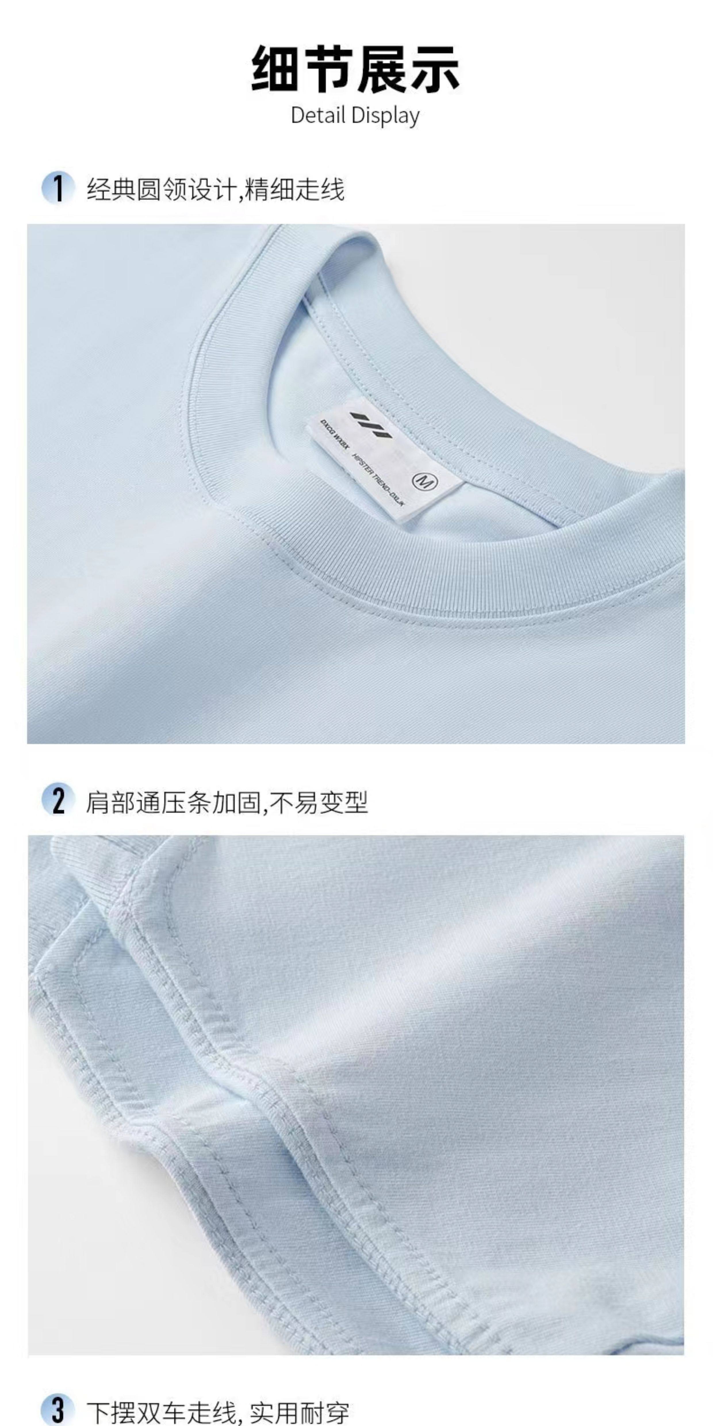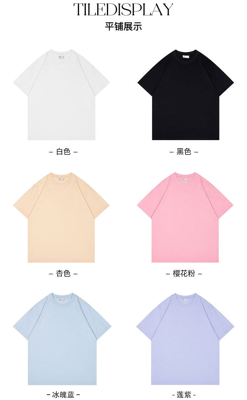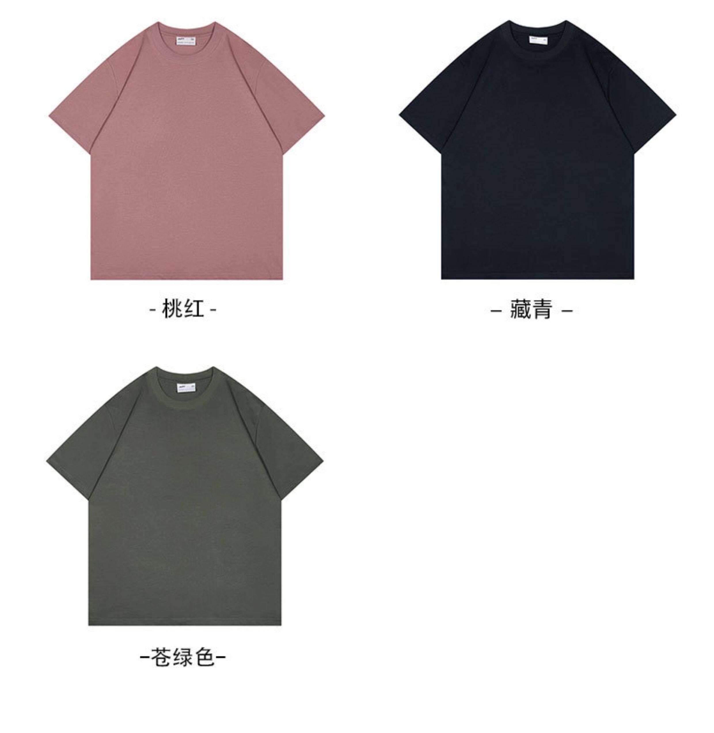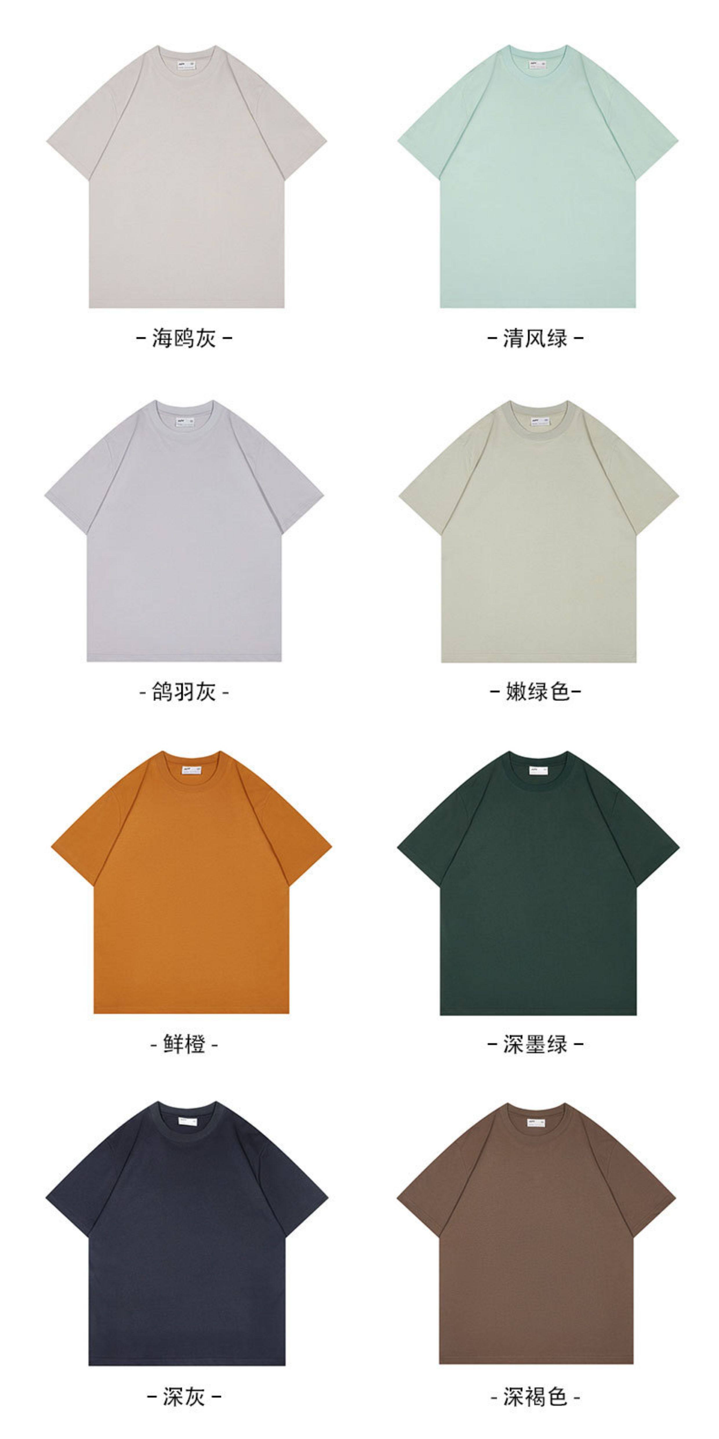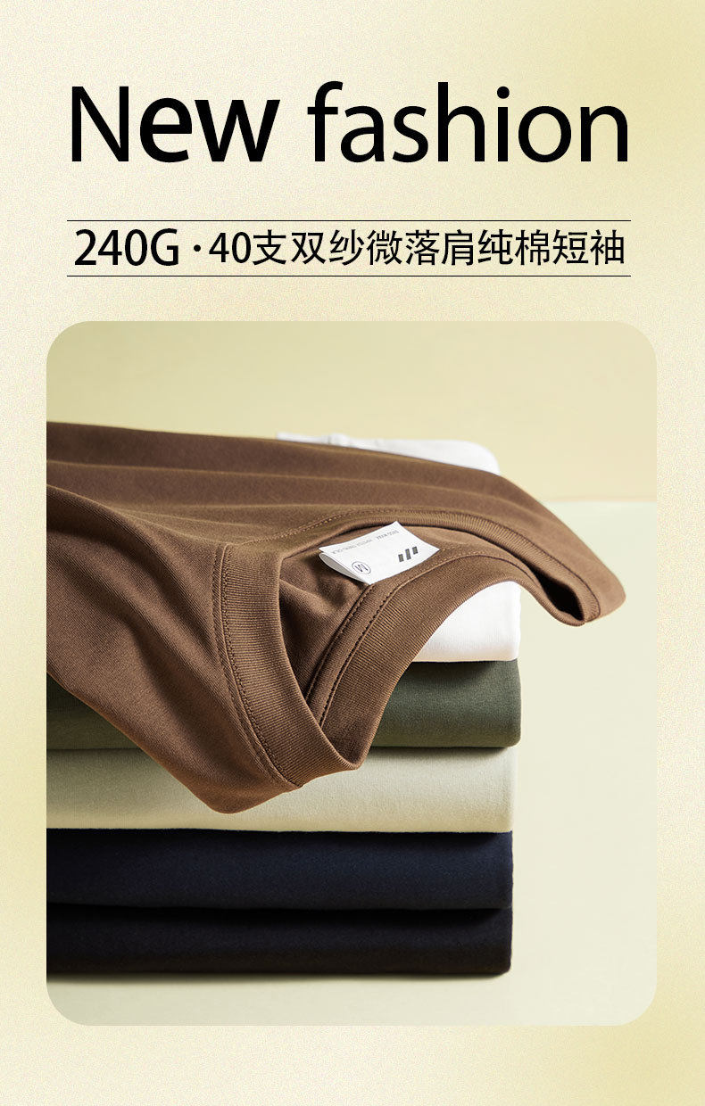 240克重磅40支精梳棉純棉雙紗短袖男T恤寬松純色落肩圓領情侶款