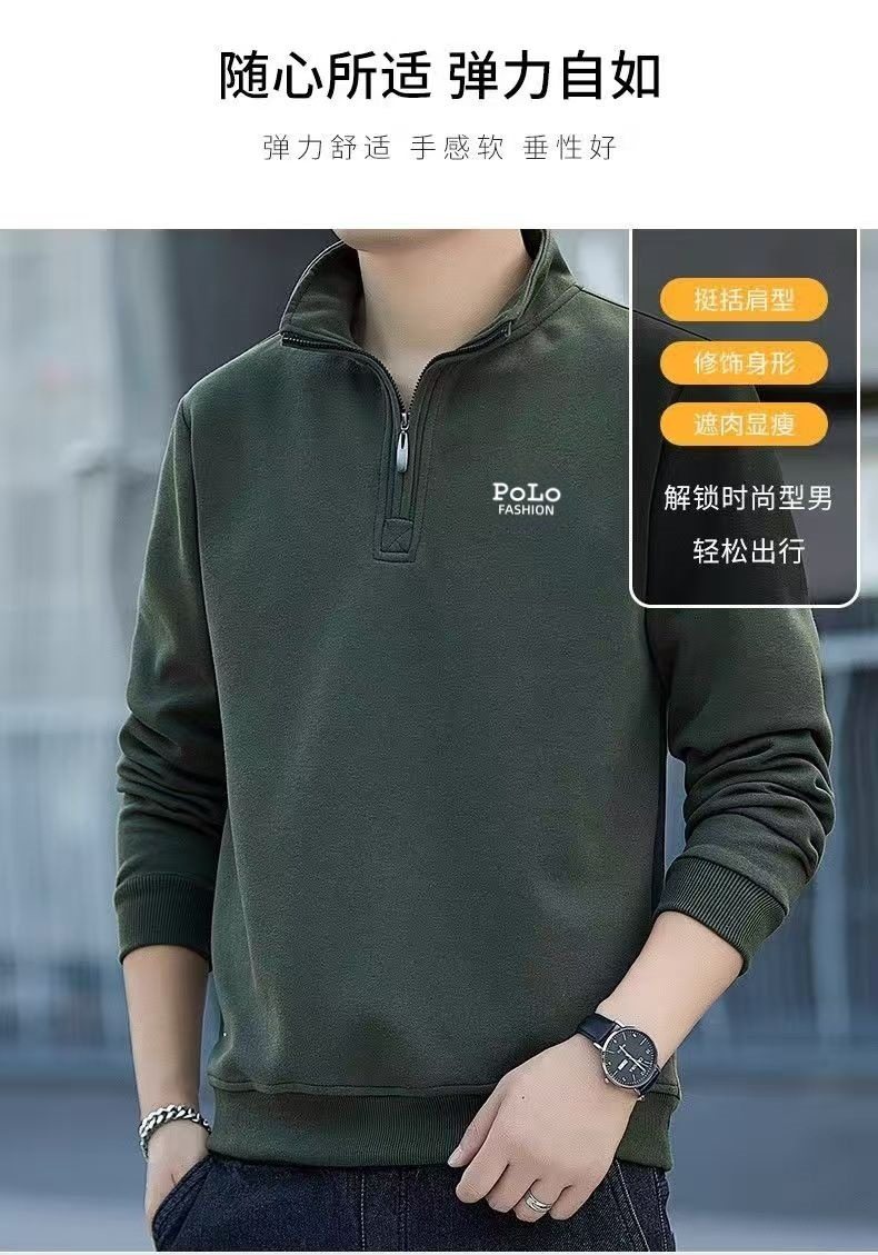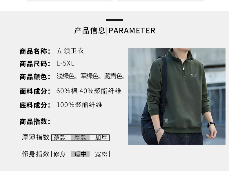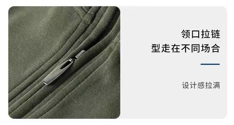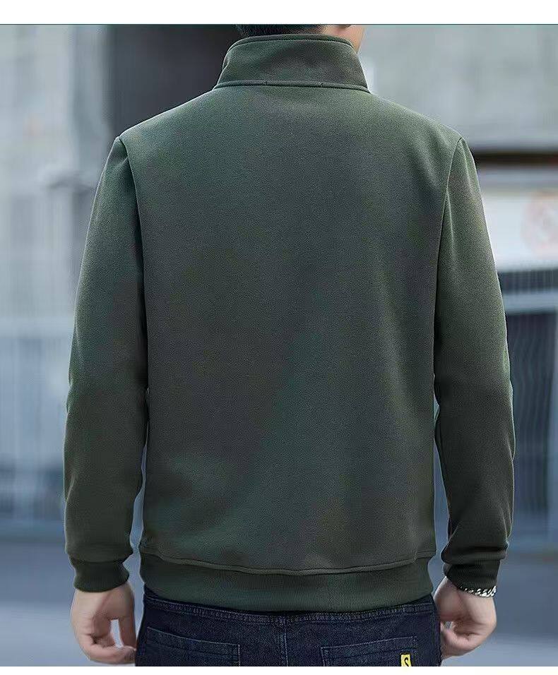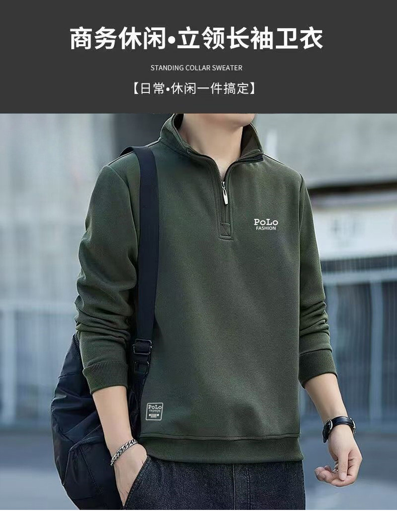 衛衣男款半拉鍊立領秋季中老年 男士長袖t恤軍綠色運動上衣秋冬季
