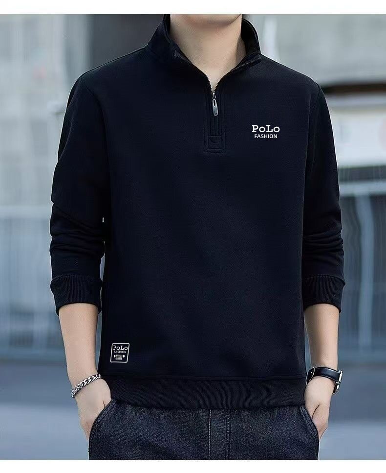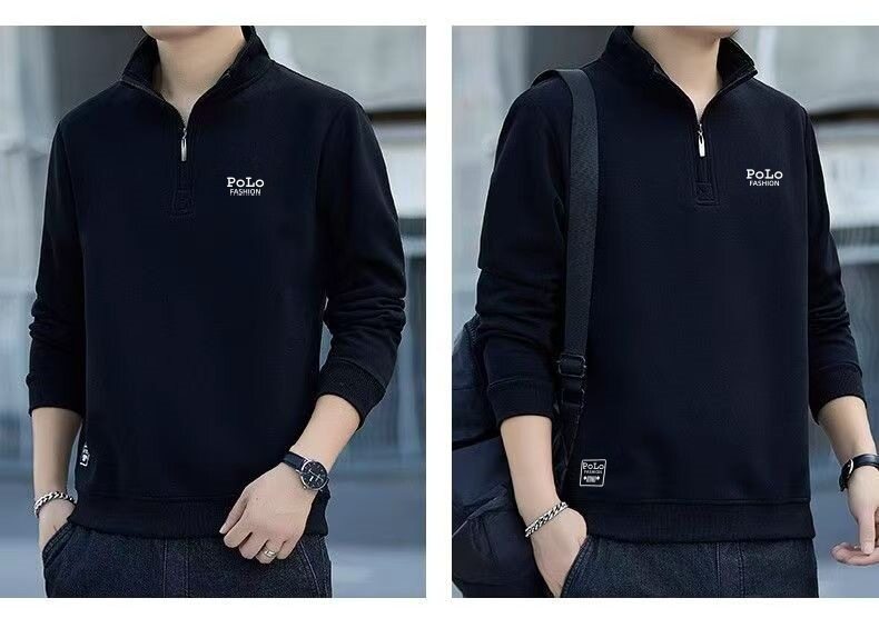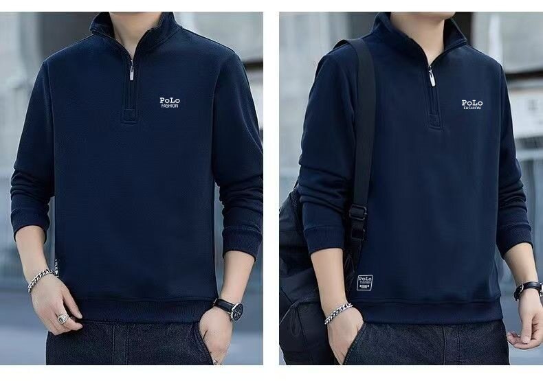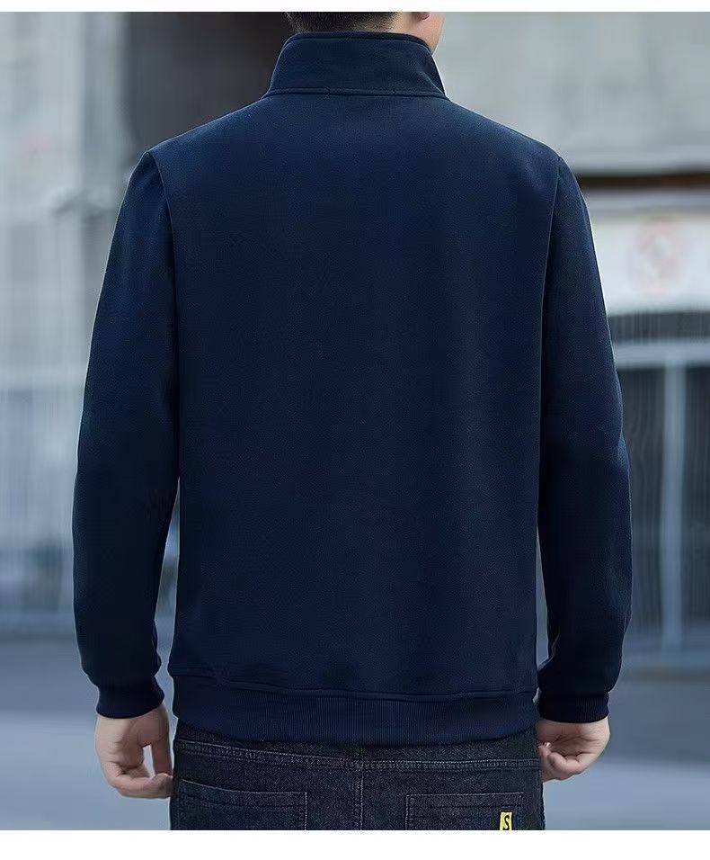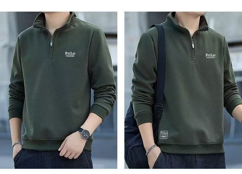 衛衣男款半拉鍊立領秋季中老年 男士長袖t恤軍綠色運動上衣秋冬季
