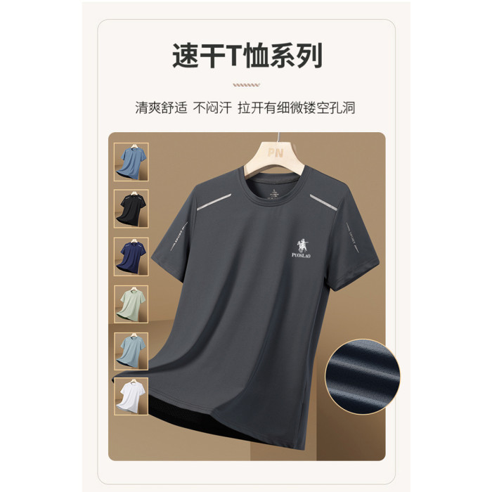 保羅冰絲短袖男T恤夏季休閒運動透氣速乾衣圓領男裝跑步健身上衣