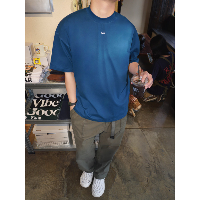 Aam official 真小領口!250g索羅娜刺綉小短袖夏季簡約男T恤