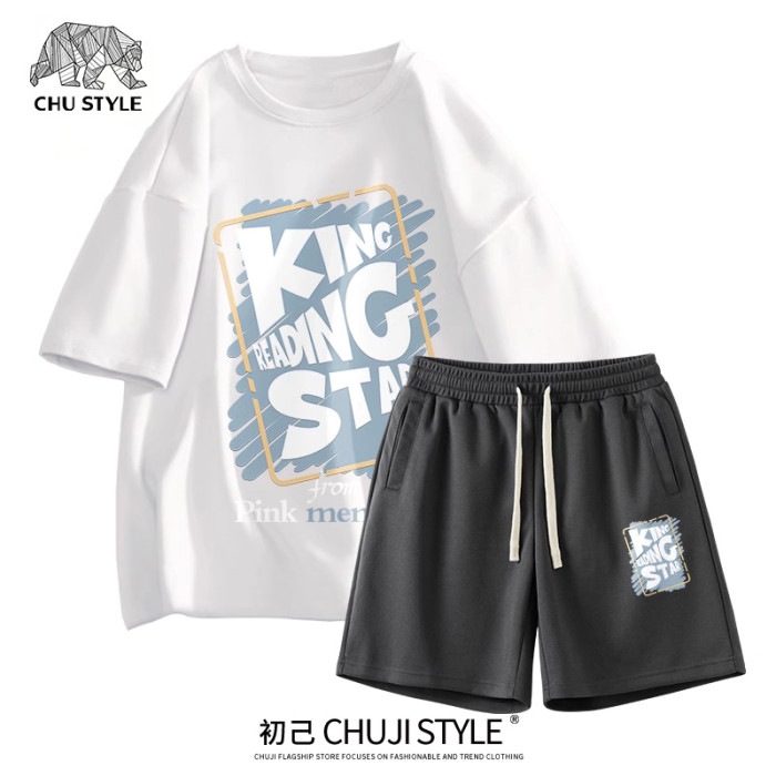 短袖男t恤薄款新款網紅潮流簡約休閒半袖男士潮牌夏季寬松五分袖