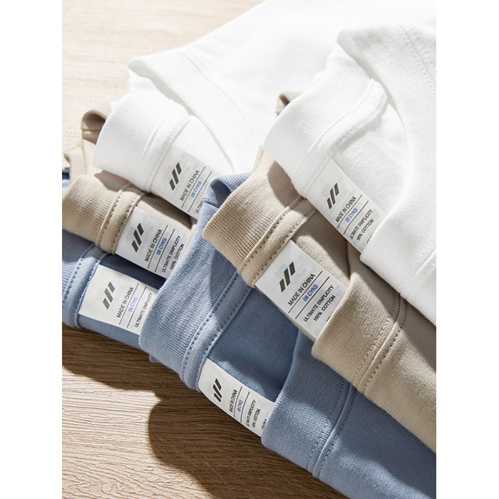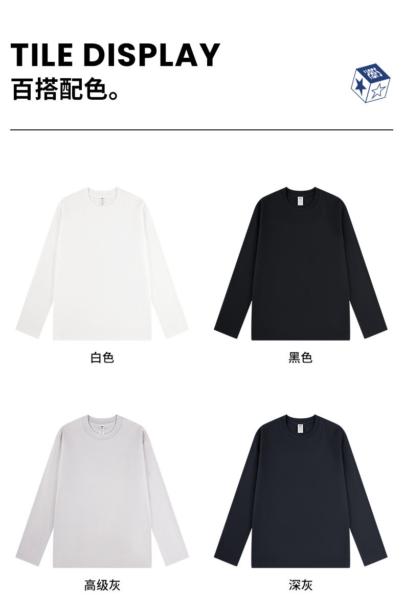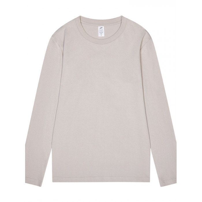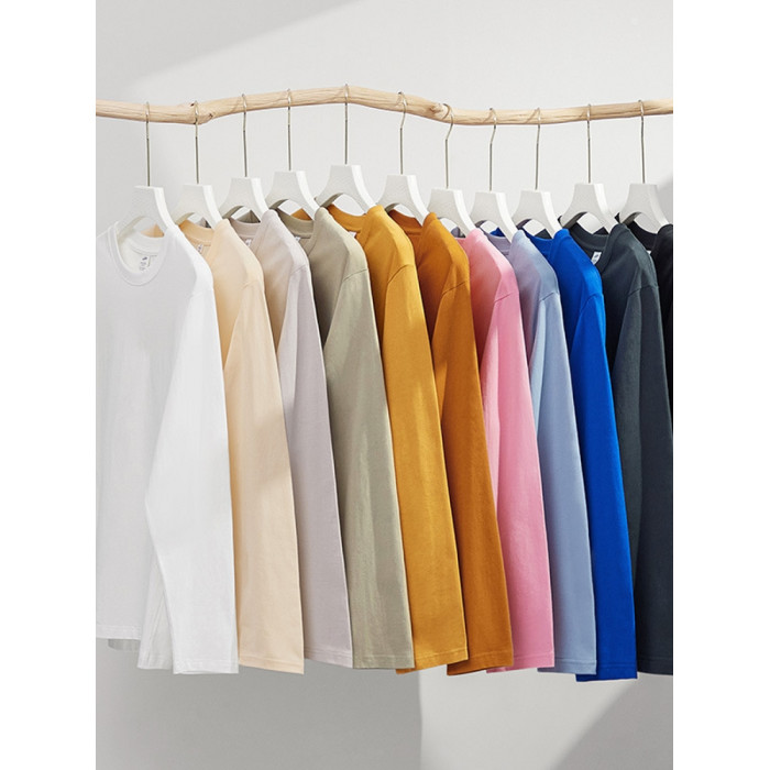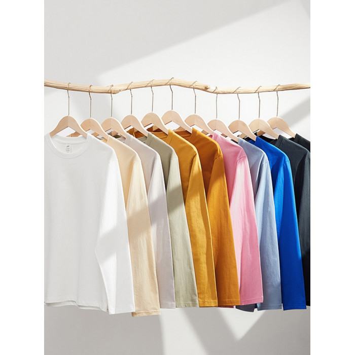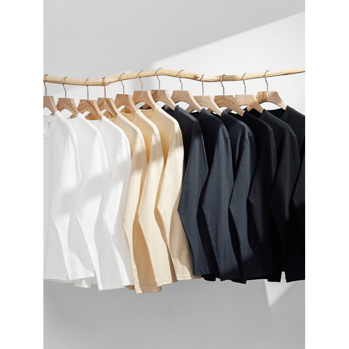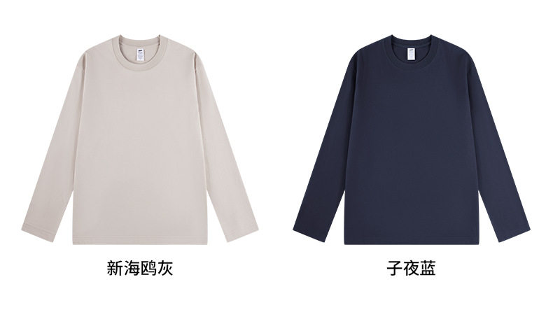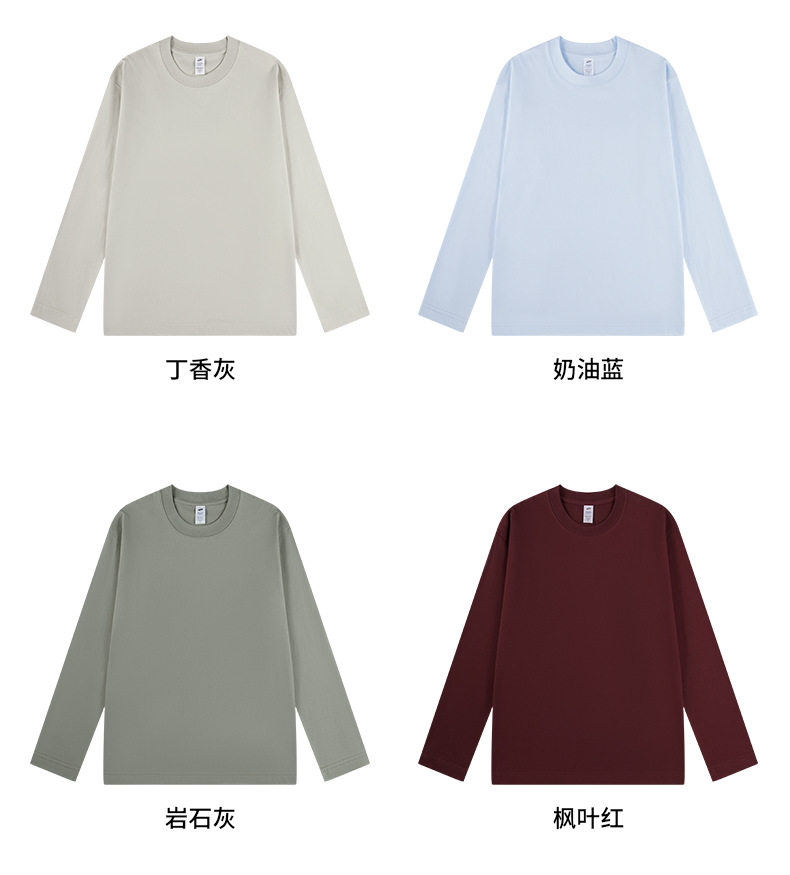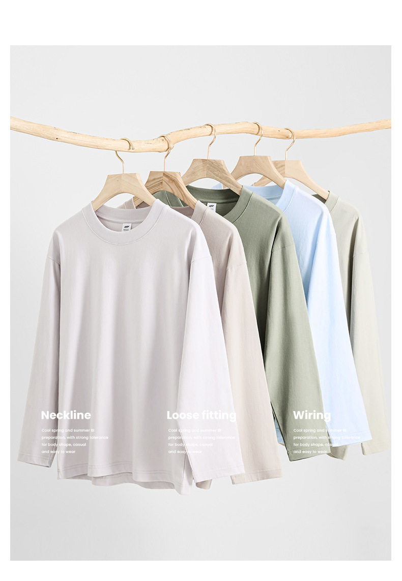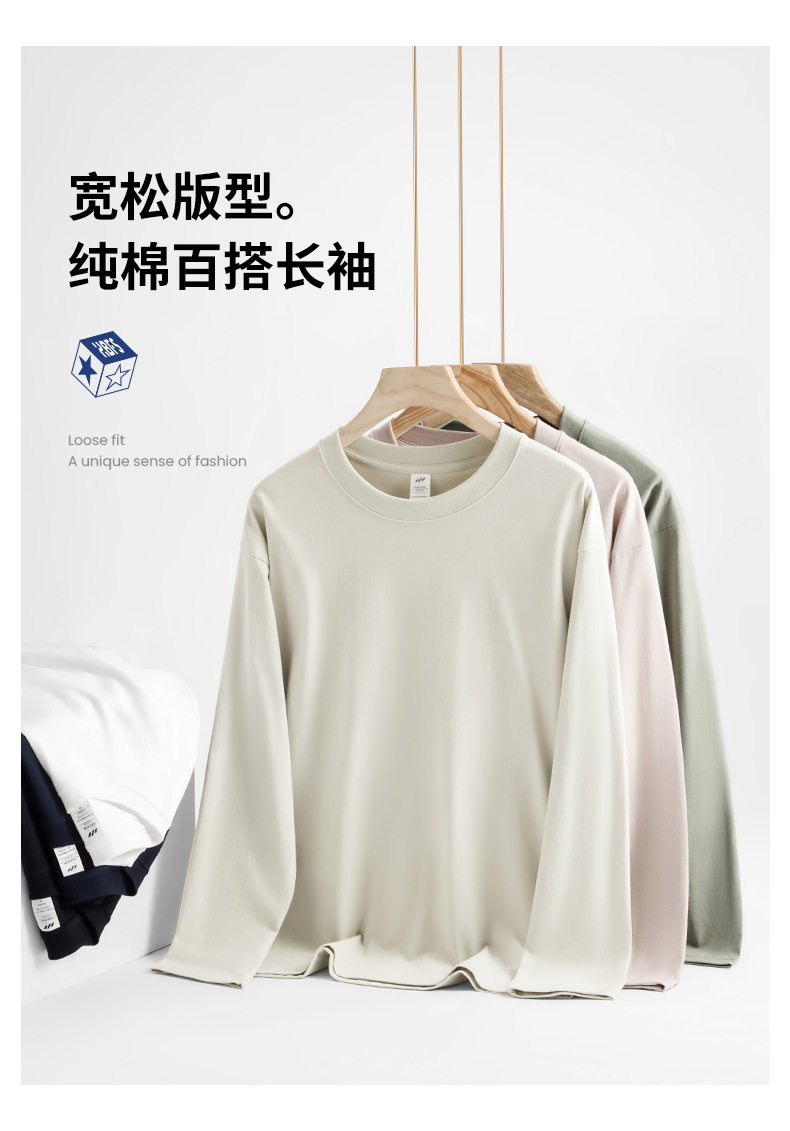 進口230克秋季新疆精梳全棉重磅圓領純色長袖男t恤寬鬆打底衫一