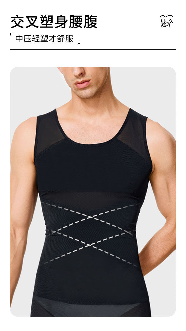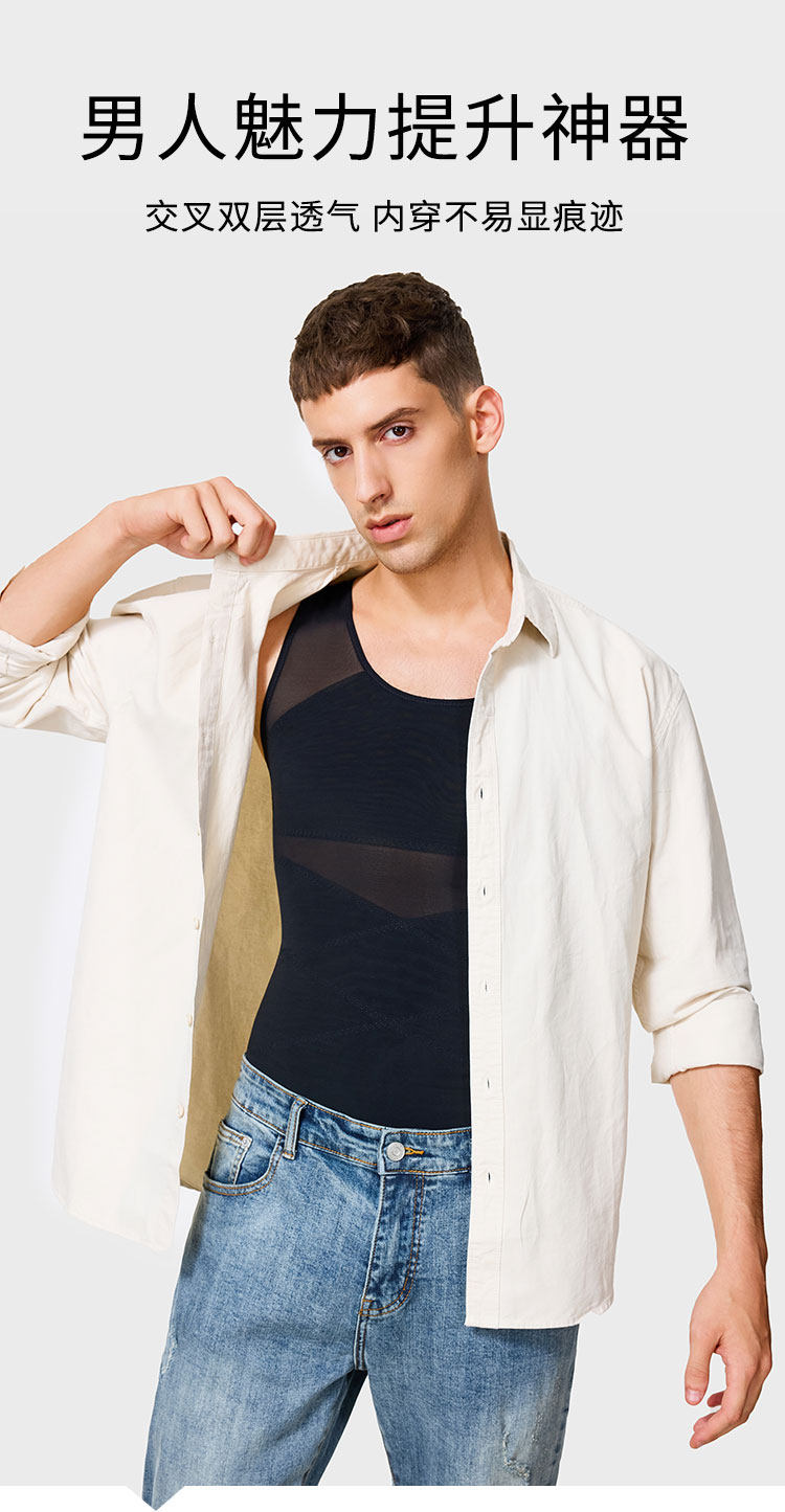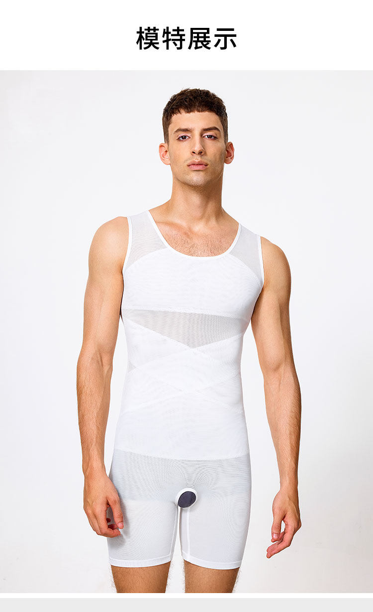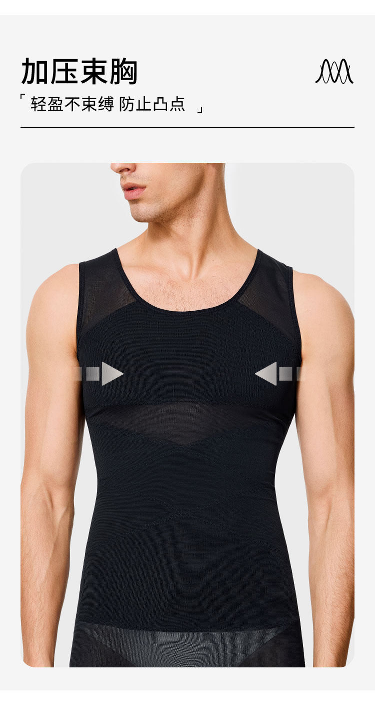 TOAO網紗連體塑身衣男透氣西裝職場開檔收腹無痕緊身內衣打底背心