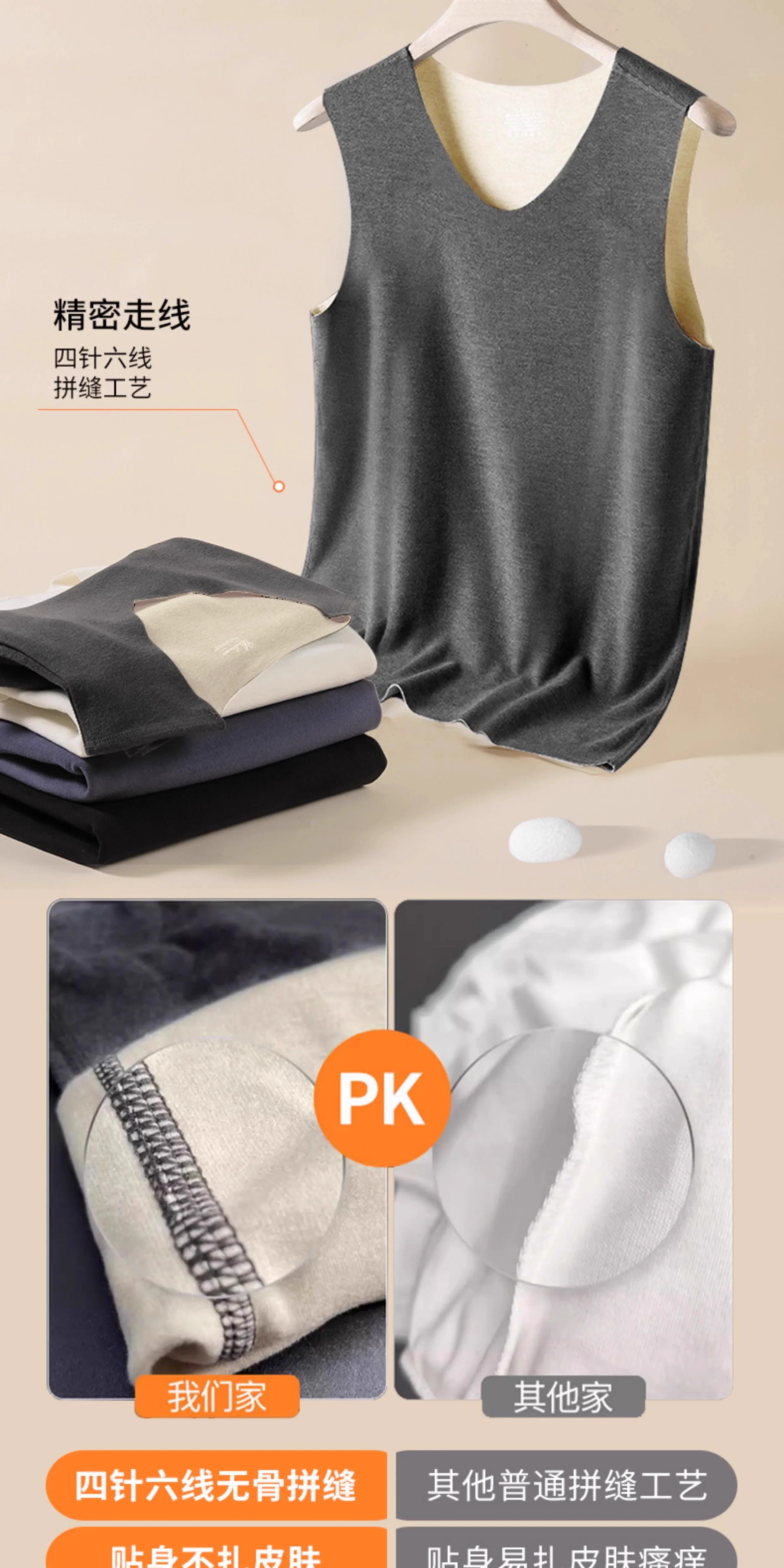 桑蠶絲德絨無痕背心男秋冬季加厚磨毛坎肩上衣男士保暖內衣打底衫