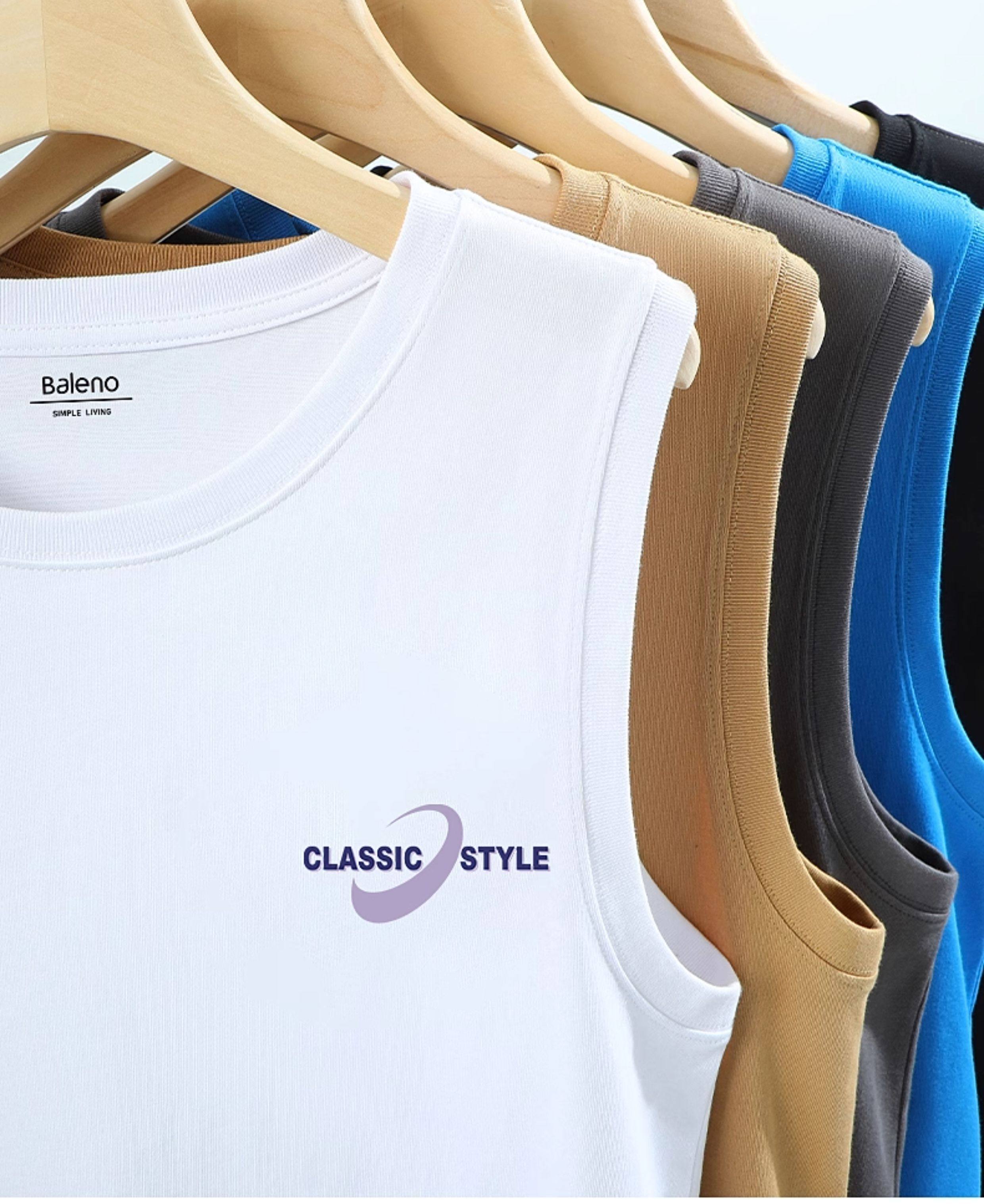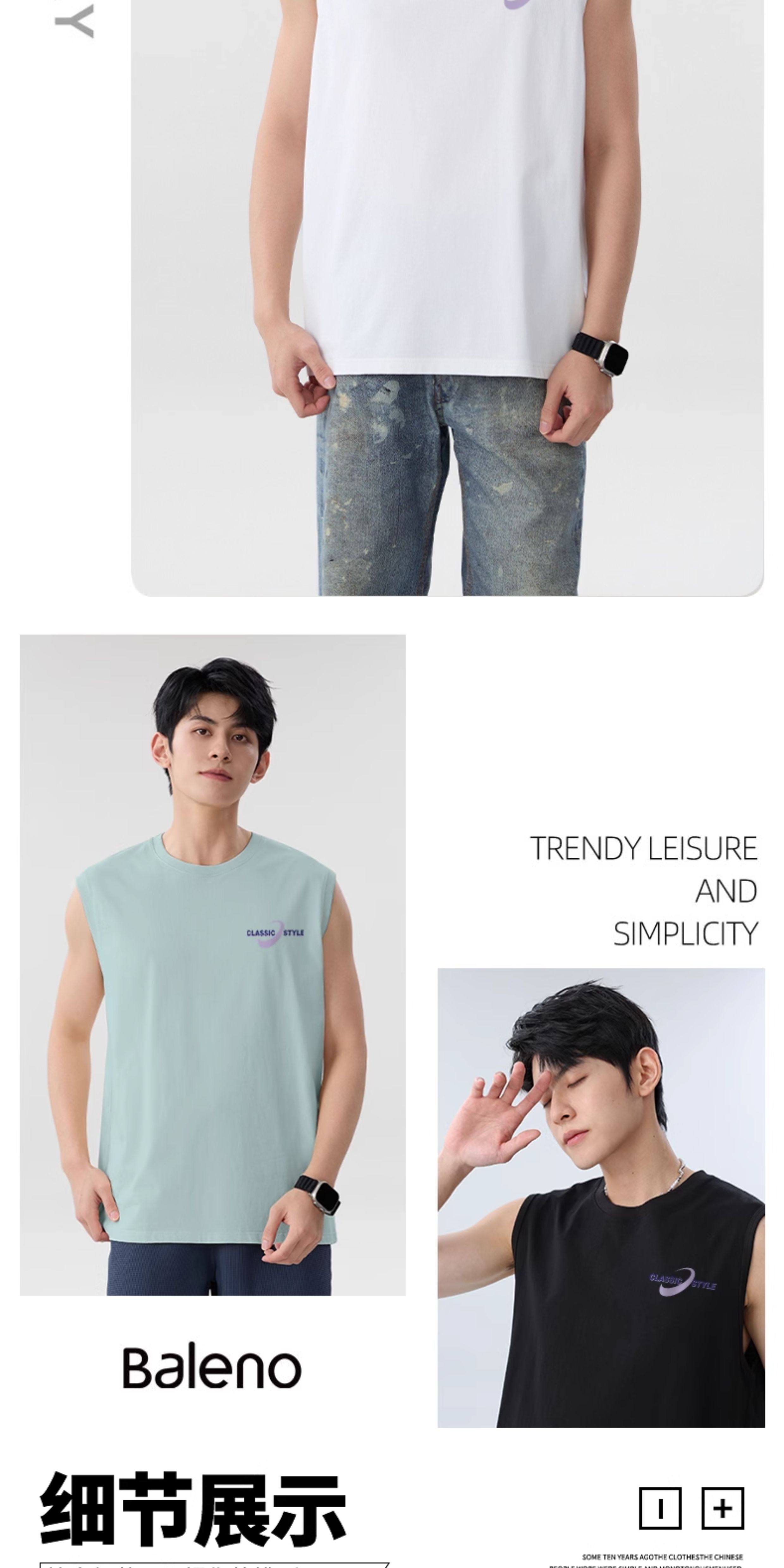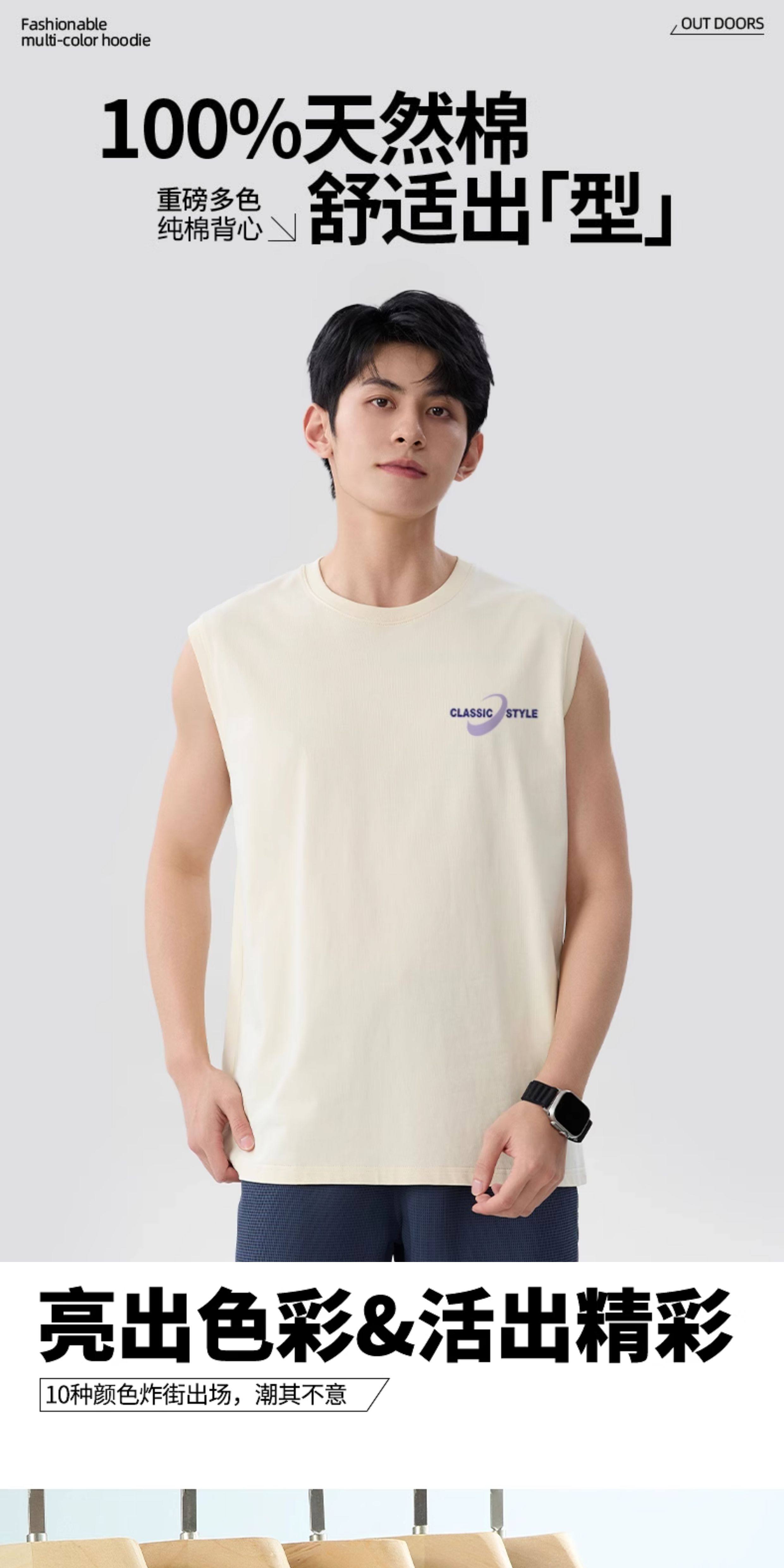 班尼路米色純棉無袖背心男夏季美式字母t恤寬鬆情侶運動坎肩上衣