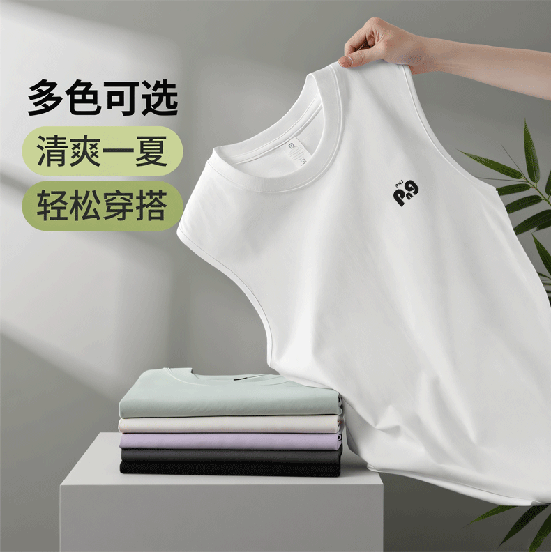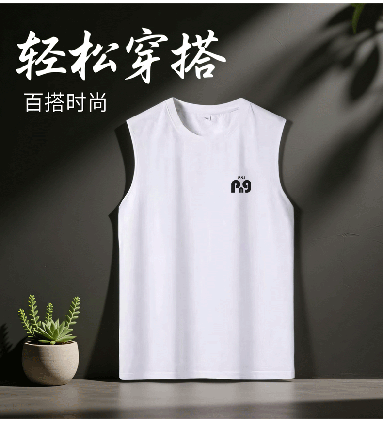 夏季潮牌純棉薄款無袖背心男士健身運動坎肩衣服打底男白色短袖T