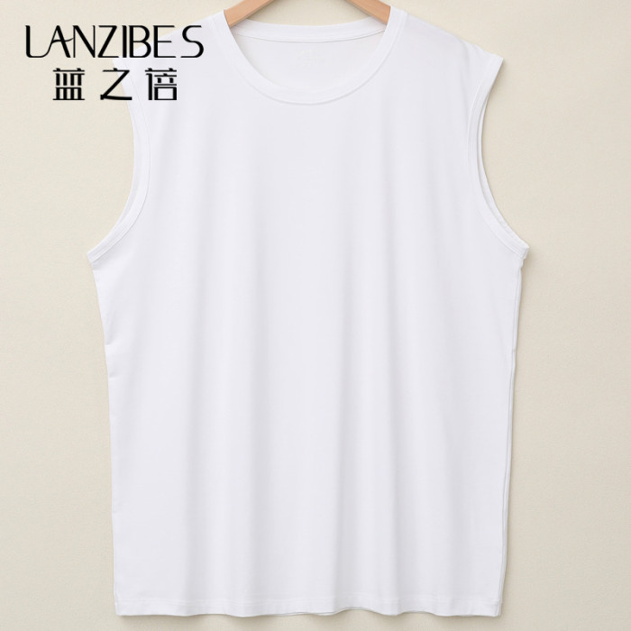 夏季男士竹纖維圓領寬鬆背心居家套頭無袖上衣簡約B9832