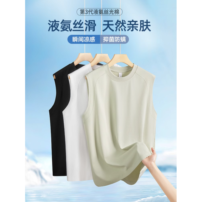 高級液氨絲光棉冰絲背心男士2026新款夏季運動無袖T恤男款寬坎肩