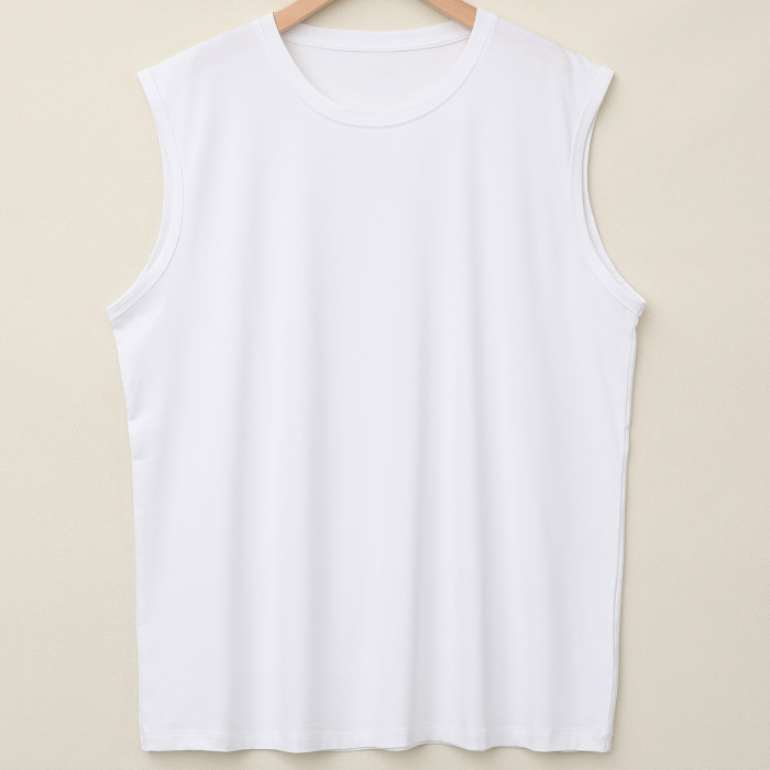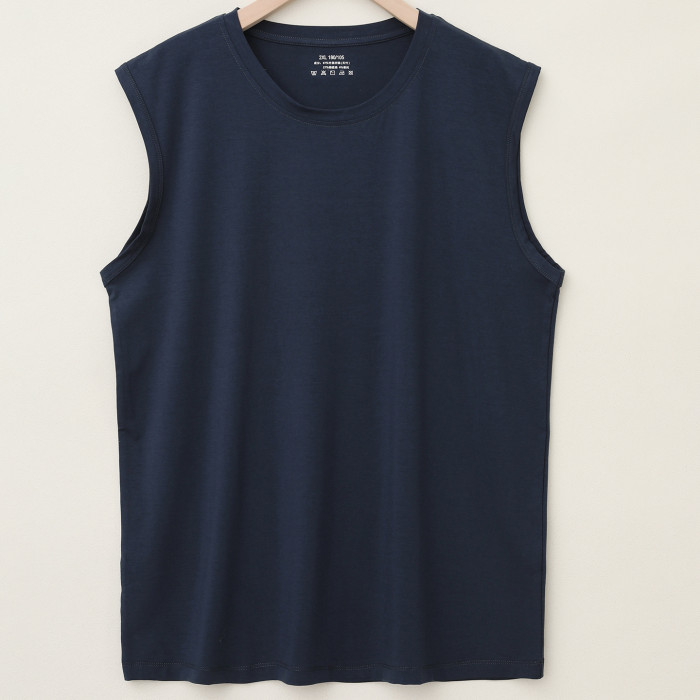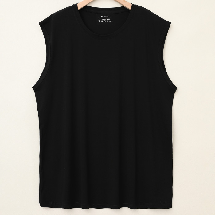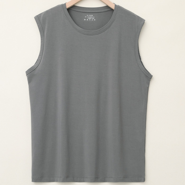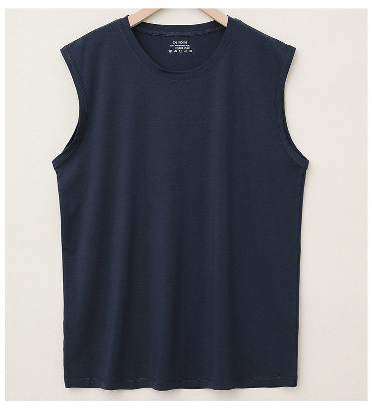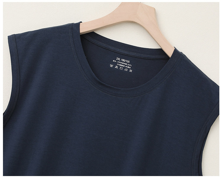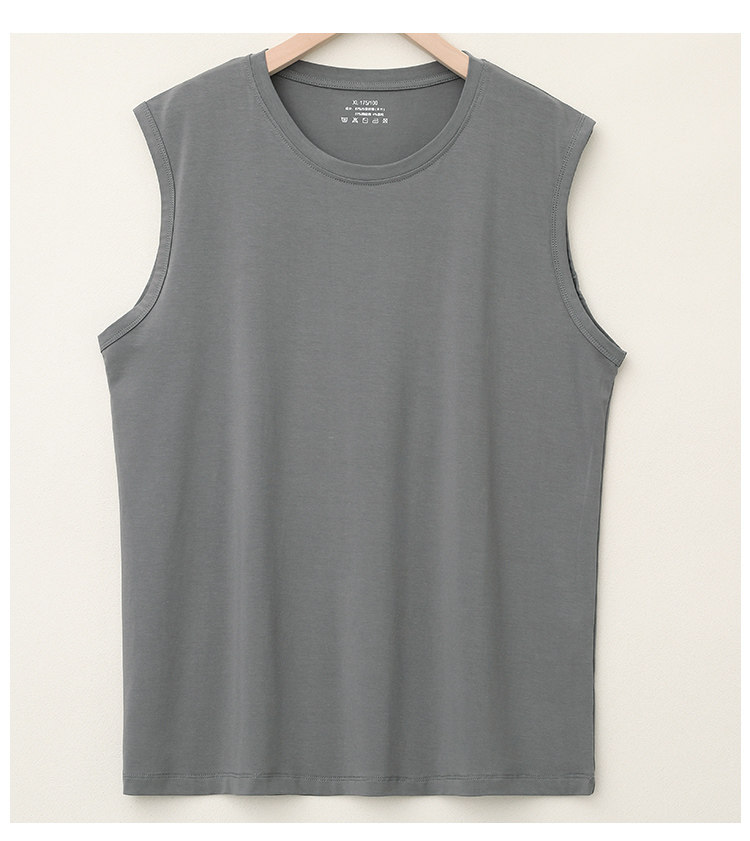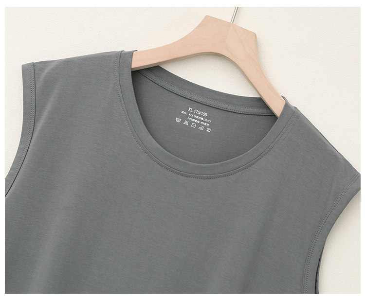 夏季男士竹纖維圓領寬松背心居家套頭無袖上衣簡約B9832
