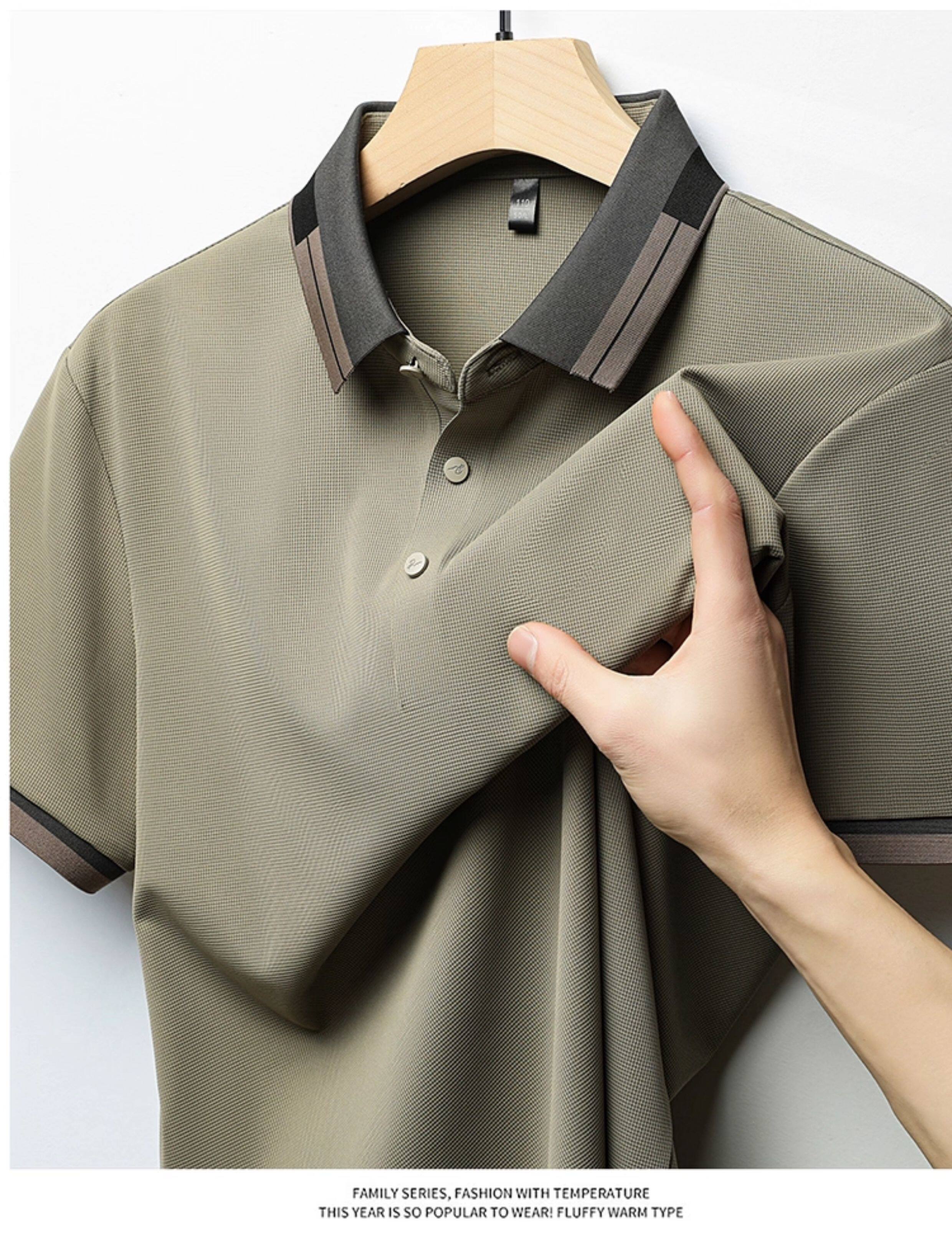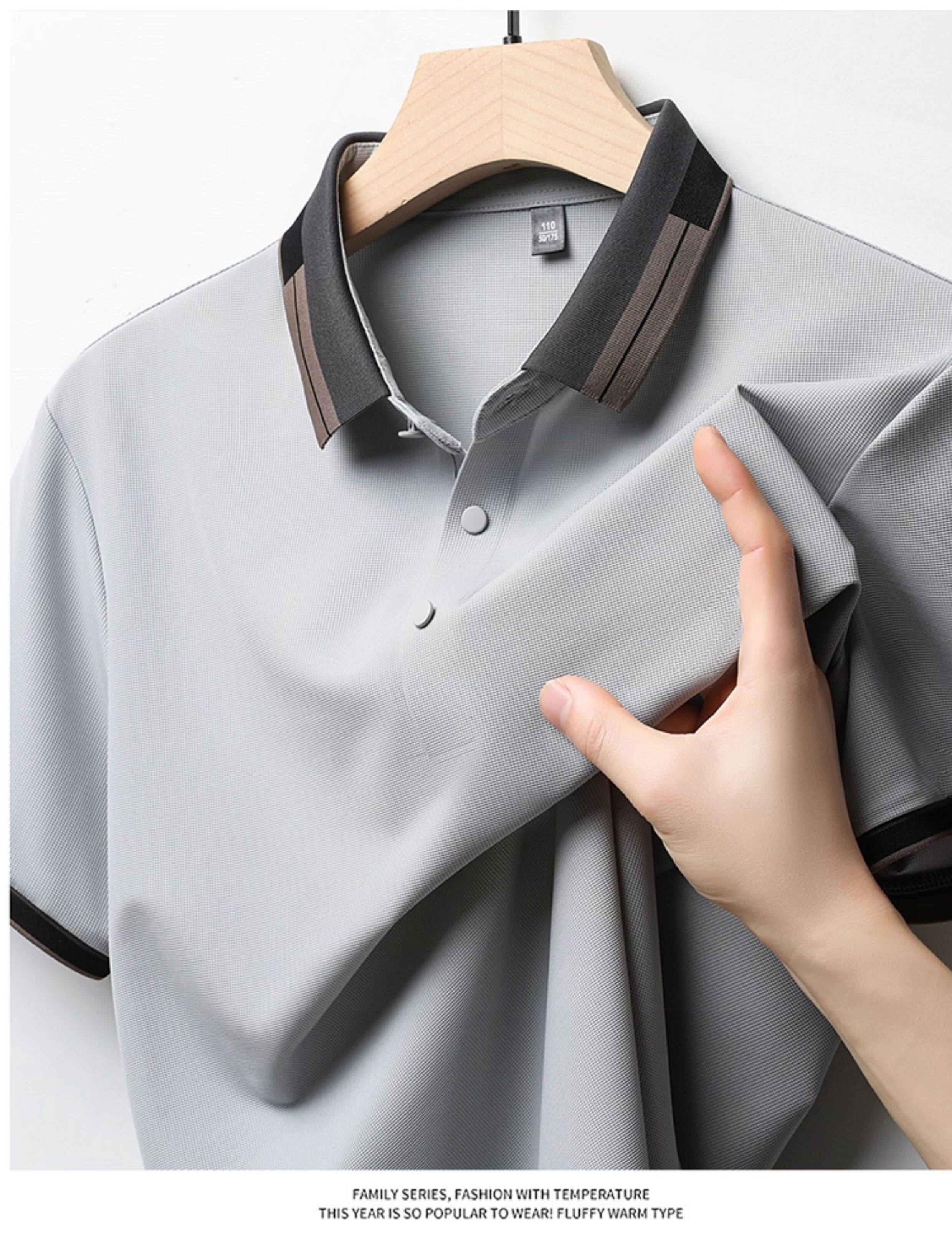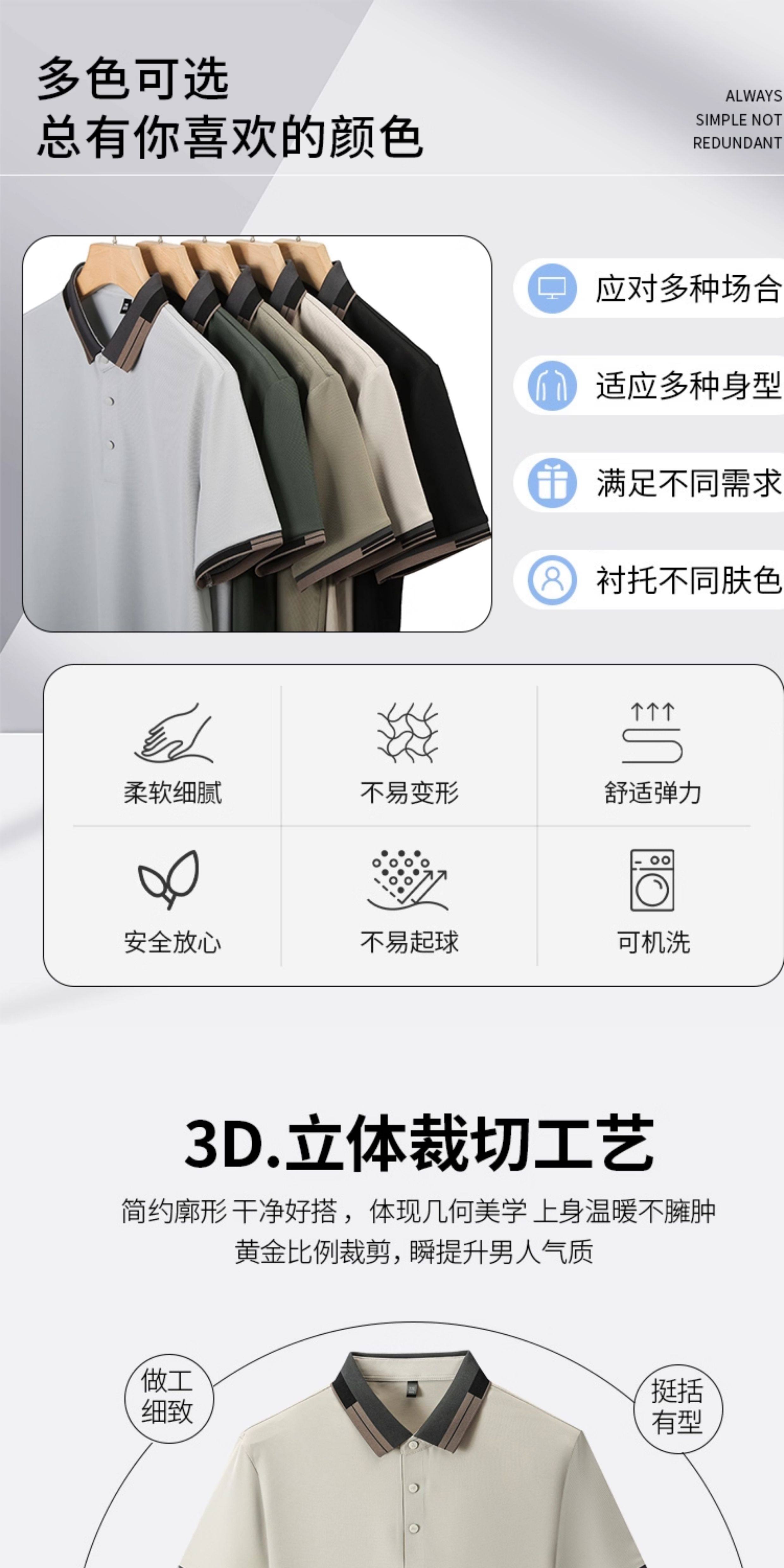 啄木鳥2026夏季新款男士t恤短袖polo衫薄款寬鬆冰絲爸爸裝上衣服C