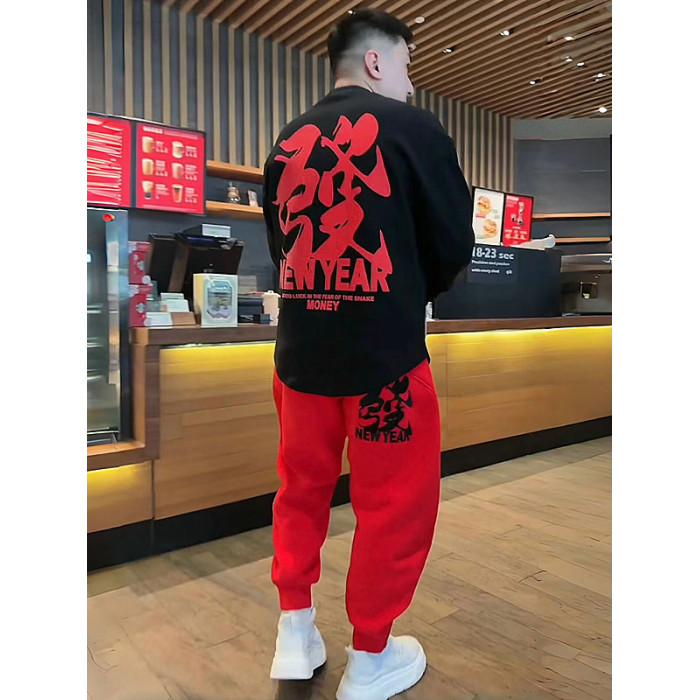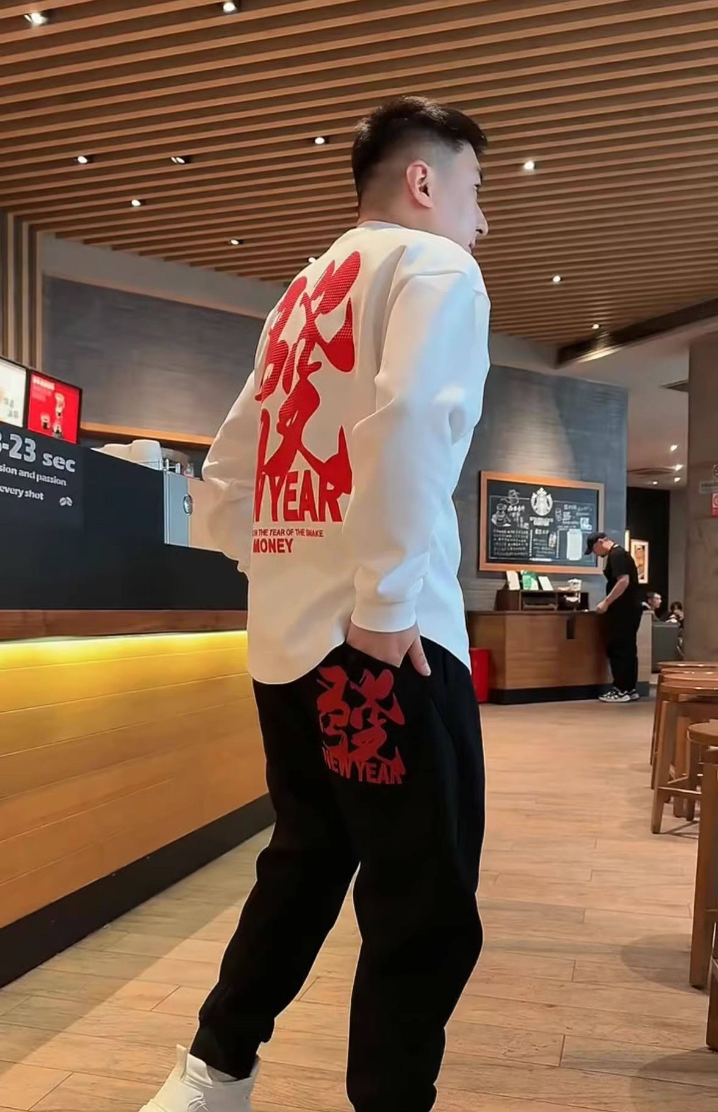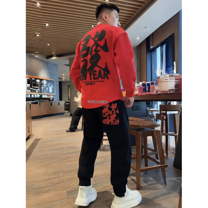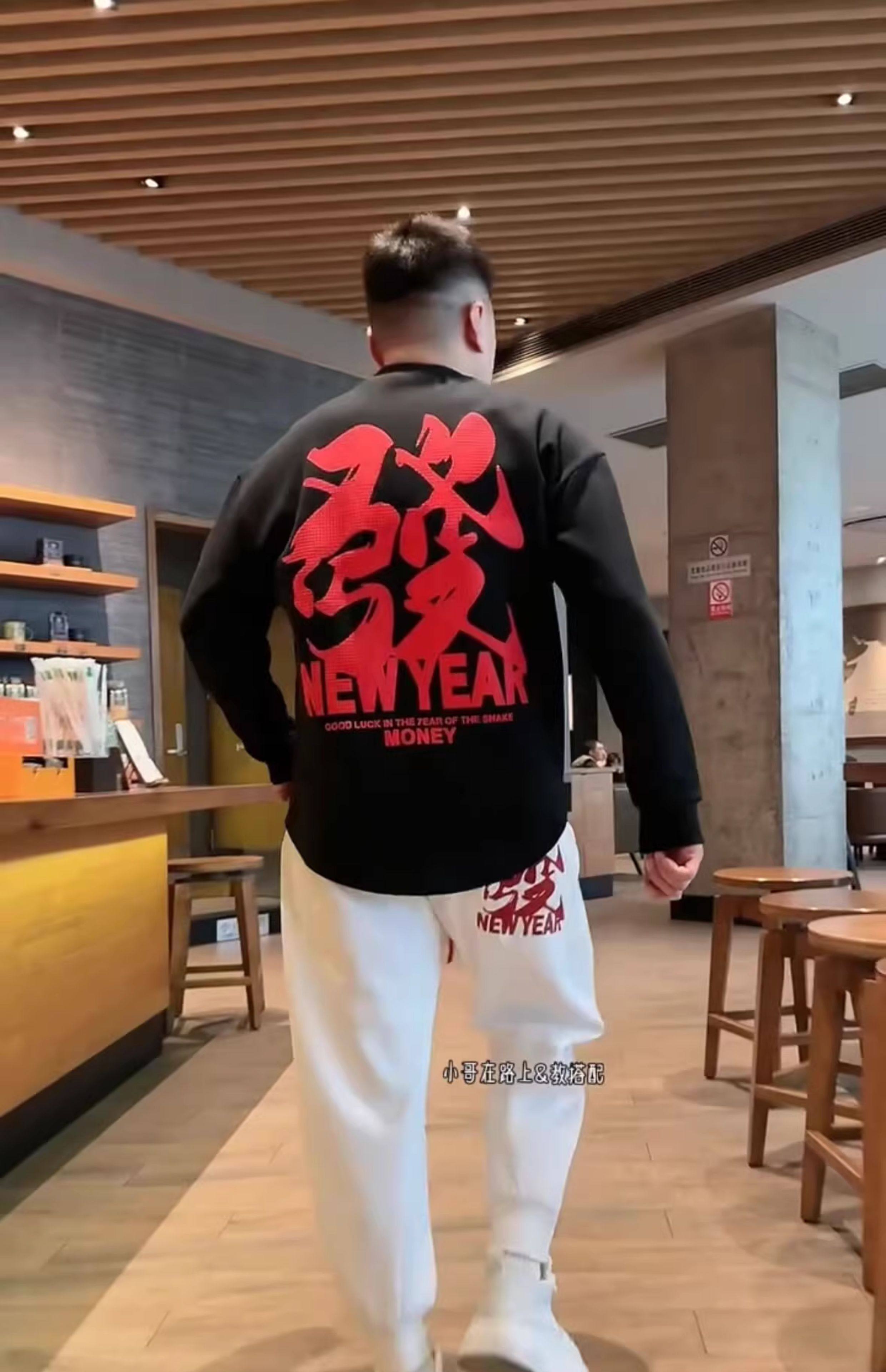 冬季國潮新年發財刺綉休閒套裝男高級帥氣情侶衛衣衛褲運動兩件套